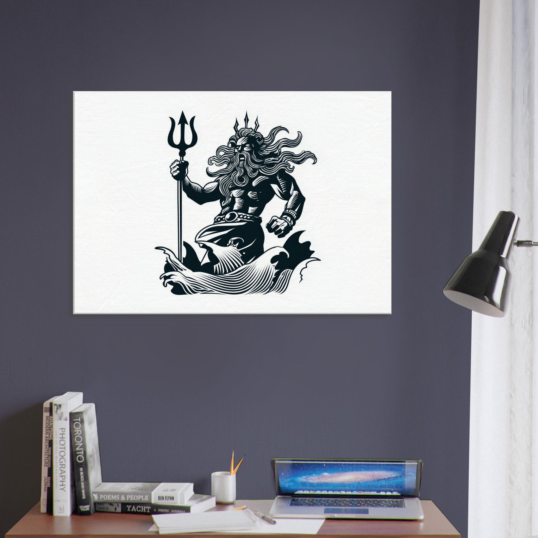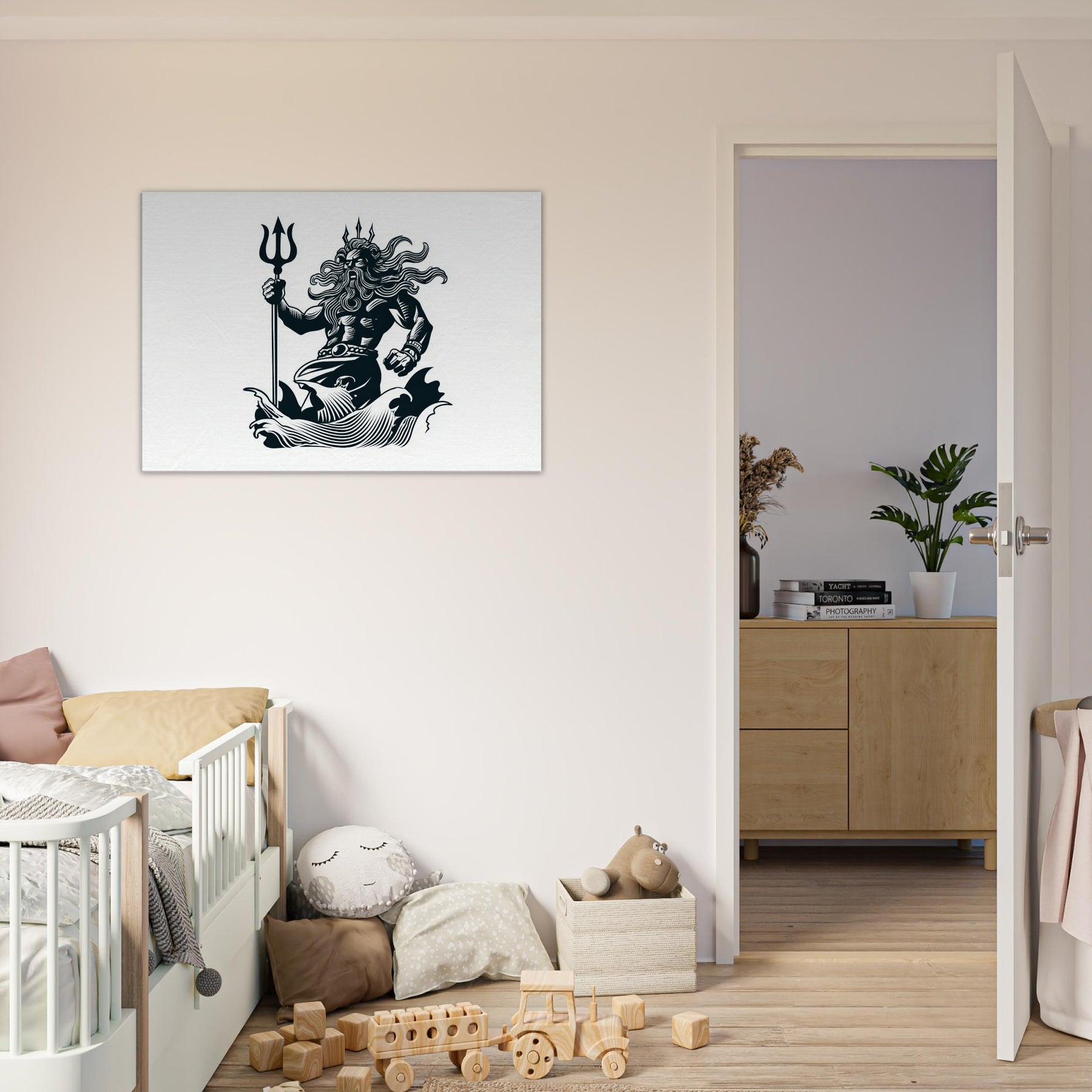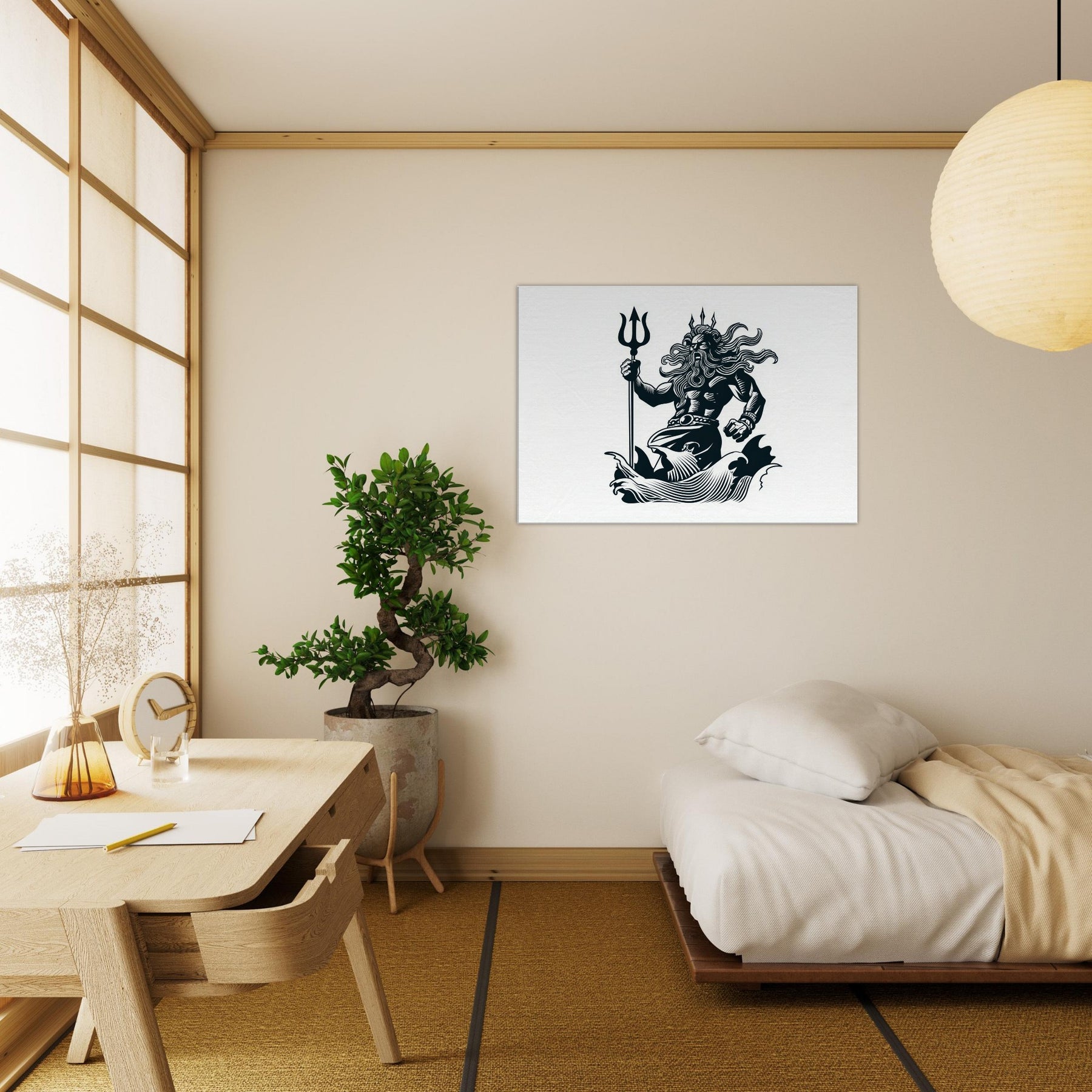 Feel the surge of the sea with Poseidon standing in a crackling surge of line and shadow. This line art interpretation captures the god’s feral power trident raised, mane of waves, a commanding stance that anchors a room with mythic rhythm. In a modern space, the stark contrast of black ink against white lends drama to a sitting area or bedroom alcove, turning walls into a quiet harbor of imagination and ancient grandeur. The central subject is Poseidon, God of the Sea and Storms.