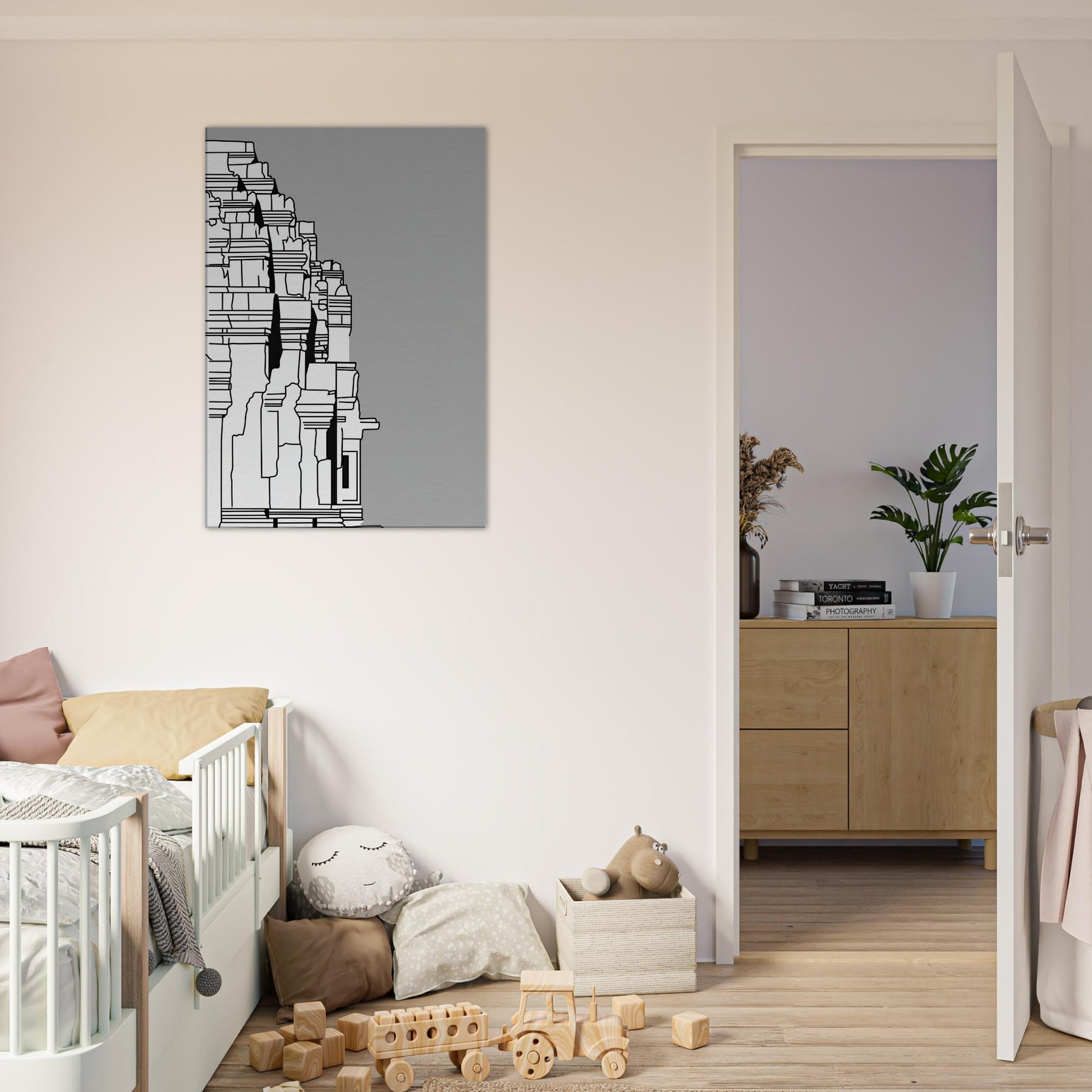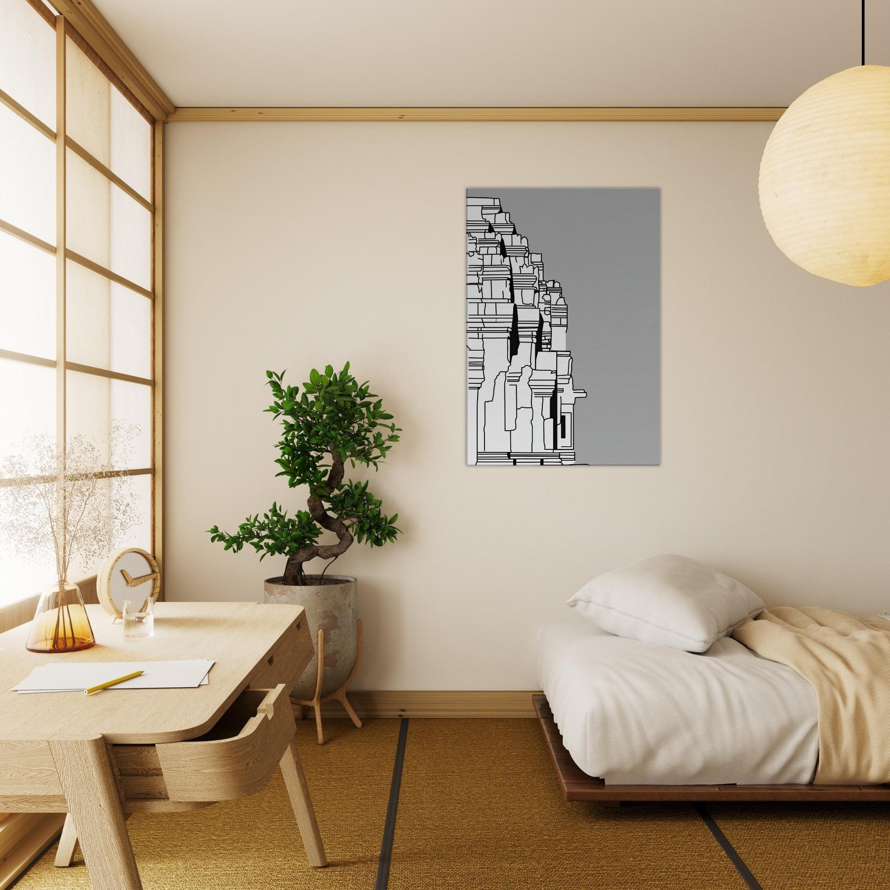 Impassioned lines trace the ancient kings' gaze across Angkor Wat, distilled into a single, confident contour. This line art study invites quiet contemplation, letting the temple's silhouette breathe within your living room. The black and white strokes echo the stone's cool touch, while negative space suggests twilight and travel. Hang it where natural light skims the wall and watch the scene harmonize with modern furniture creating a sanctuary of heritage and imagination, a calm waypoint between city and memory.