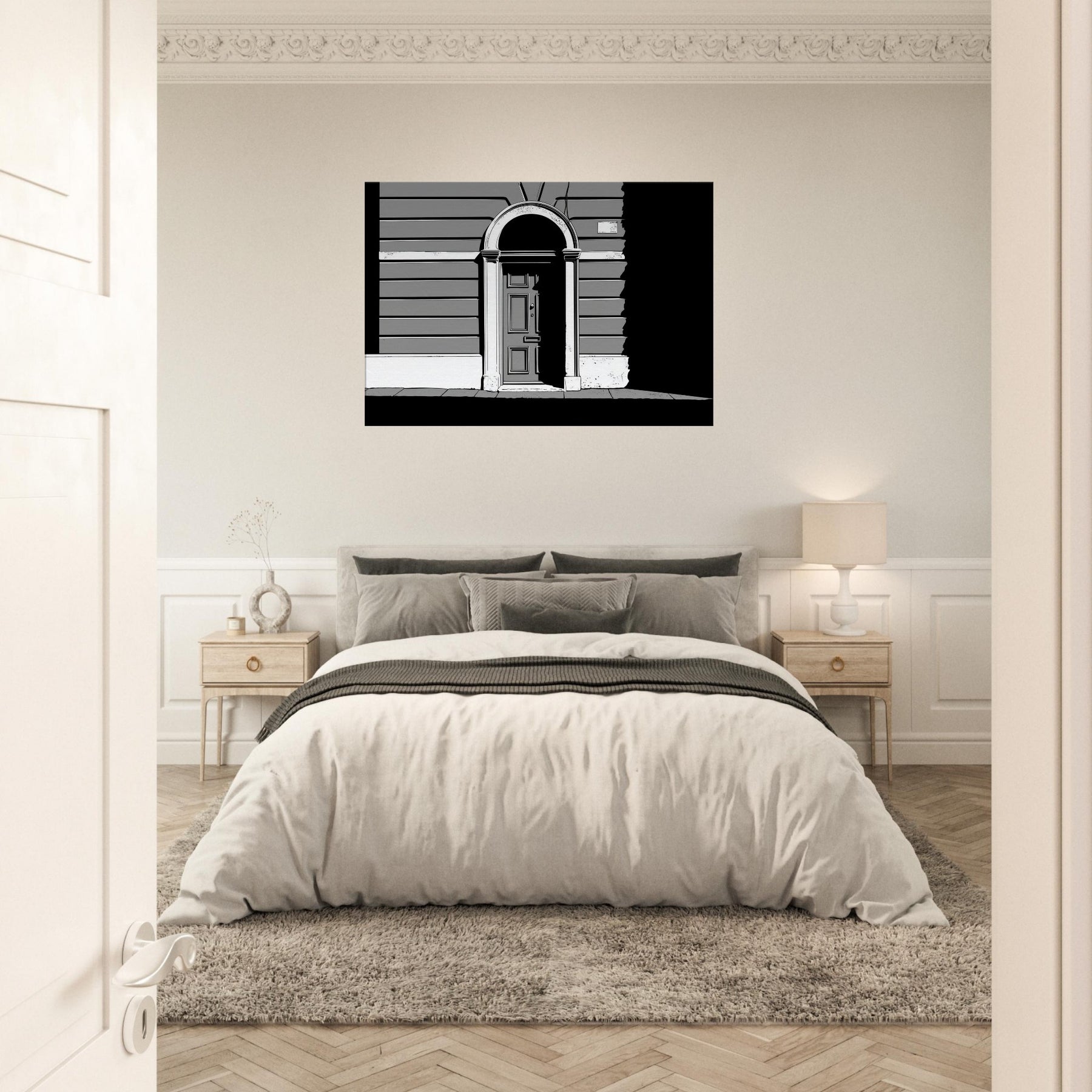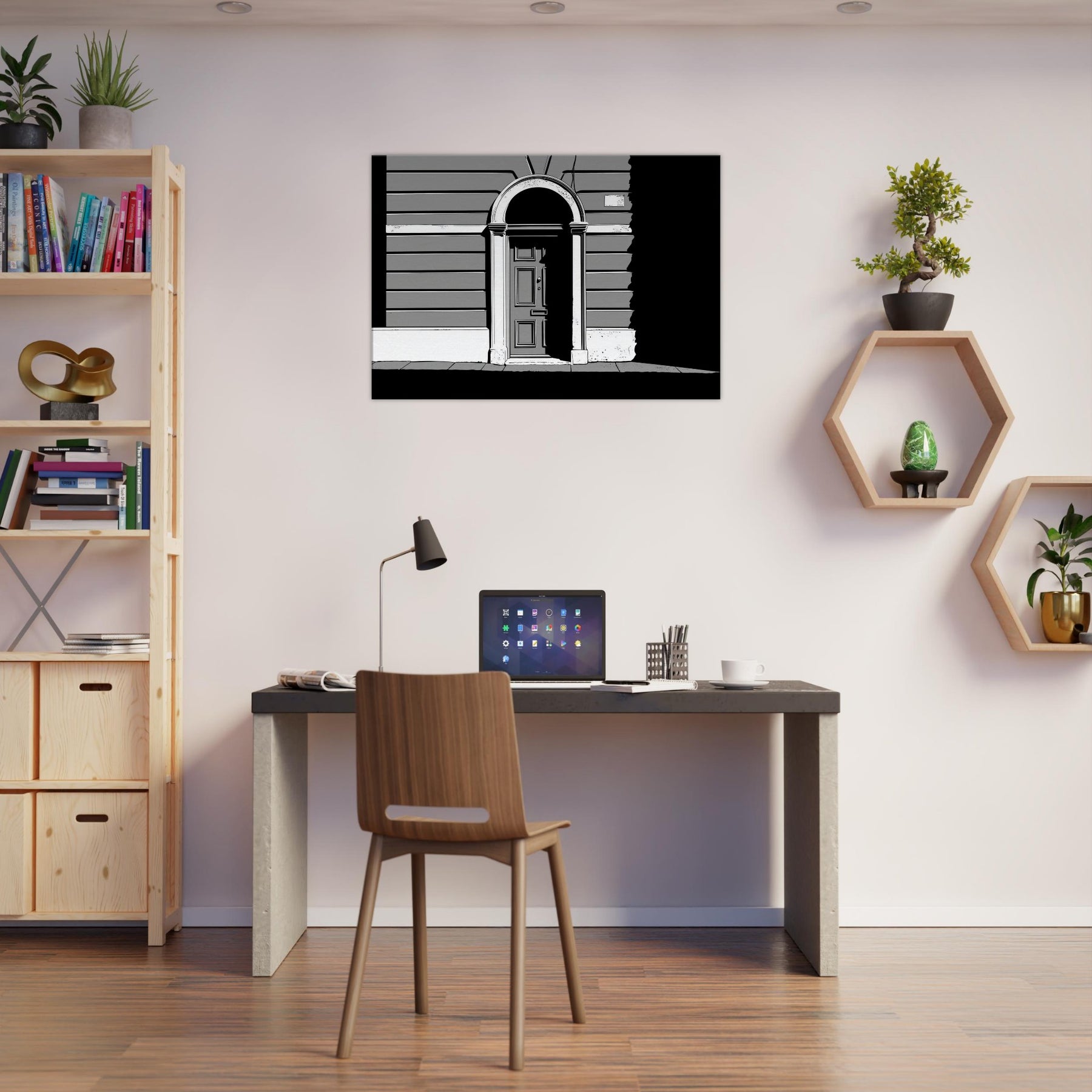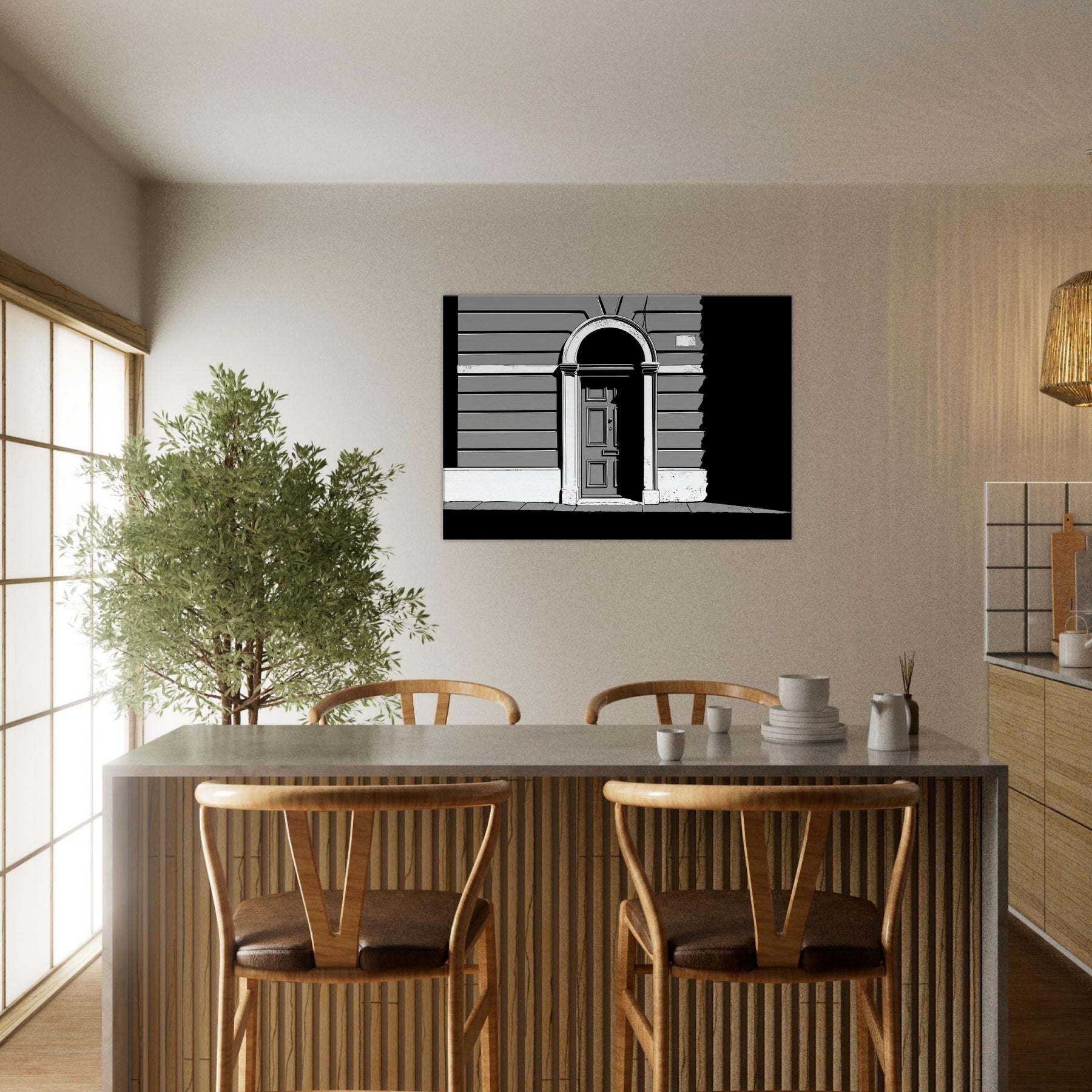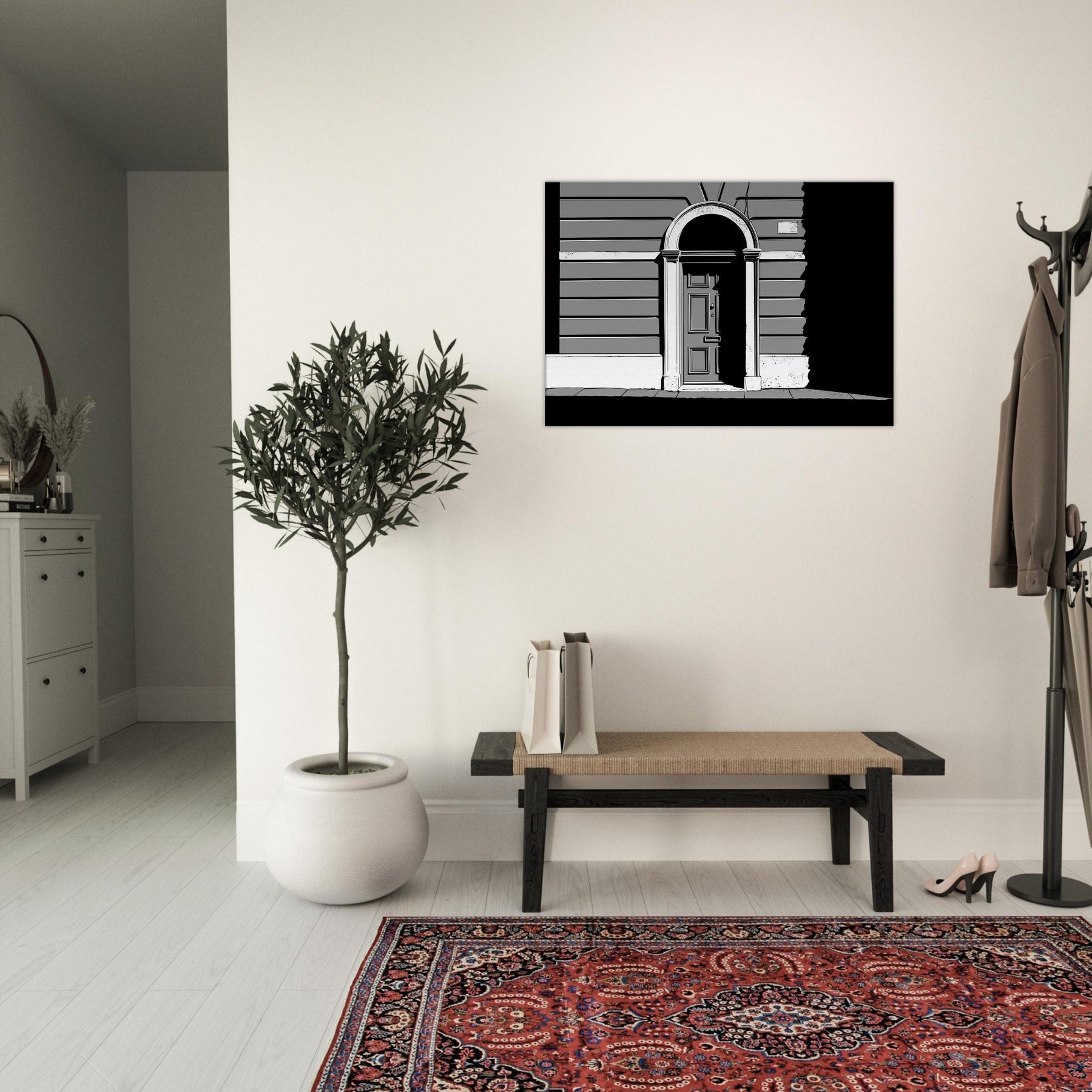 In this line art study, the Old City Doorway becomes a quiet portal between memory and morning light. The stark black and white contrast, rendered with precise architectural lines, invites calm reflection as shadows sketch the steps and arch. Hang it where your living space needs a breath of urban history hallway, study, or above a console to sharpen focus and elevate the atmosphere with a poised, timeless elegance. A subtle reminder of doors opened and stories waiting beyond.