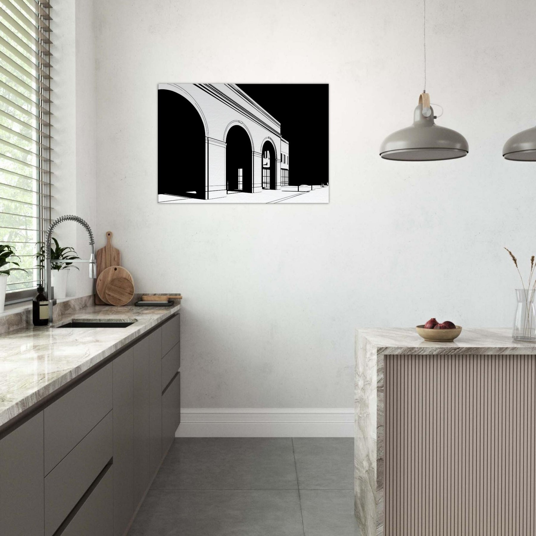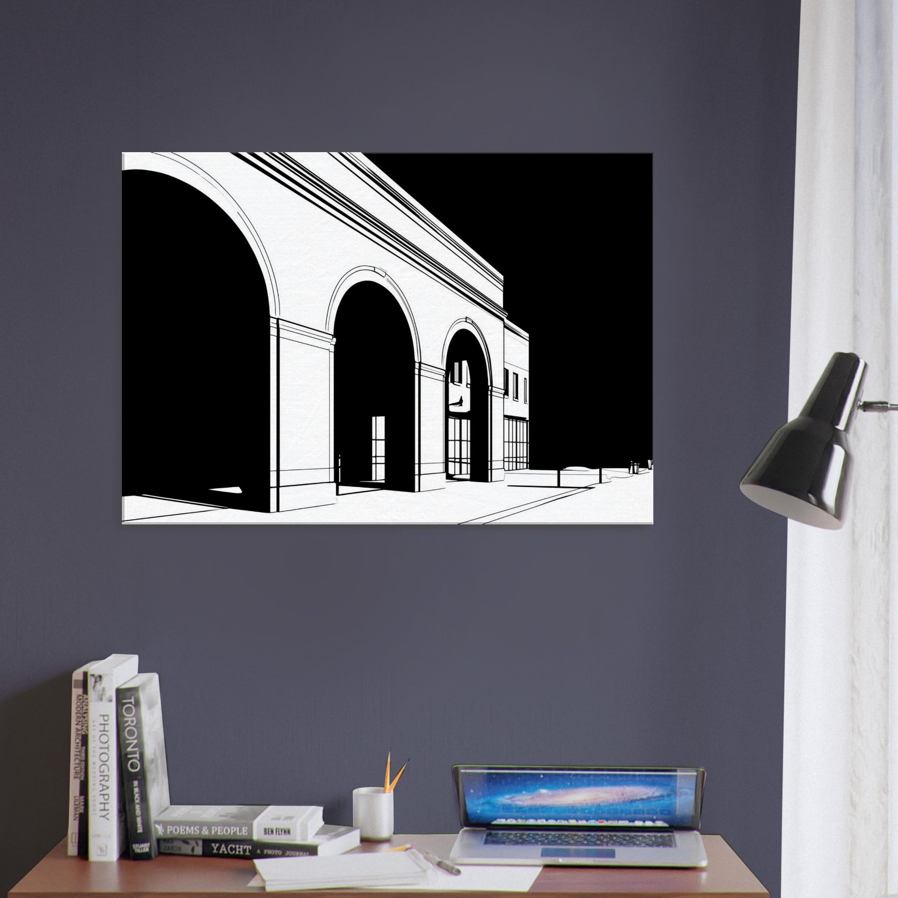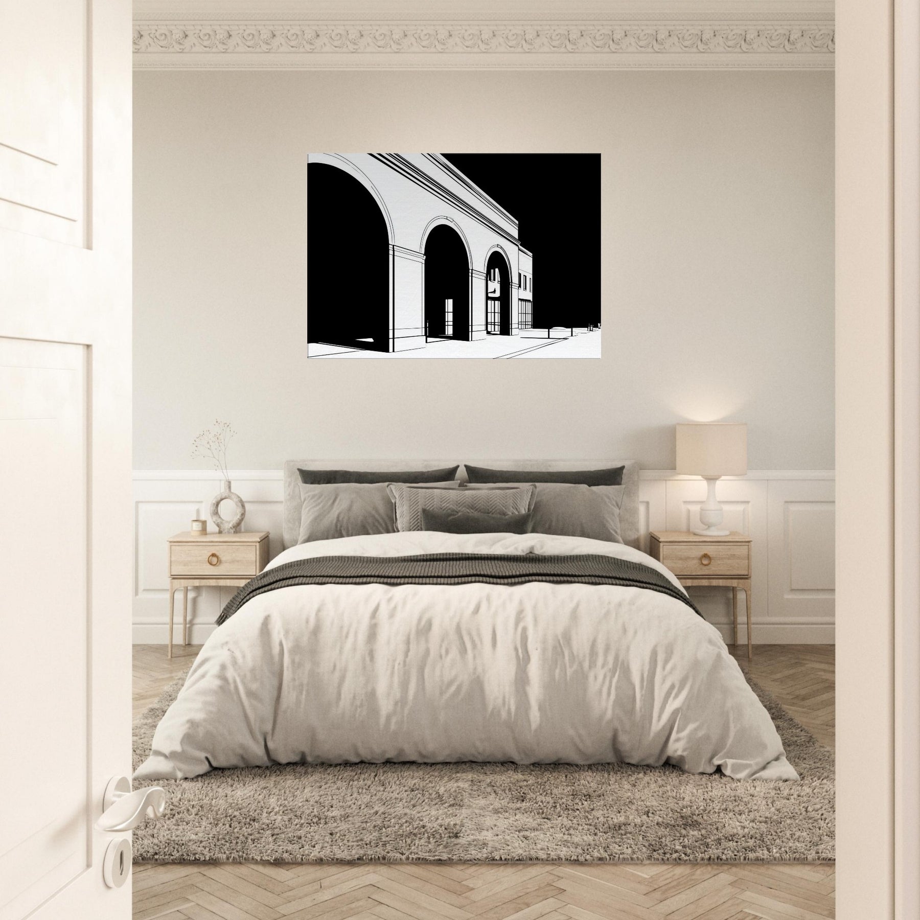 An architectural whisper in monochrome, this Archway line drawing captures the elegance of curved arches and quiet corridors. The stark black and white contrast invites the eye to wander, turning any wall into a doorway to memory and city life. The clean lines soften into spacious silhouettes, evoking dawn light through a grand arcade. Hang it in a living room or hallway to add a calm, civic presence an artful reminder that architecture is poetry drawn with a pen.