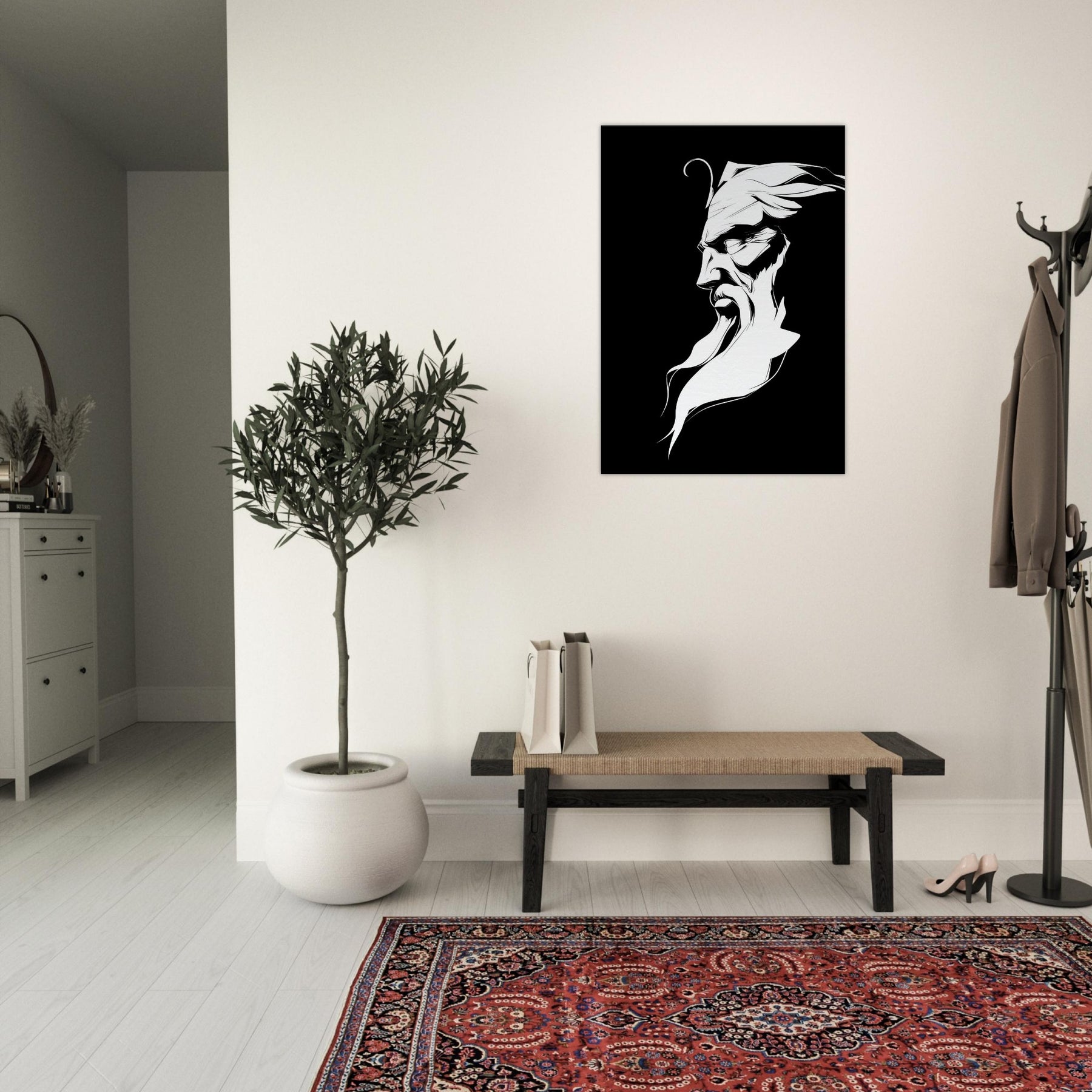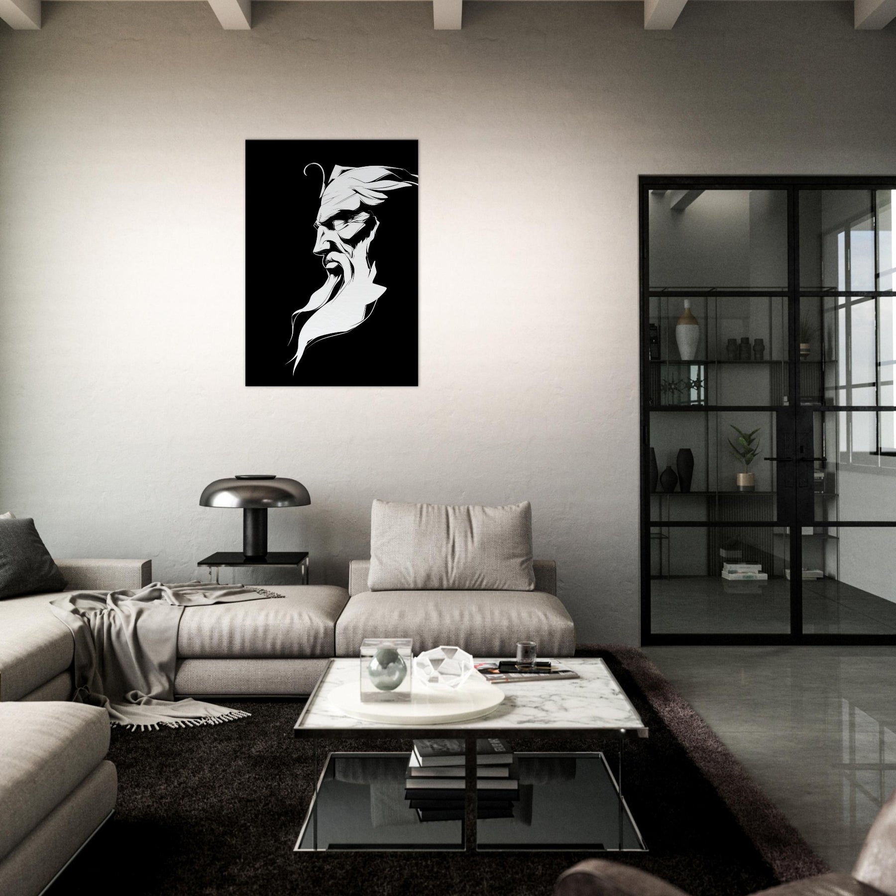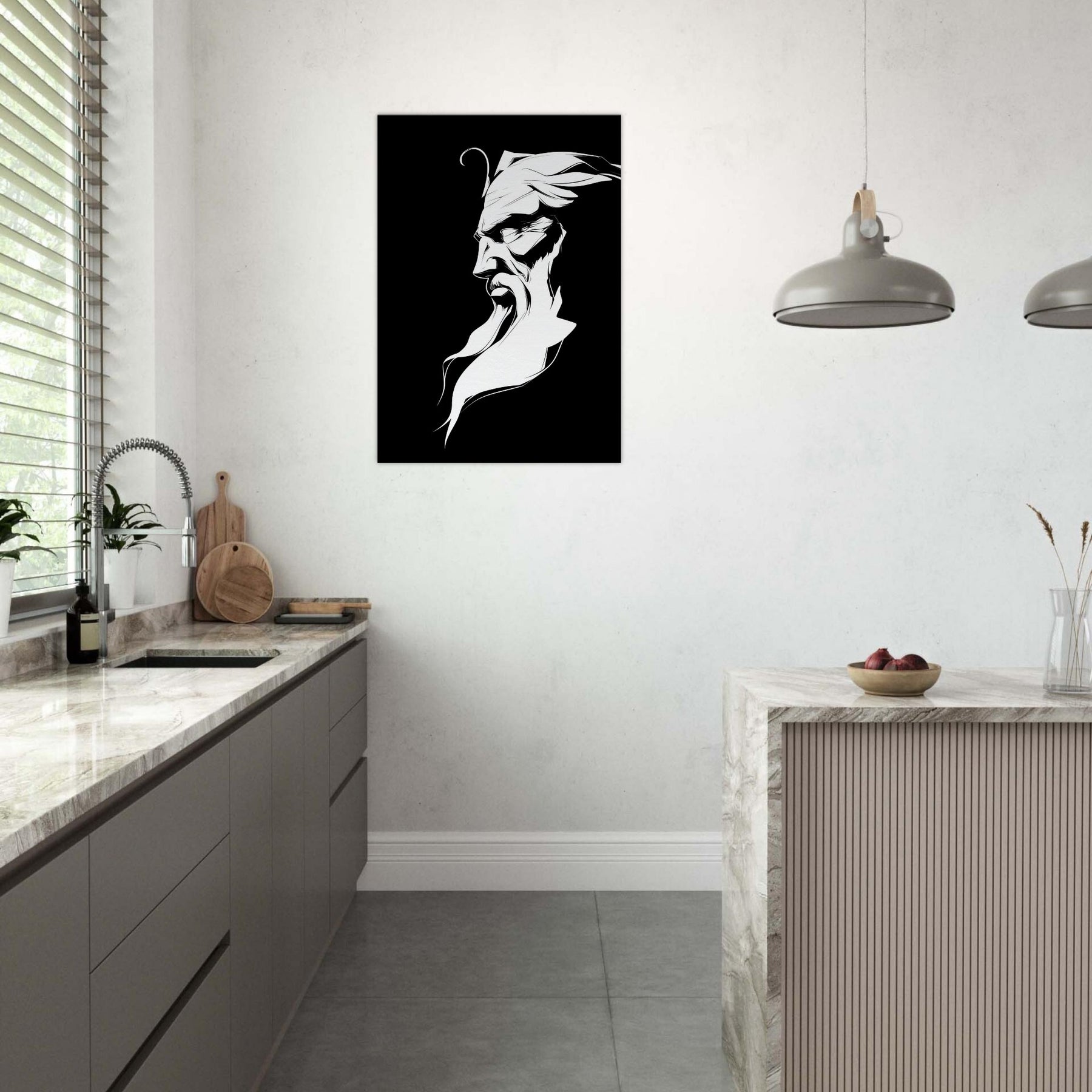 Zeus stands as a master of storm and sky, captured in clean, sweeping linework that shifts from sinewed profile to airy wisps of power. This bold black and white study invites the eye to chase light along the arcs of his brow and beard, turning your wall into a citadel of mythic presence. Perfect for a study, living room, or entryway, it textures space with ancient drama, calm intensity, and a touch of celestial ceremony, elevating everyday moments into legend. The central subject is Zeus, God of Thunder and Sky.