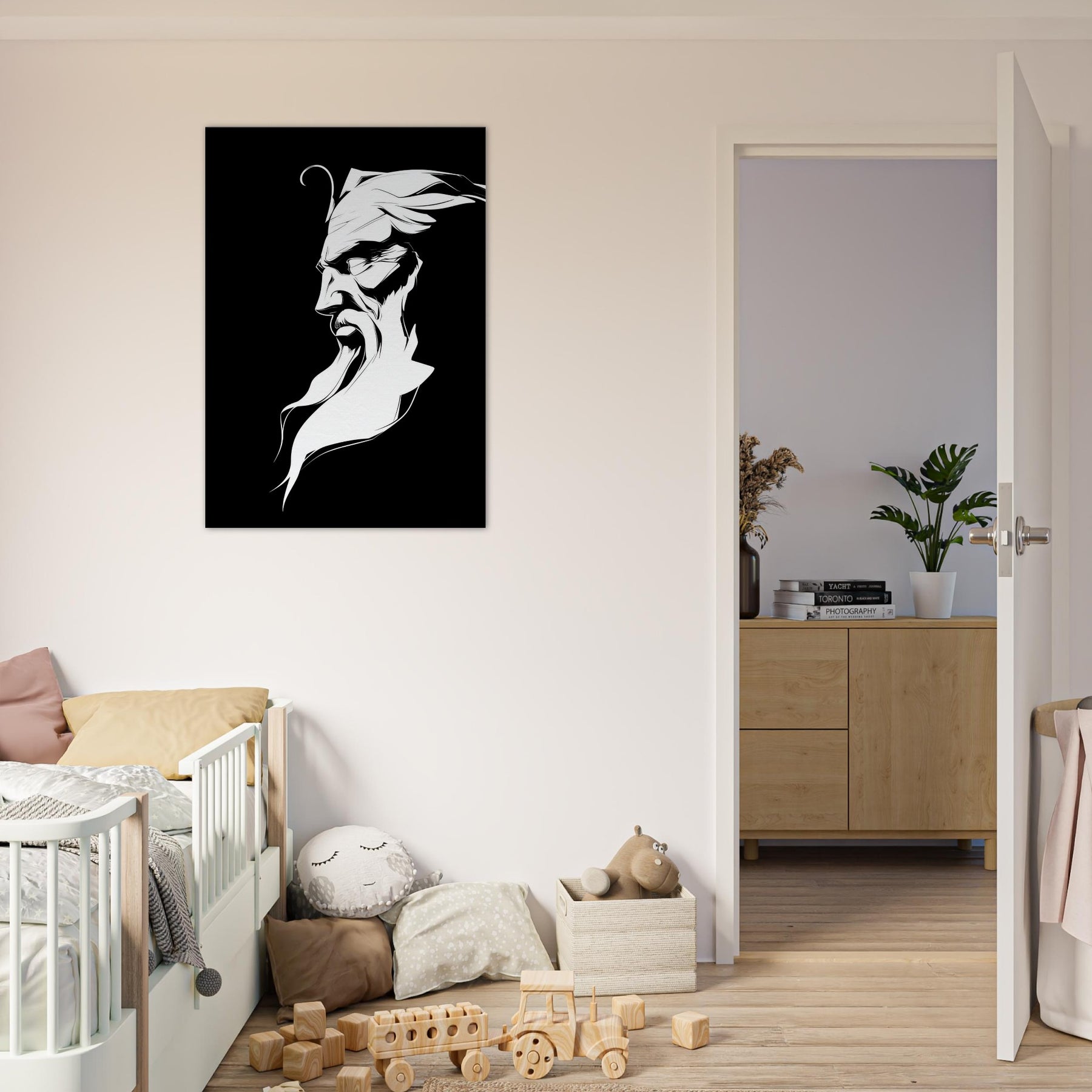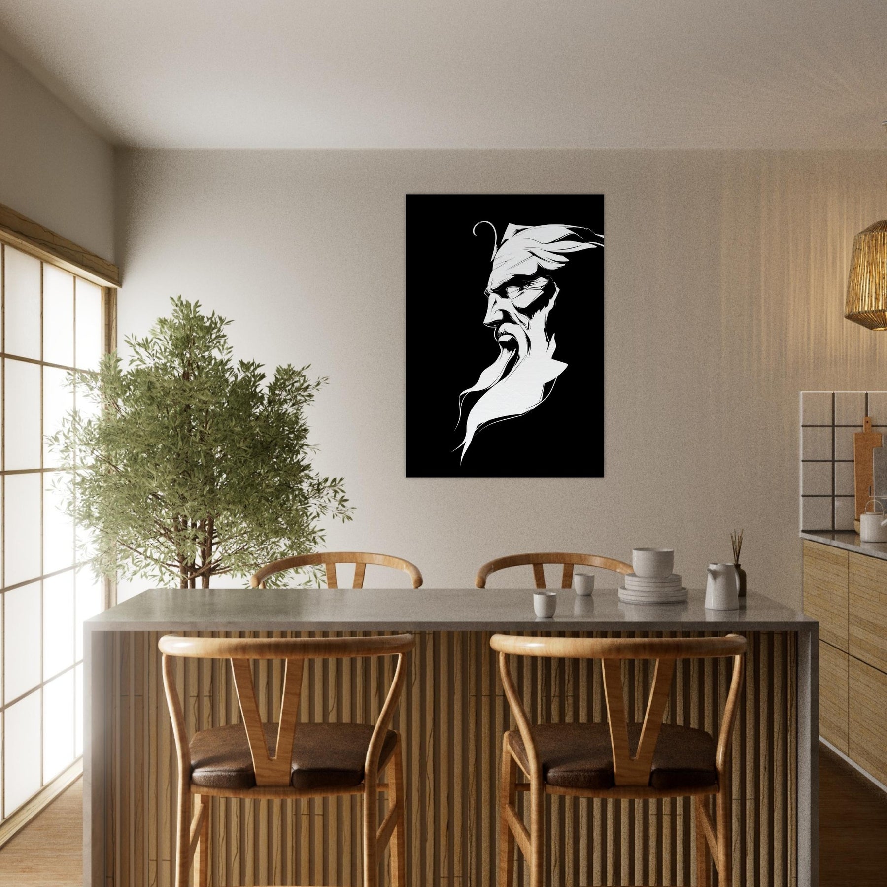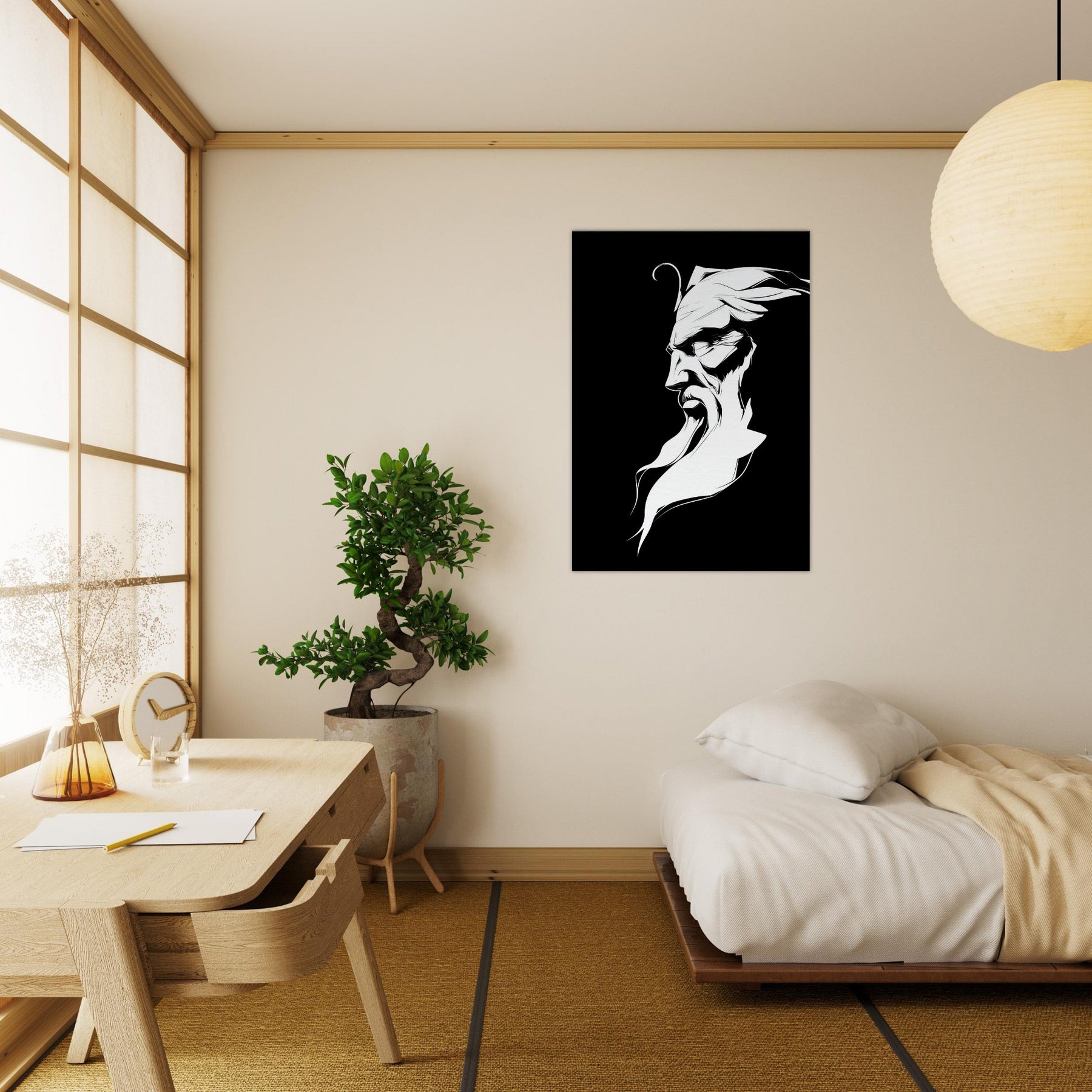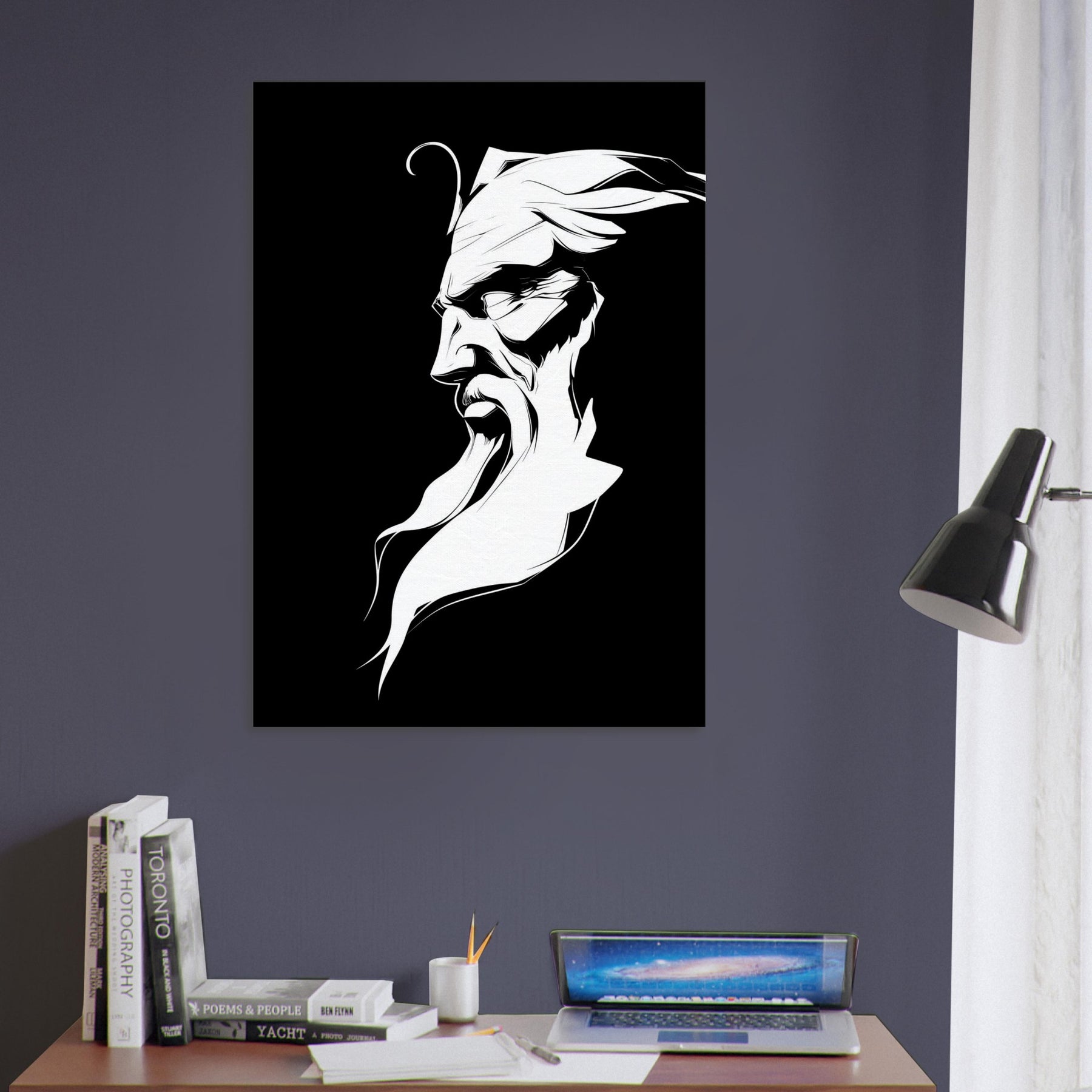 Zeus stands as a master of storm and sky, captured in clean, sweeping linework that shifts from sinewed profile to airy wisps of power. This bold black and white study invites the eye to chase light along the arcs of his brow and beard, turning your wall into a citadel of mythic presence. Perfect for a study, living room, or entryway, it textures space with ancient drama, calm intensity, and a touch of celestial ceremony, elevating everyday moments into legend. The central subject is Zeus, God of Thunder and Sky.