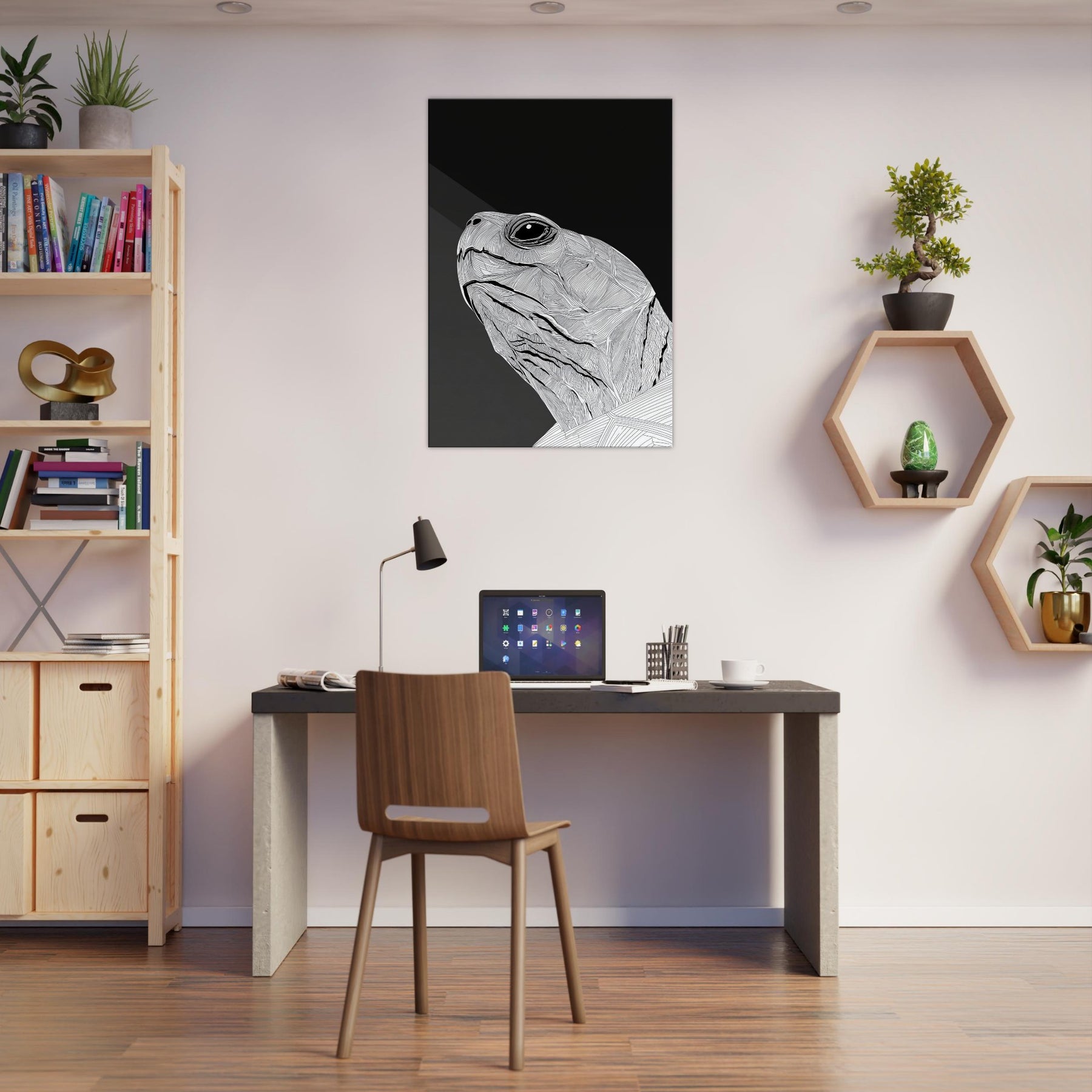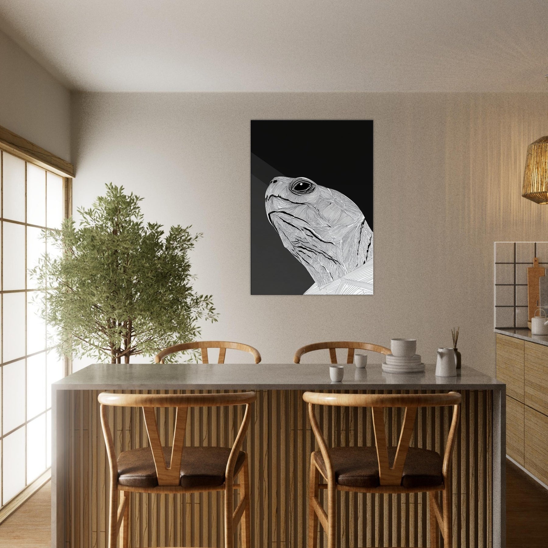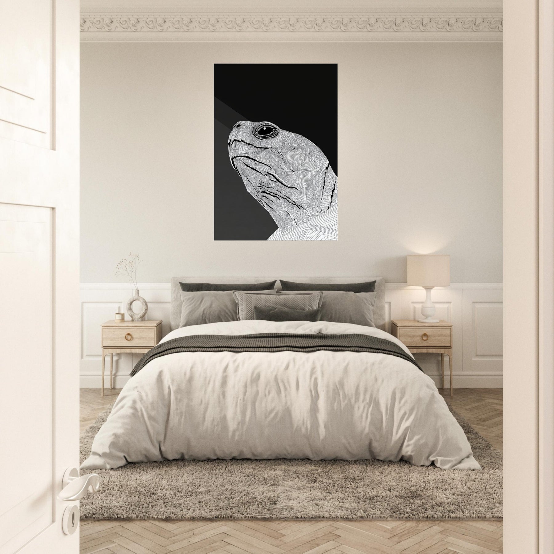 An arresting study in restraint, this Turtle line art drifts through space on a field of shadow and light. The clean, continuous contours evoke a quiet coastline, where every ridge and crease becomes a whisper of motion. In a living room or bedroom, the monochrome palette lends a timeless, contemplative mood, inviting slow breaths and focused gazes. This piece celebrates patience and presence, offering a serene anchor for modern interiors while honoring the Turtle as Primary Subject.