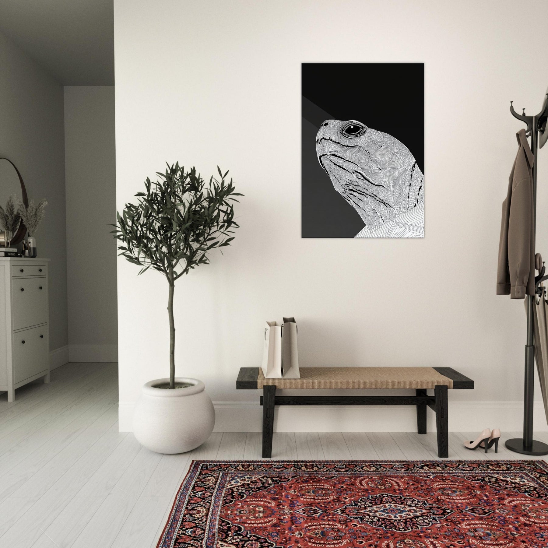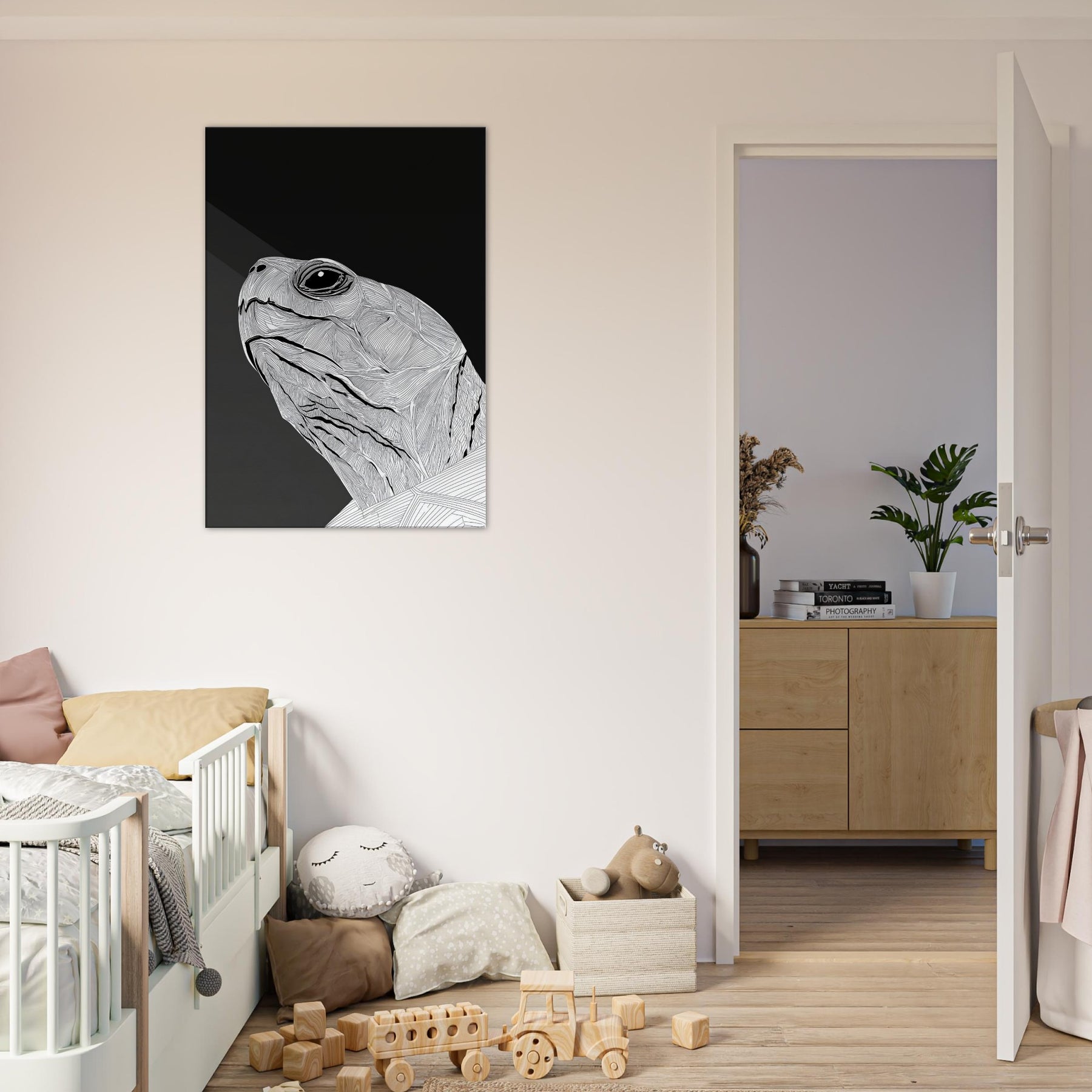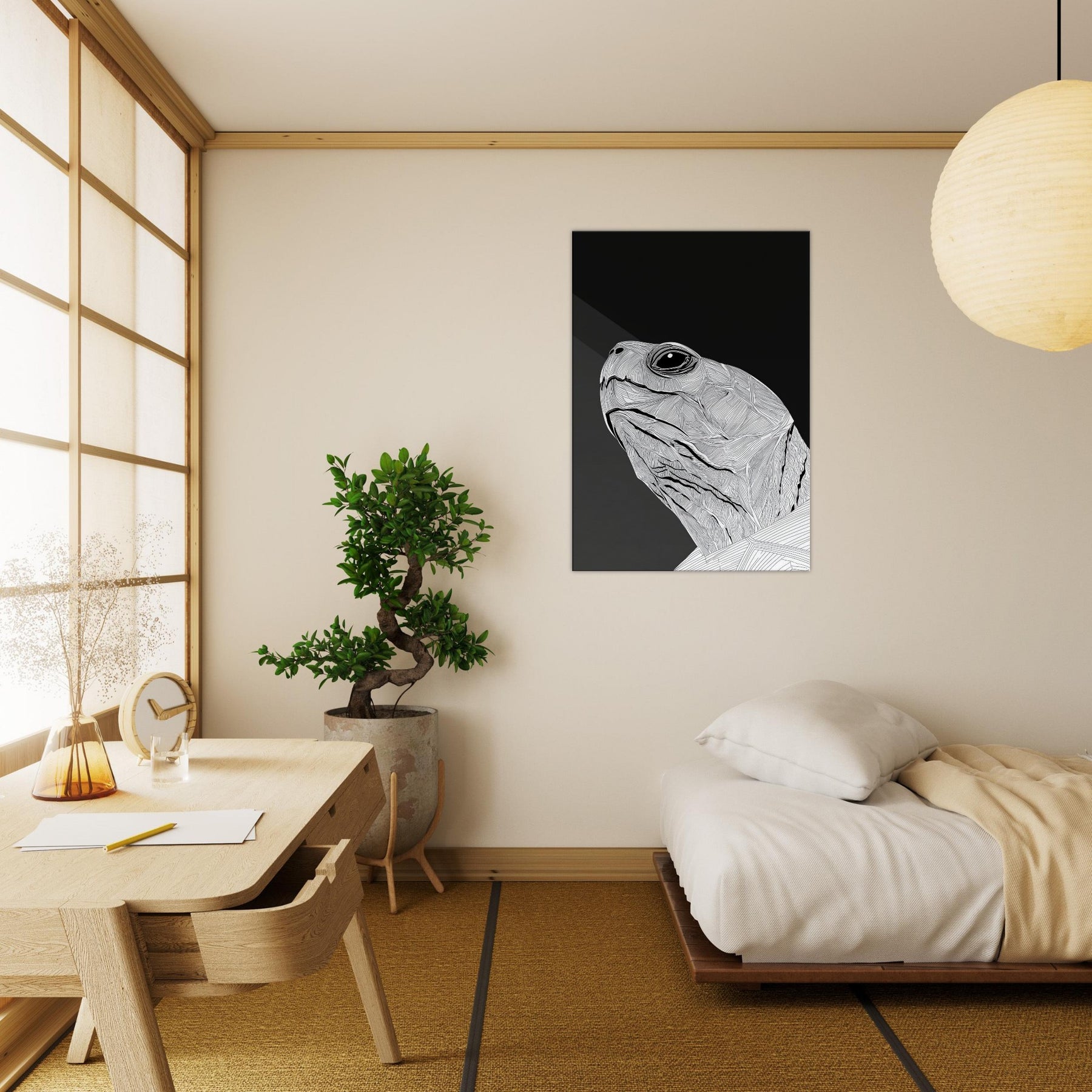 An arresting study in restraint, this Turtle line art drifts through space on a field of shadow and light. The clean, continuous contours evoke a quiet coastline, where every ridge and crease becomes a whisper of motion. In a living room or bedroom, the monochrome palette lends a timeless, contemplative mood, inviting slow breaths and focused gazes. This piece celebrates patience and presence, offering a serene anchor for modern interiors while honoring the Turtle as Primary Subject.