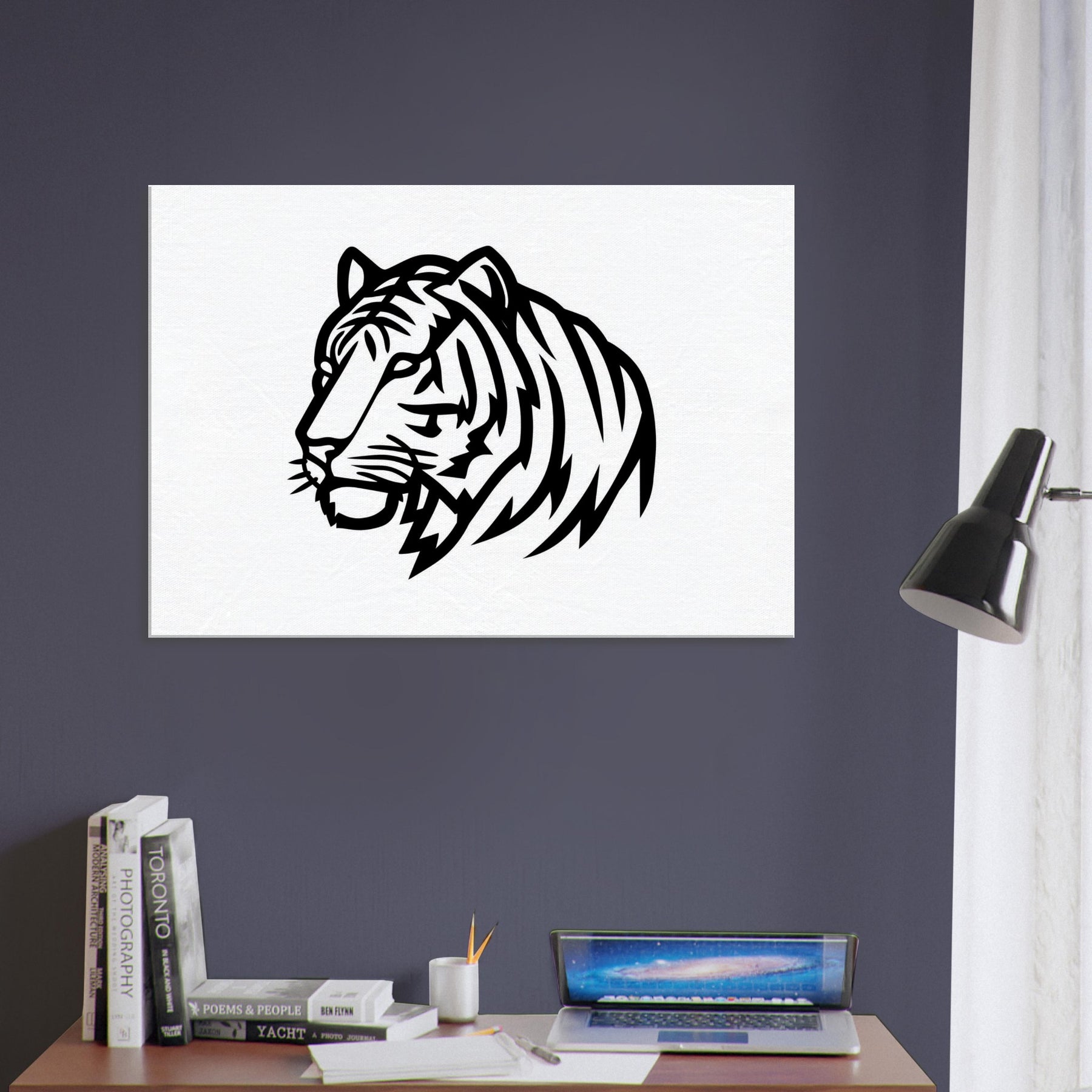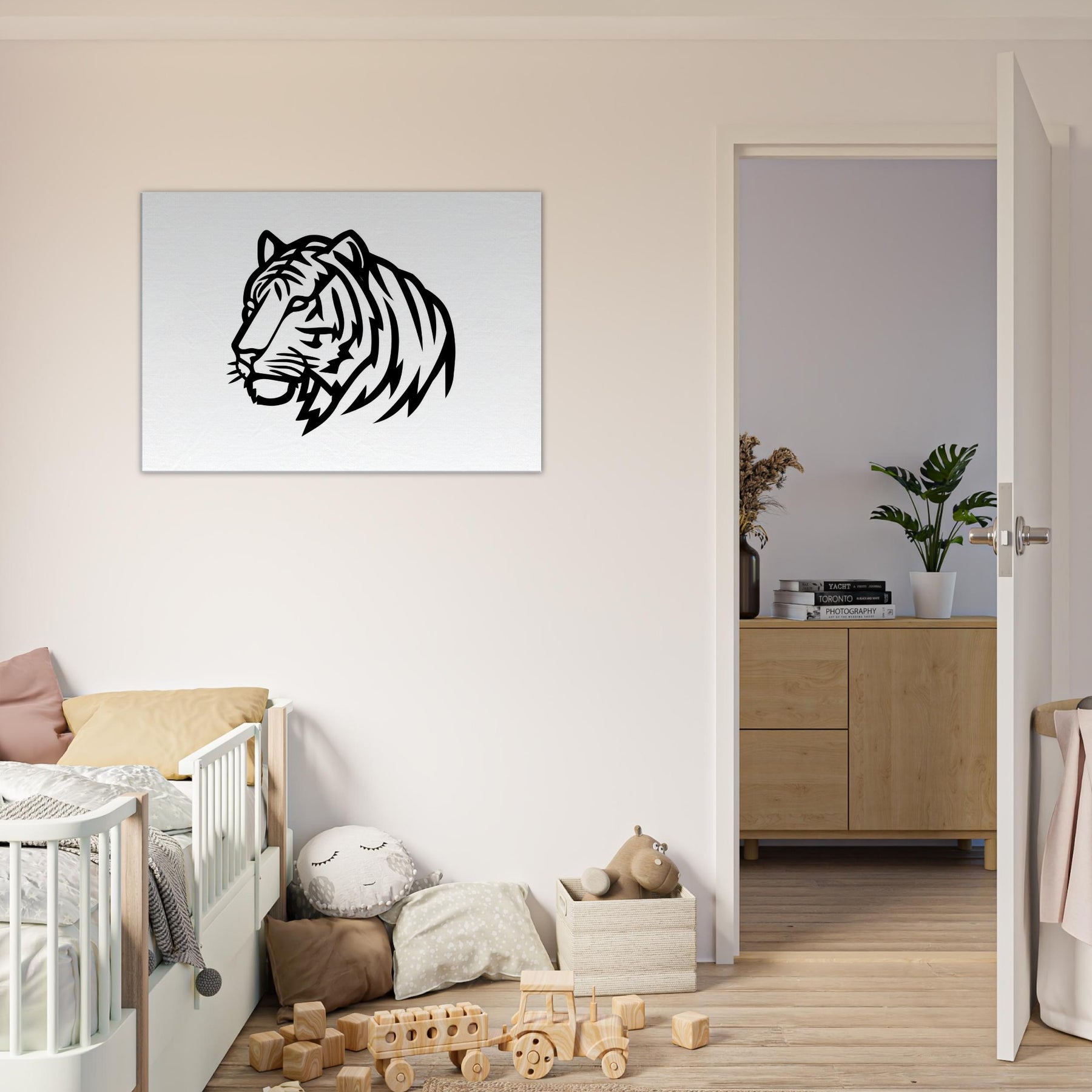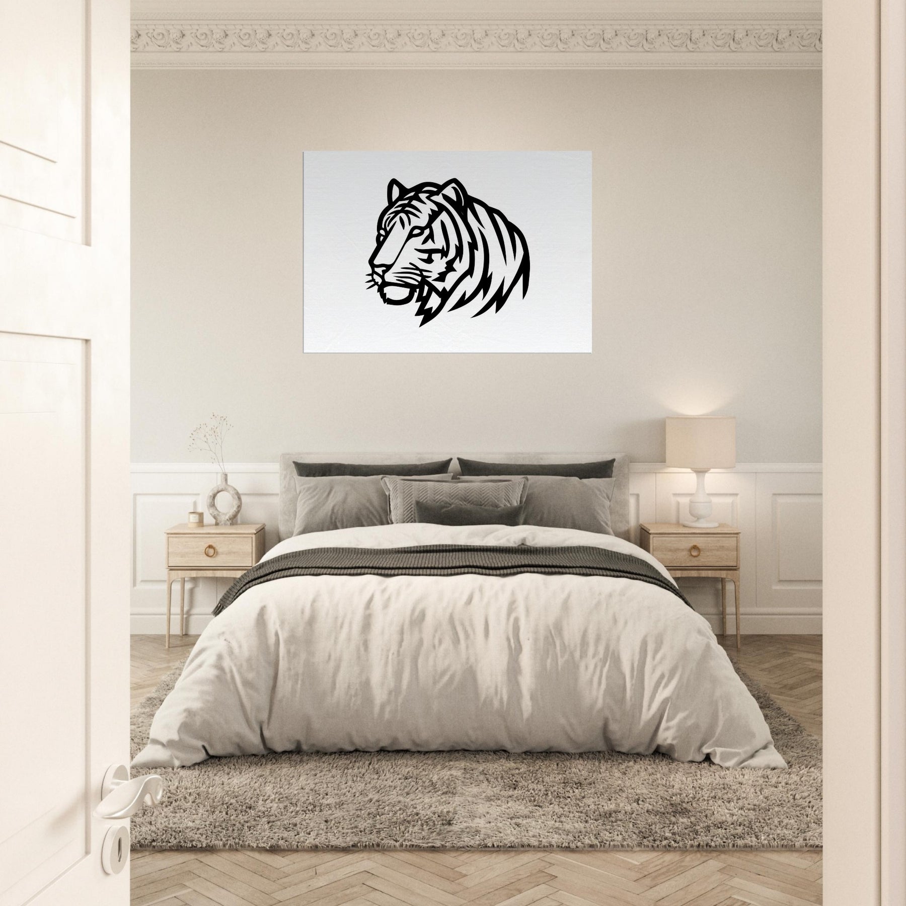 An arresting silhouette of a Tiger rendered with bold, clean lines. This minimalist study breathes quiet strength into any room, its black contours carving space and rhythm on a white field. The poised gaze and fluid fur suggest motion without clutter, making it a serene centerpiece for living rooms, bedrooms, or hallways. Pair it with warm woods or cool neutrals to amplify a calming mood, where every glance reveals a new curve in the story of presence and focus.