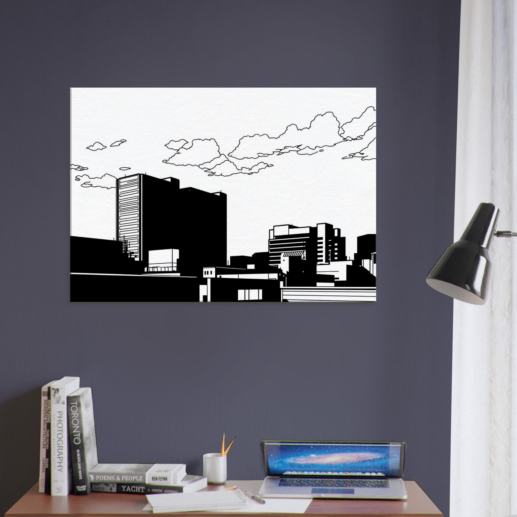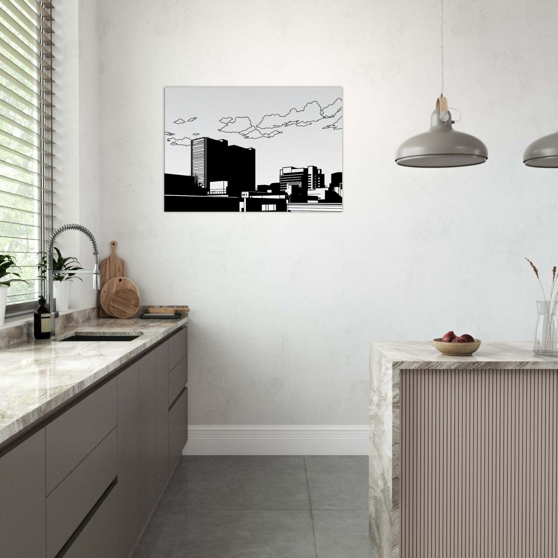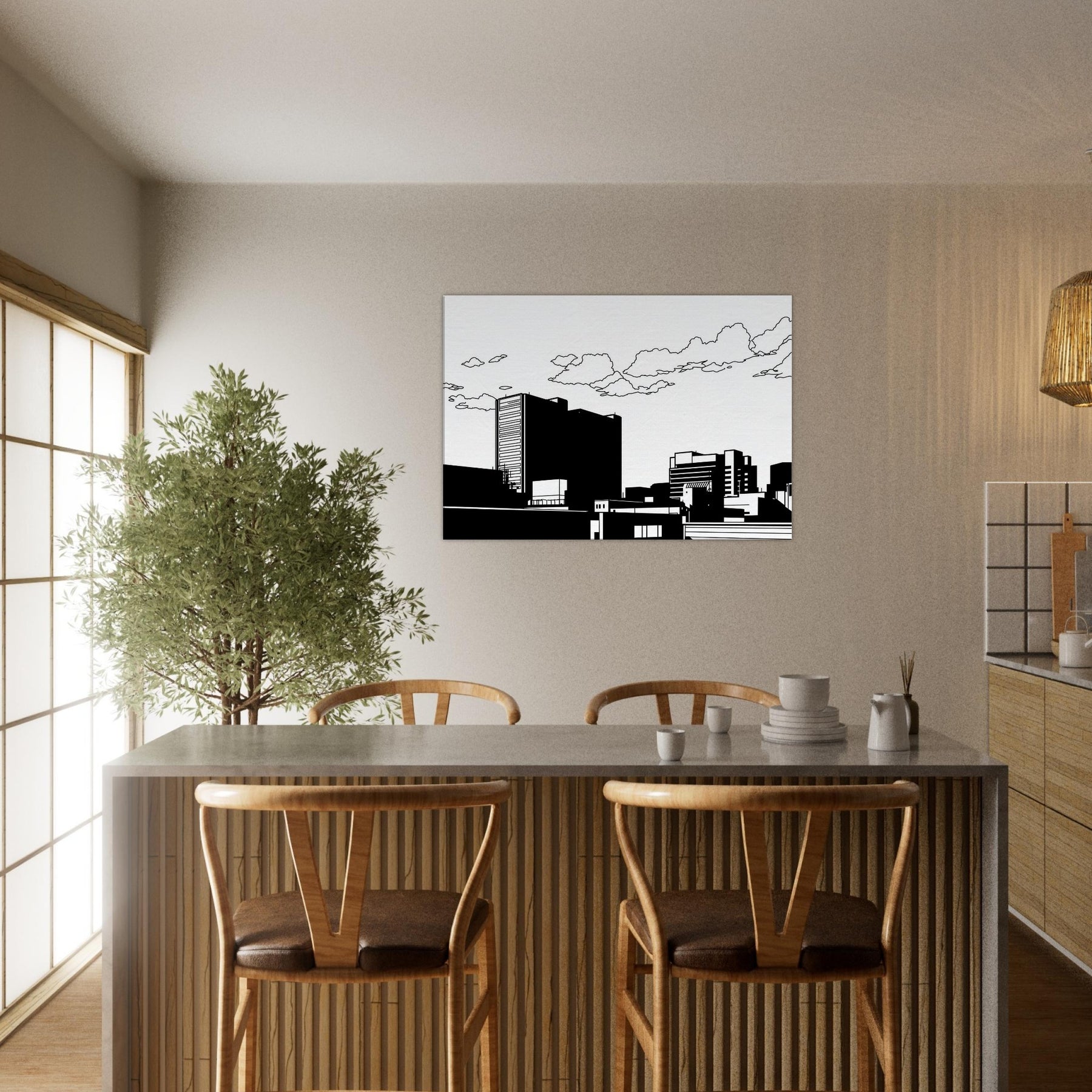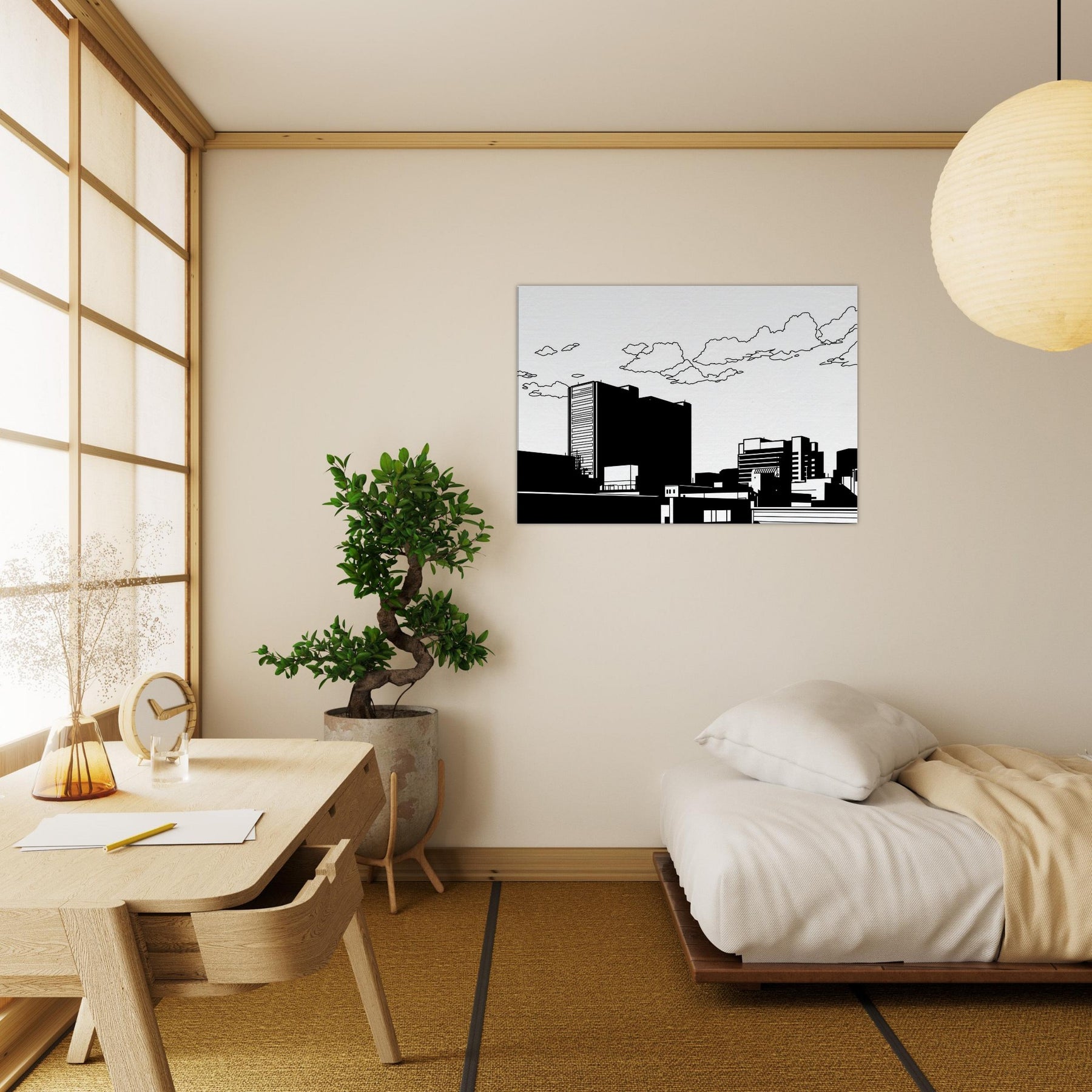 City as whisper, Tokyo captured in clean, uninterrupted linework. This minimalist skyline invites calm into the room, where bold black forms rest against white space like a quiet evening in the city. The restrained contrast highlights architectural rhythm, guiding the eye along towers, bridges, and rooftops with a gentle stair step of balance. Perfect for a contemporary living room or office, it adds urban sophistication without noise a subtle focal point that pairs with neutral palettes or bold accents, making spaces feel elevated and serenely cosmopolitan.