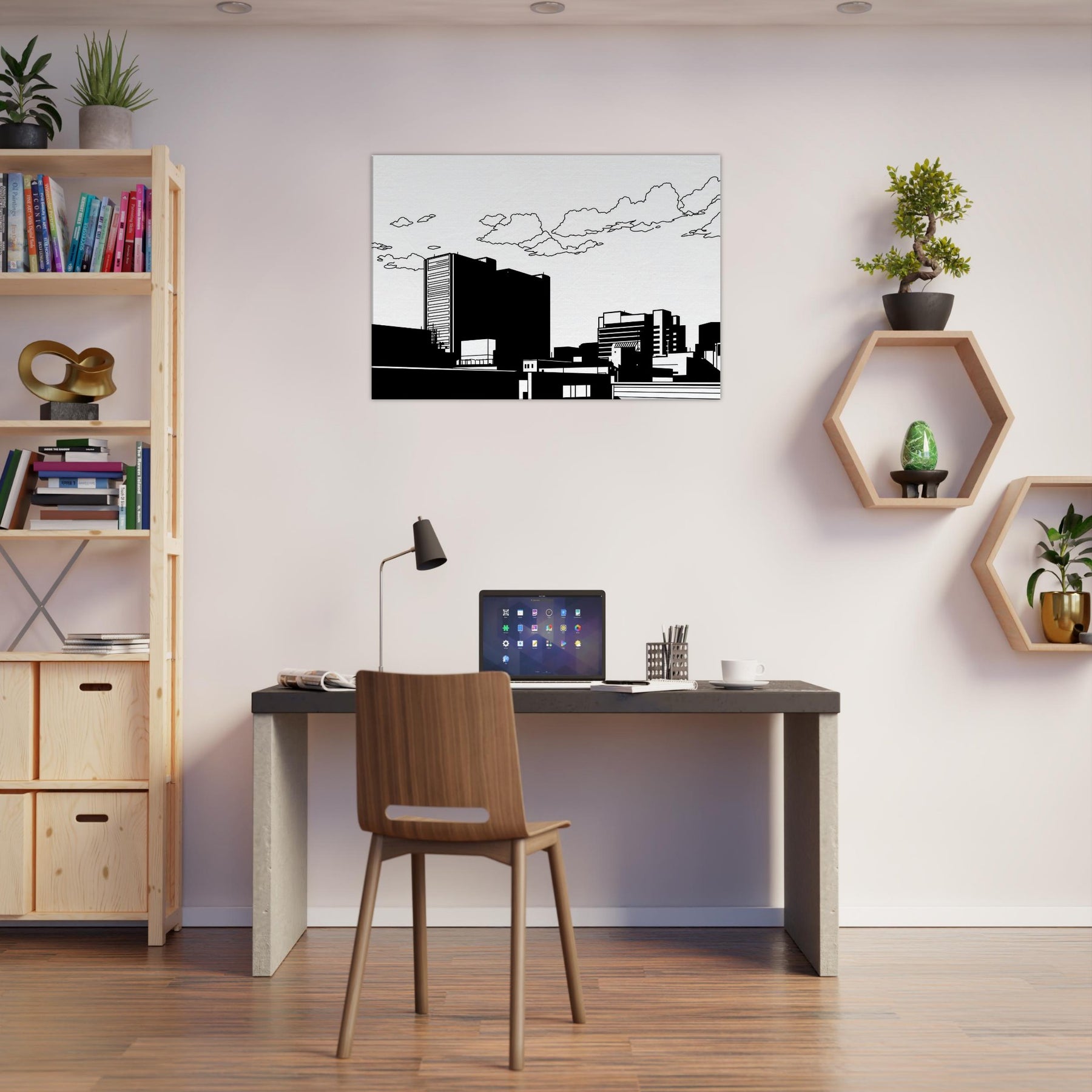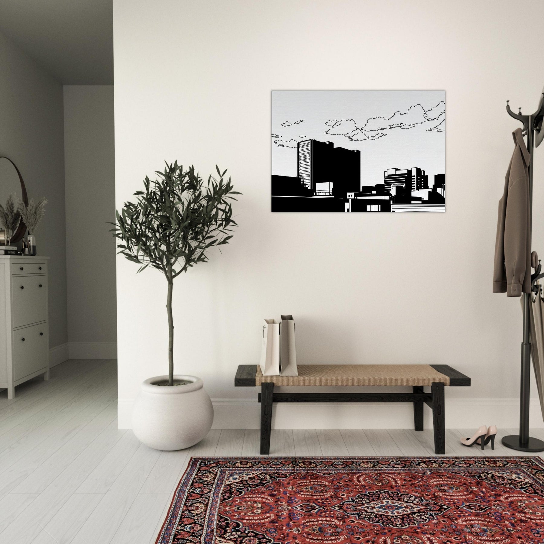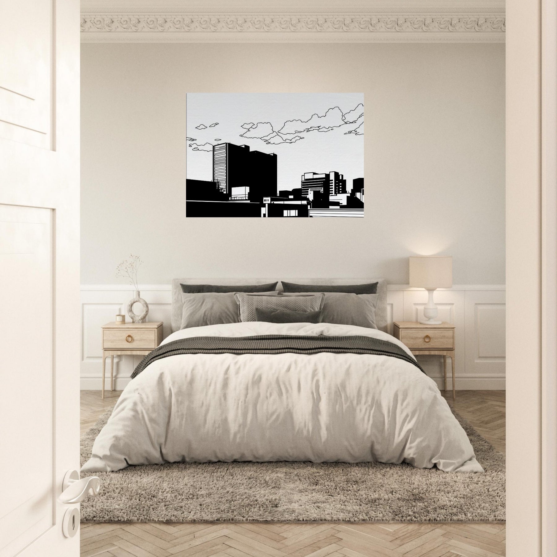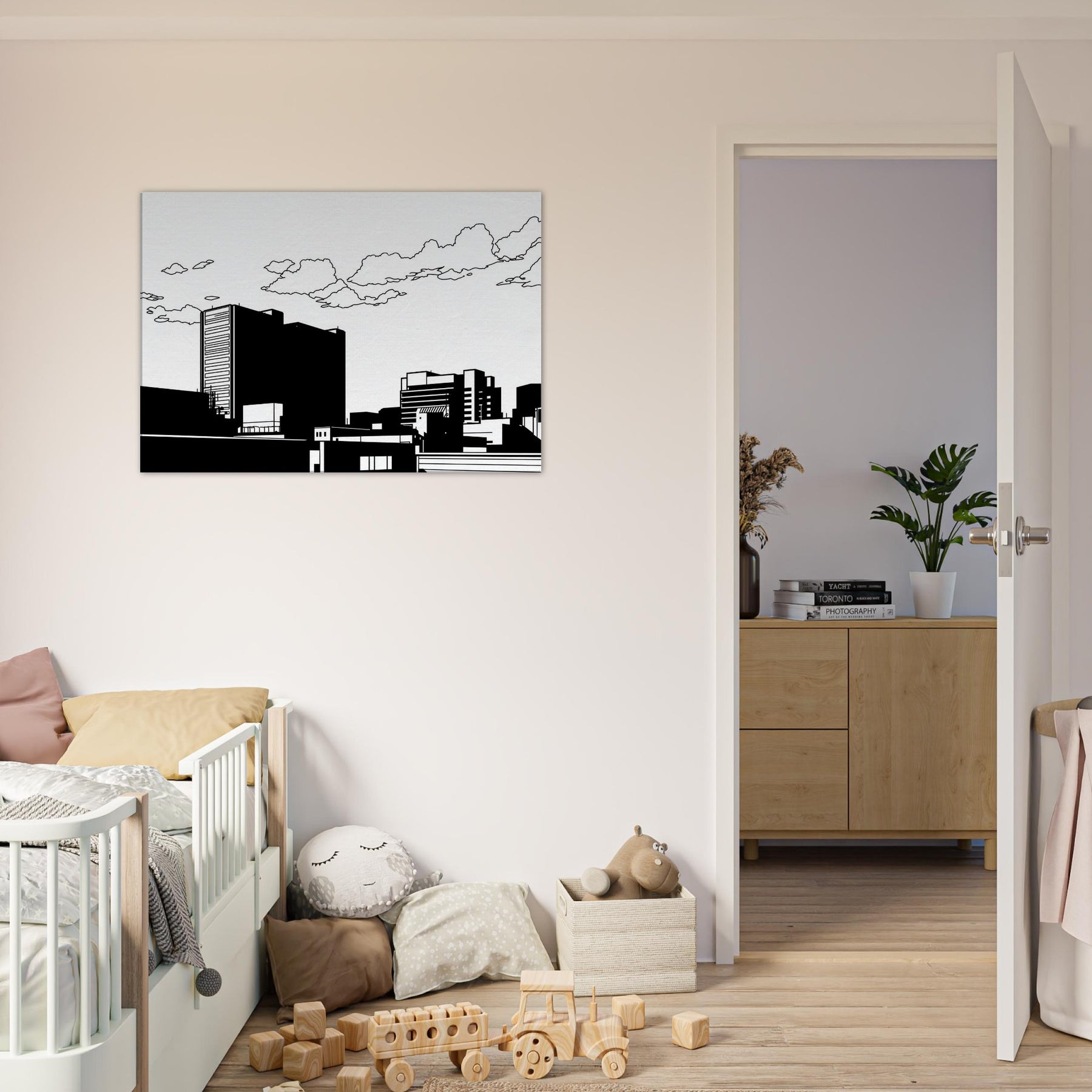 City as whisper, Tokyo captured in clean, uninterrupted linework. This minimalist skyline invites calm into the room, where bold black forms rest against white space like a quiet evening in the city. The restrained contrast highlights architectural rhythm, guiding the eye along towers, bridges, and rooftops with a gentle stair step of balance. Perfect for a contemporary living room or office, it adds urban sophistication without noise a subtle focal point that pairs with neutral palettes or bold accents, making spaces feel elevated and serenely cosmopolitan.