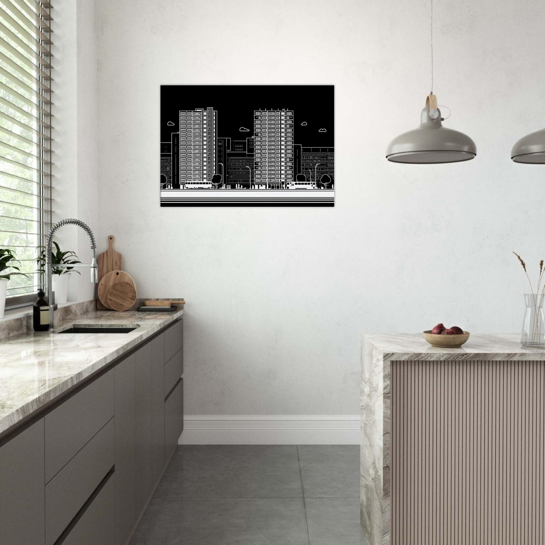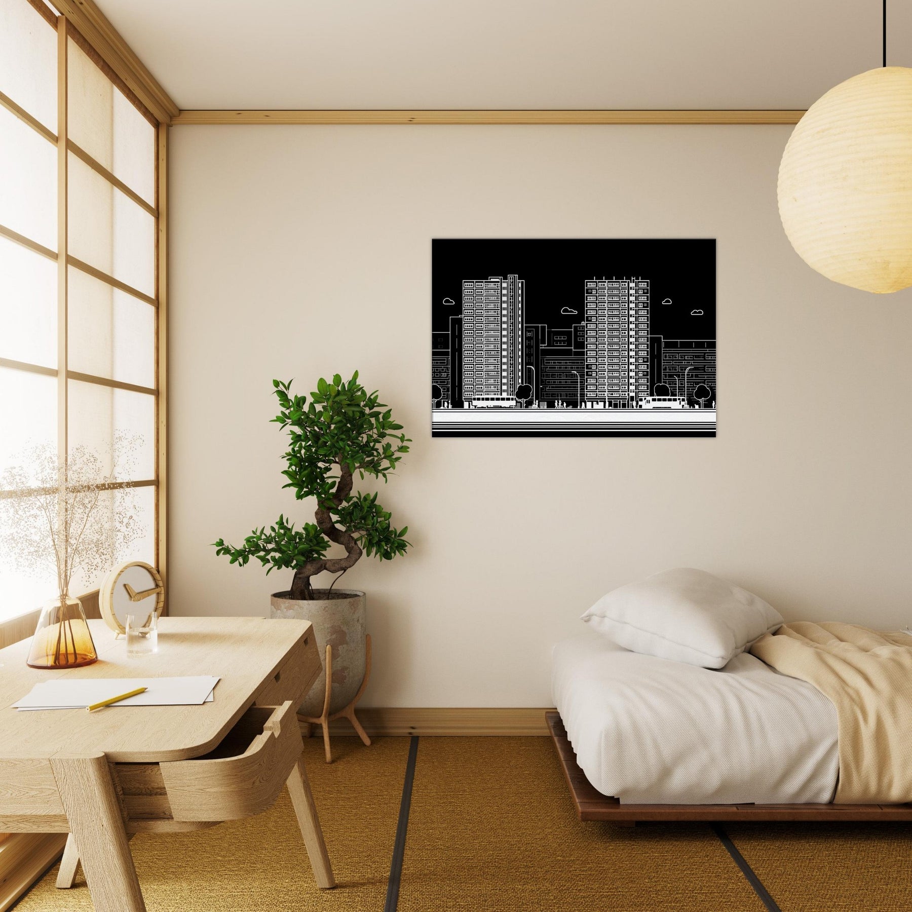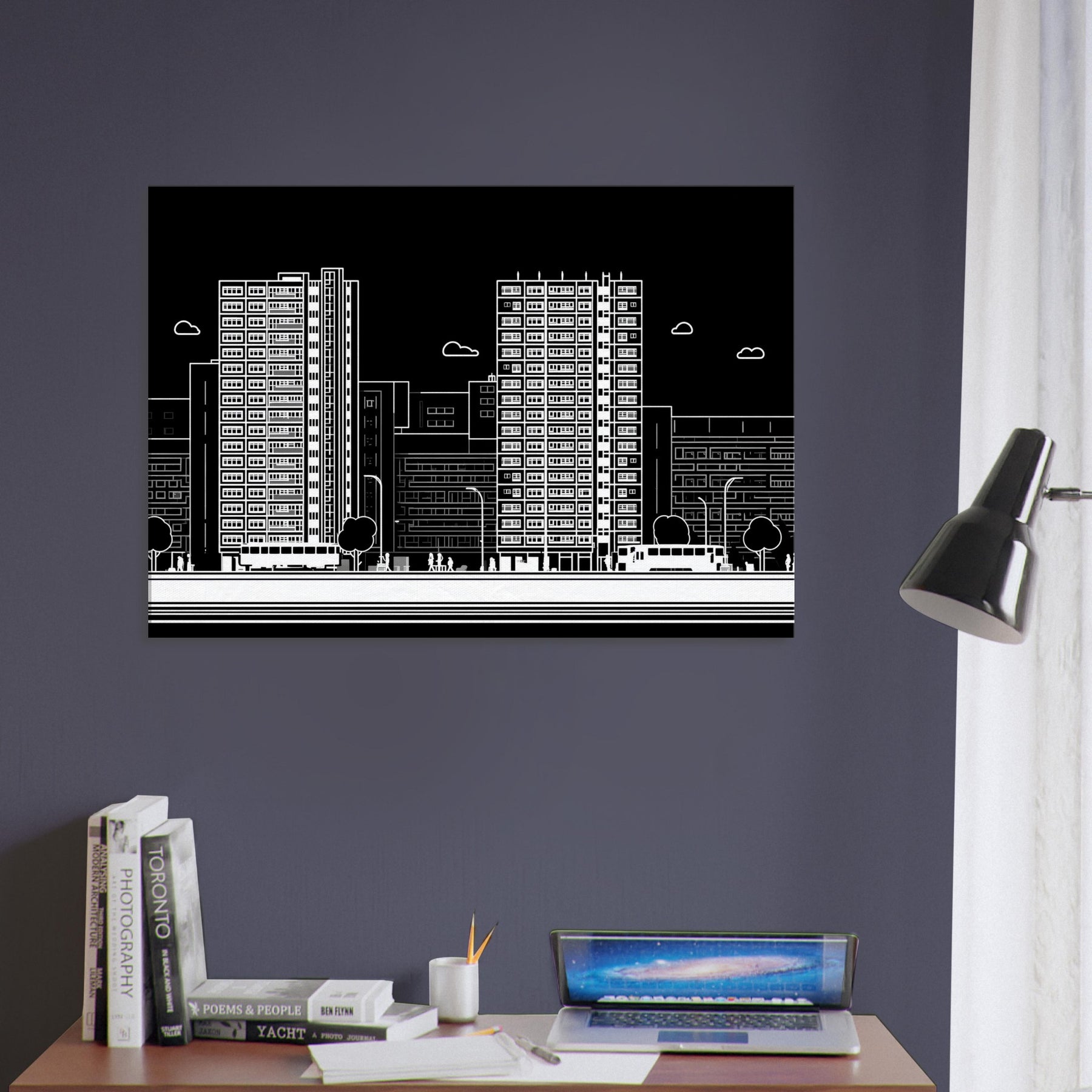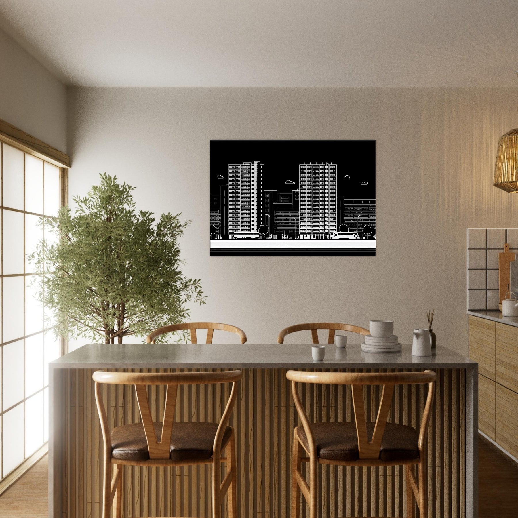 Immerse your space in a nocturnal city chorus with this Toronto line art. Clean, continuous contours trace towers and avenues, turning urban pulse into a serene composition that feels both architectural and intimate. The stark black and white contrast invites quiet focus, while the delicate rhythm of the lines suggests morning light on glass and steel. Perfect for a living room or study, it adds kinetic sophistication and a sense of place, grounding conversations and memories in Toronto's skyline.