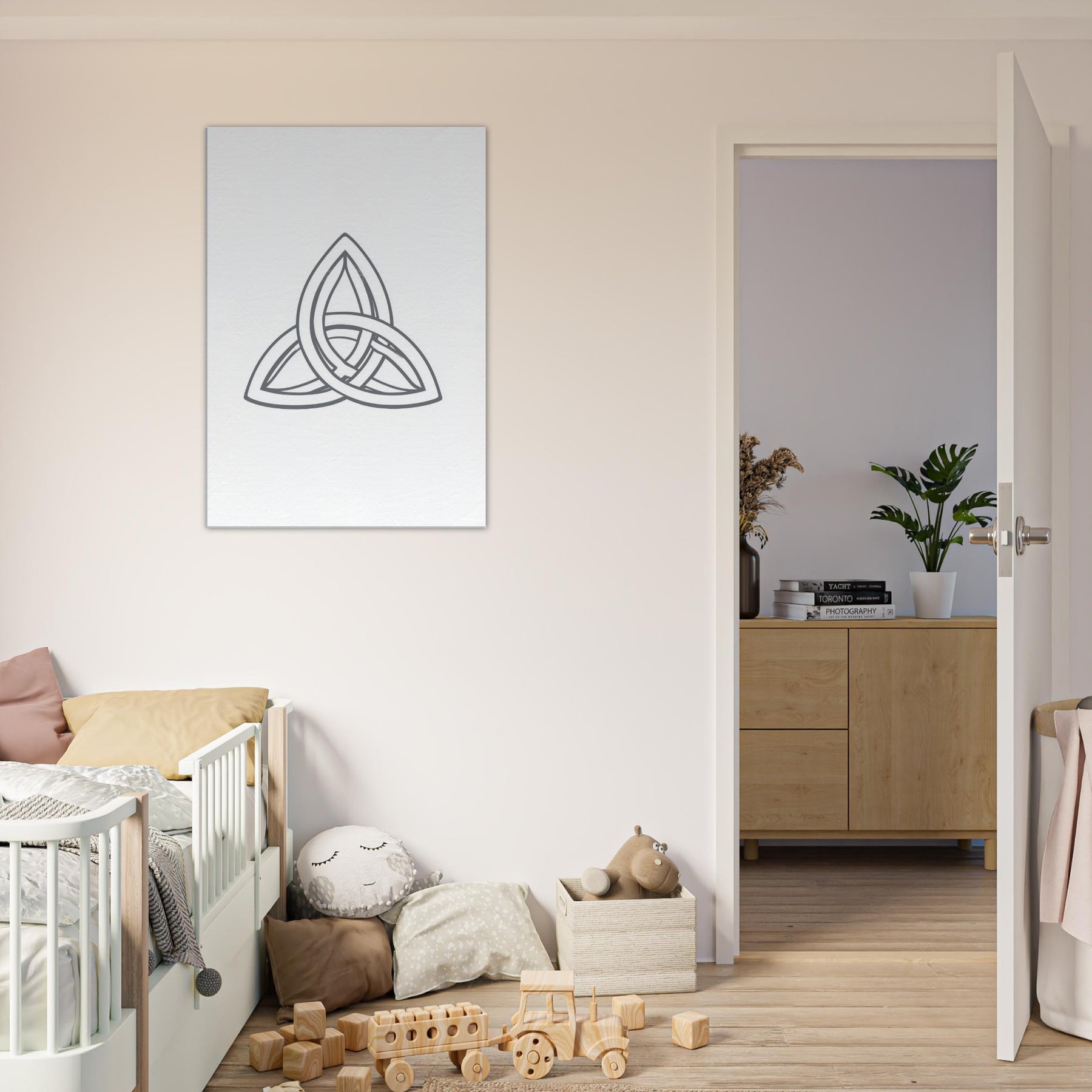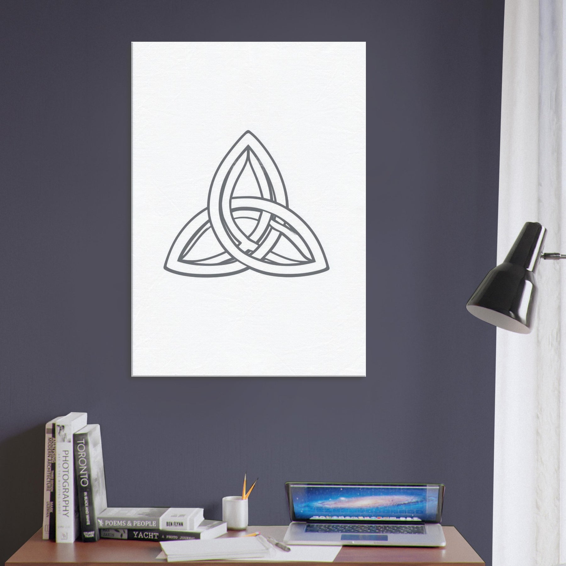 Elegant Celtic Triquetra unfolds in a graceful, interwoven form that feels ancient and intimate. This emblem of unity radiates a quiet harmony, inviting the eye to linger as the lines weave a story of connection and cyclical balance. In a modern living room, the sculpture like outline becomes a calm focal point an aura of mysticism that complements cool tones and soft textures. A perfect companion for reading nooks or entryways, it whispers of heritage, intention, and the beauty of subtle restraint.