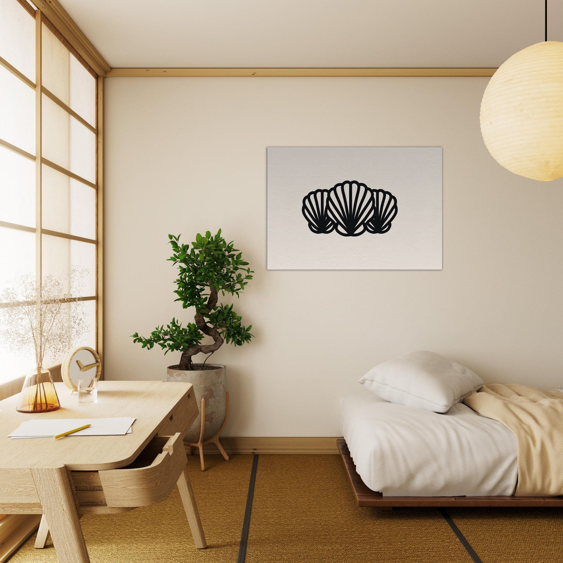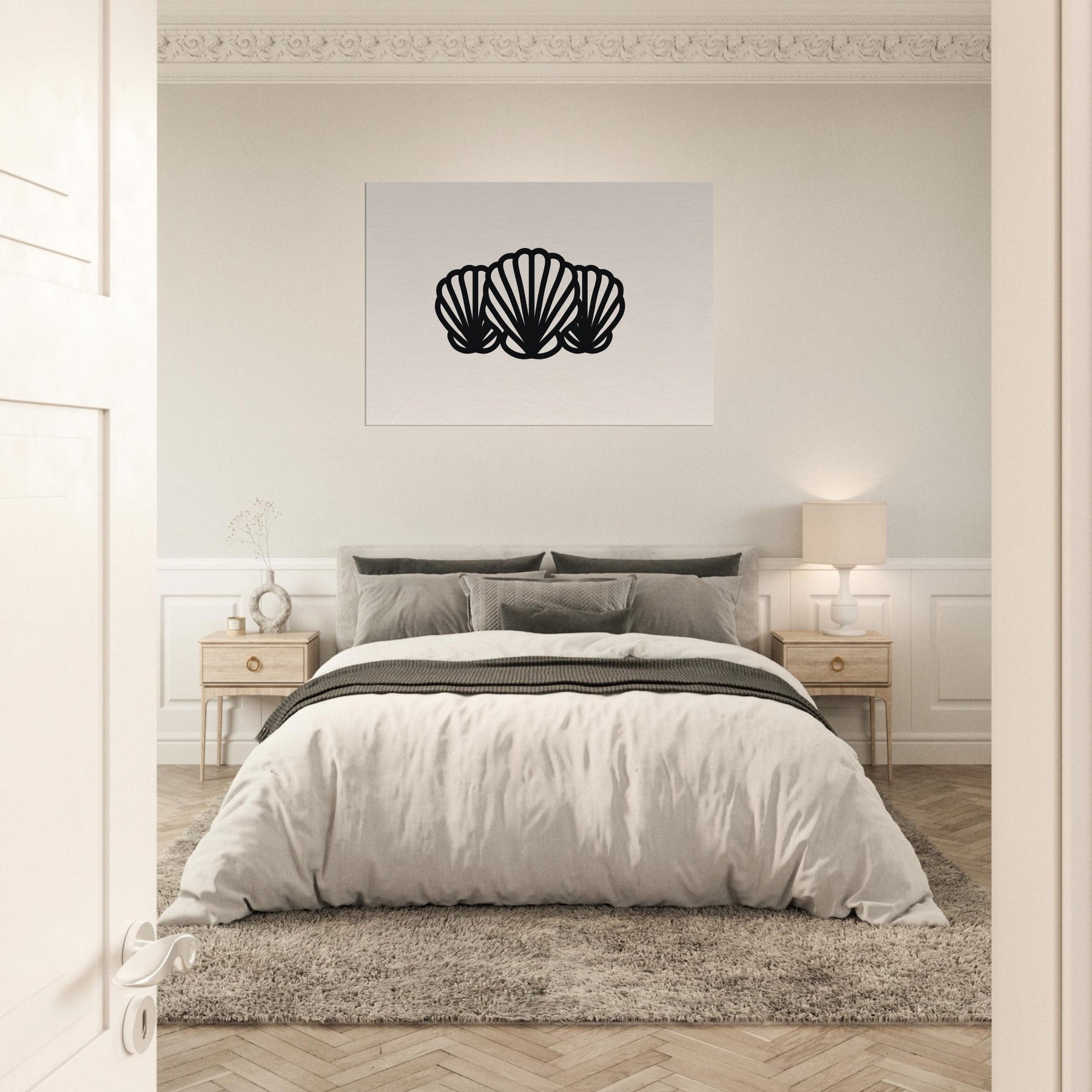 The Seashells Trio gathers like a quiet shoreline drawn in bold, unbroken lines. This line art study captures the rhythm of tides and the soft glow of sunset on pale walls. With generous negative space between the shells, the composition feels both contemporary and timeless, a grounding accent for living rooms or bedrooms. Hang it where morning light grazes the frame, and let the monochrome silhouette invite calm, memory, and a subtle coastal mood into your space.