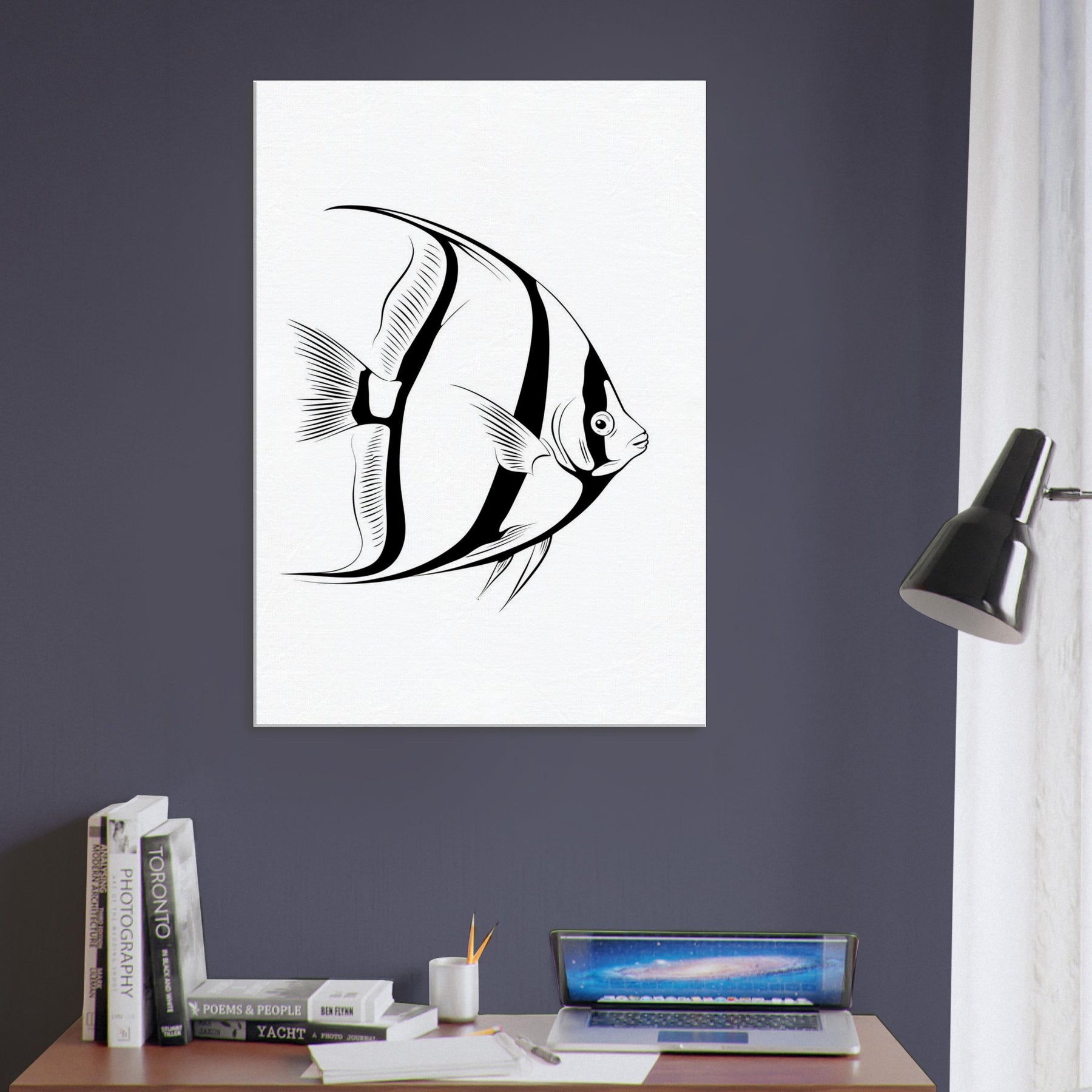 This line art study captures a Tropical Fish in graceful motion, its bold curves gliding through negative space with quiet poise. The crisp black ink against white evokes coral reefs and moonlit tides, turning walls into a tranquil ocean vignette. Perfect for a modern living room, bedroom, or office, it invites calm reflection while adding kinetic elegance to your space. A refined, versatile focal point that enhances light, texture, and everyday serenity.