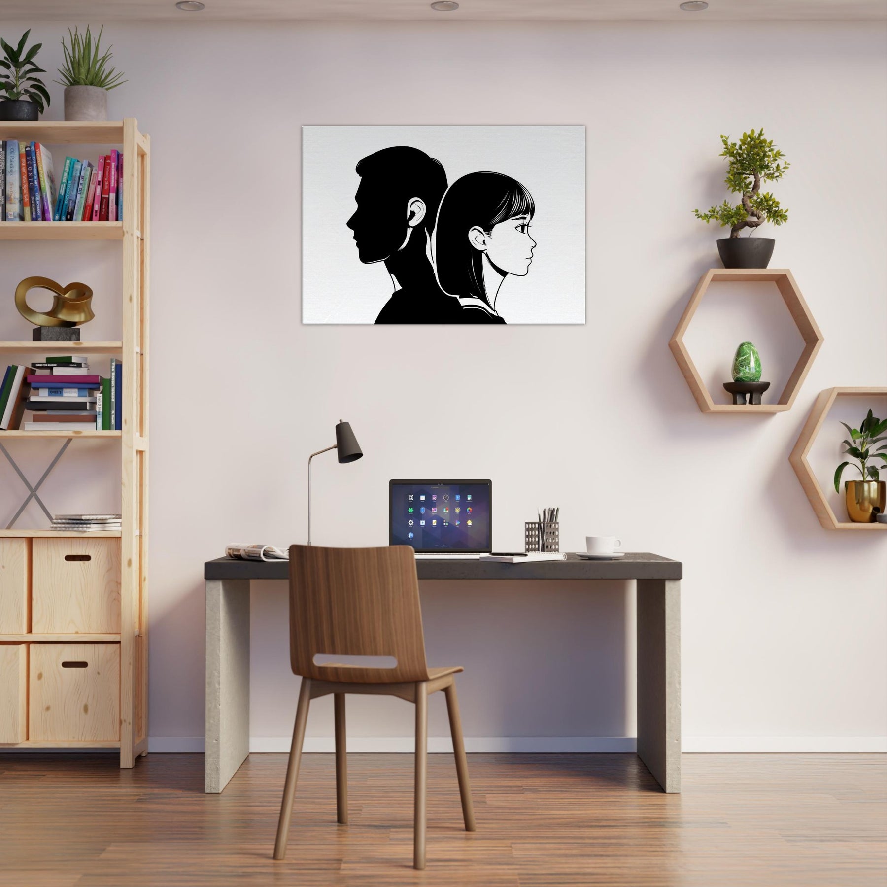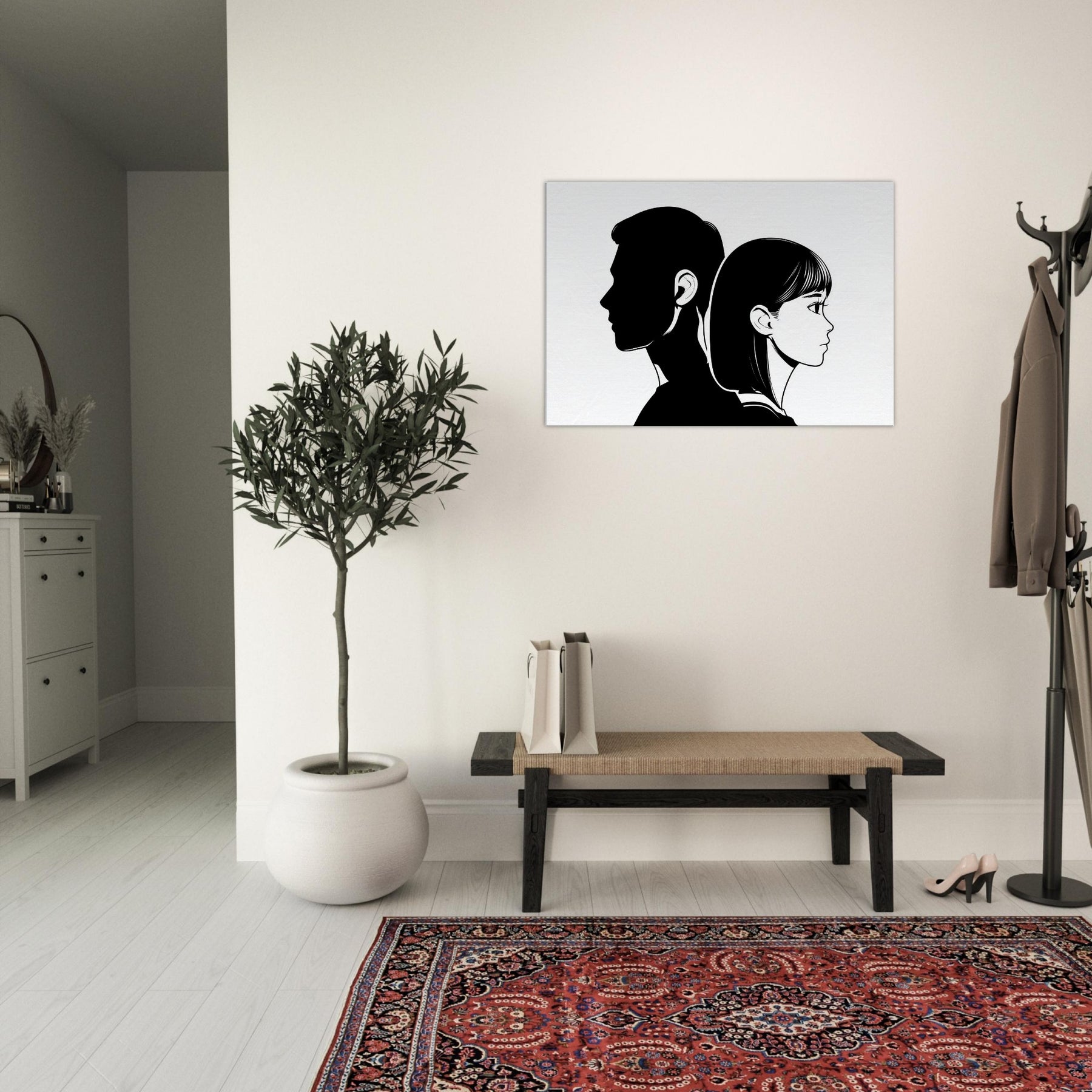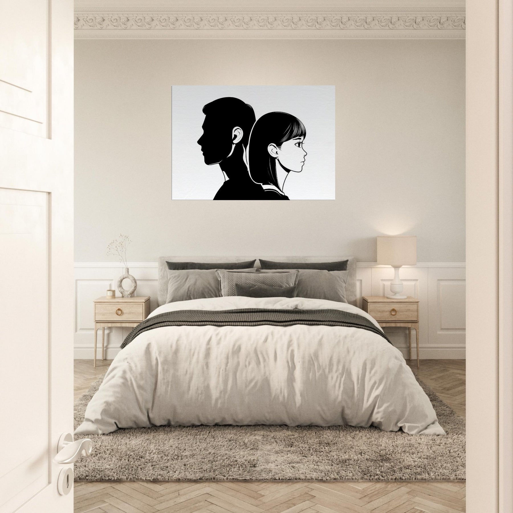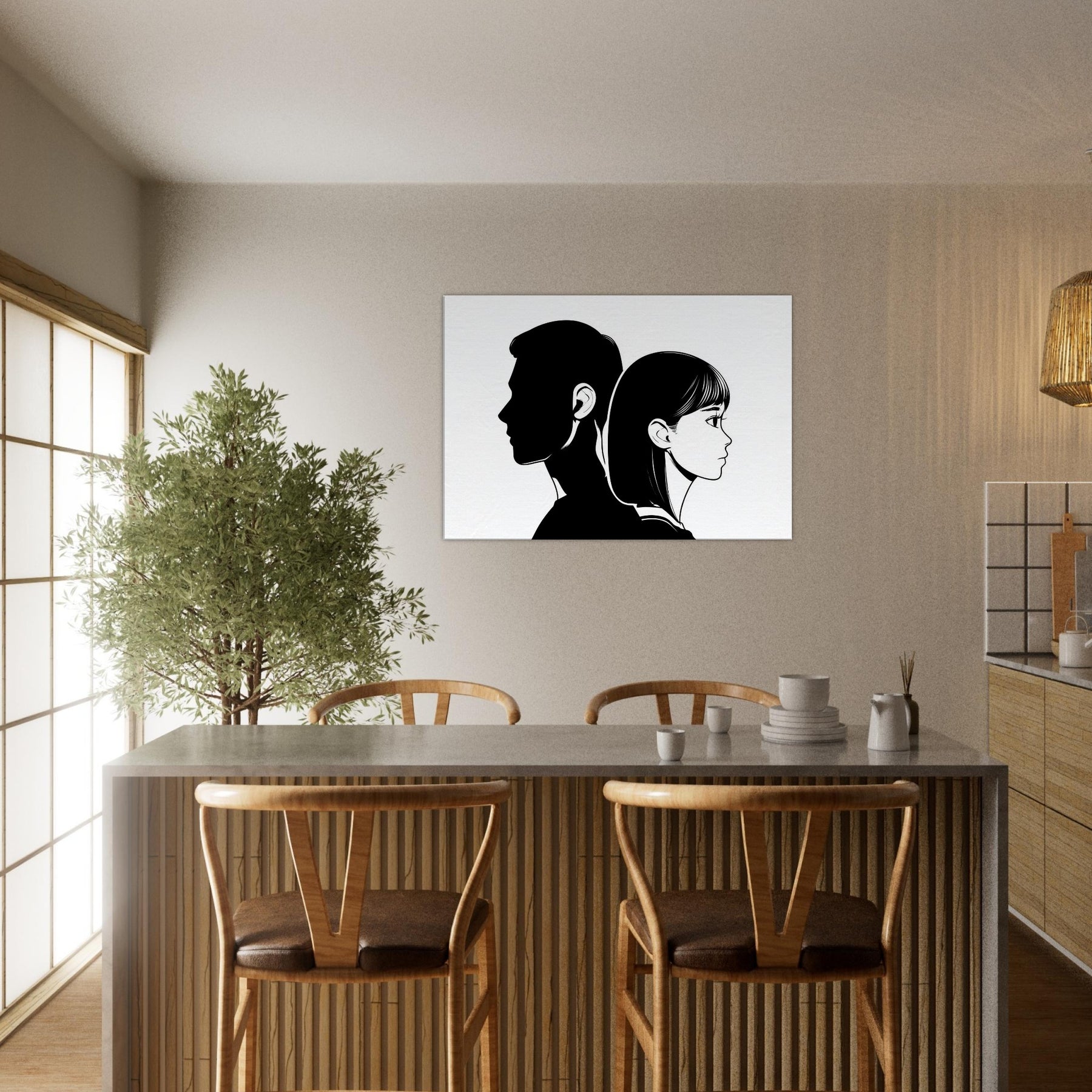 Poised in quiet harmony, this Couple Silhouette captures a moment of shared stillness rendered in clean, continuous lines. The contrast of black against white evokes night and memory, while the open spaces invite a sense of room to breathe. Hang it where light slips across a neutral wall, and let the mood drift into your living room or bedroom subtle, intimate, and deeply modern. A serene focal point that enhances texture, scale, and conversation without shouting for attention.