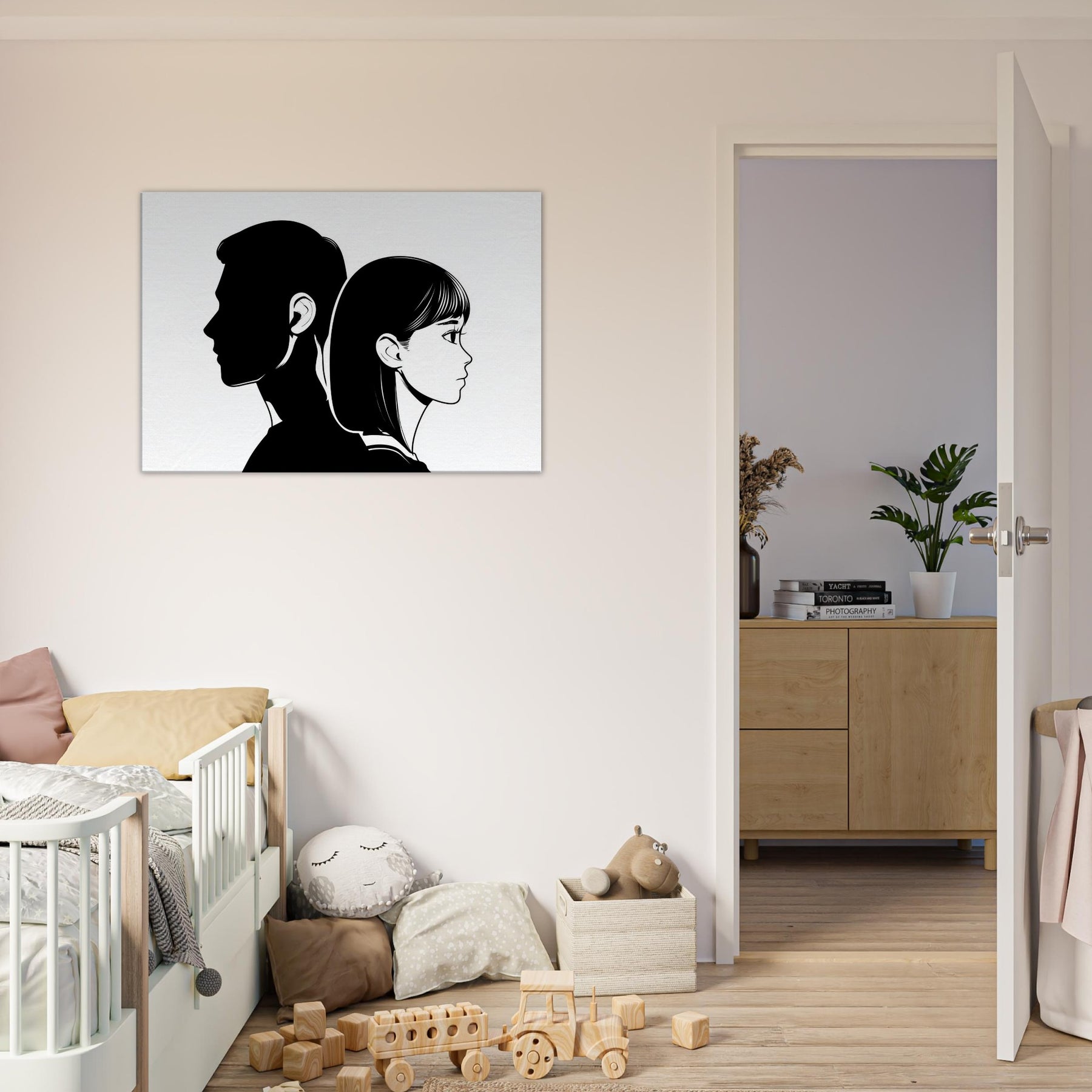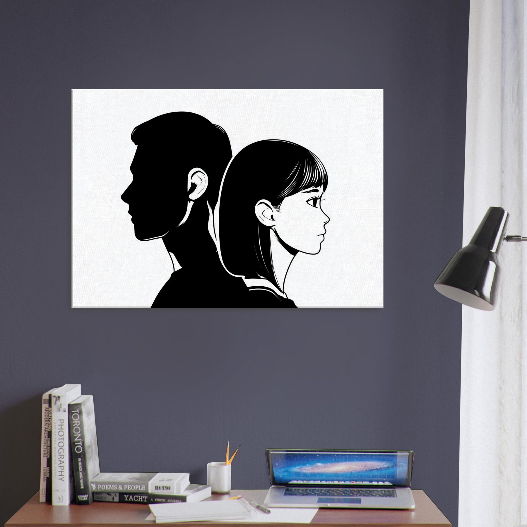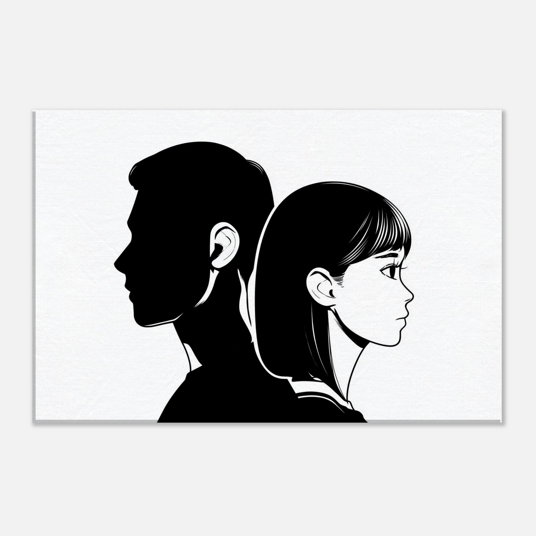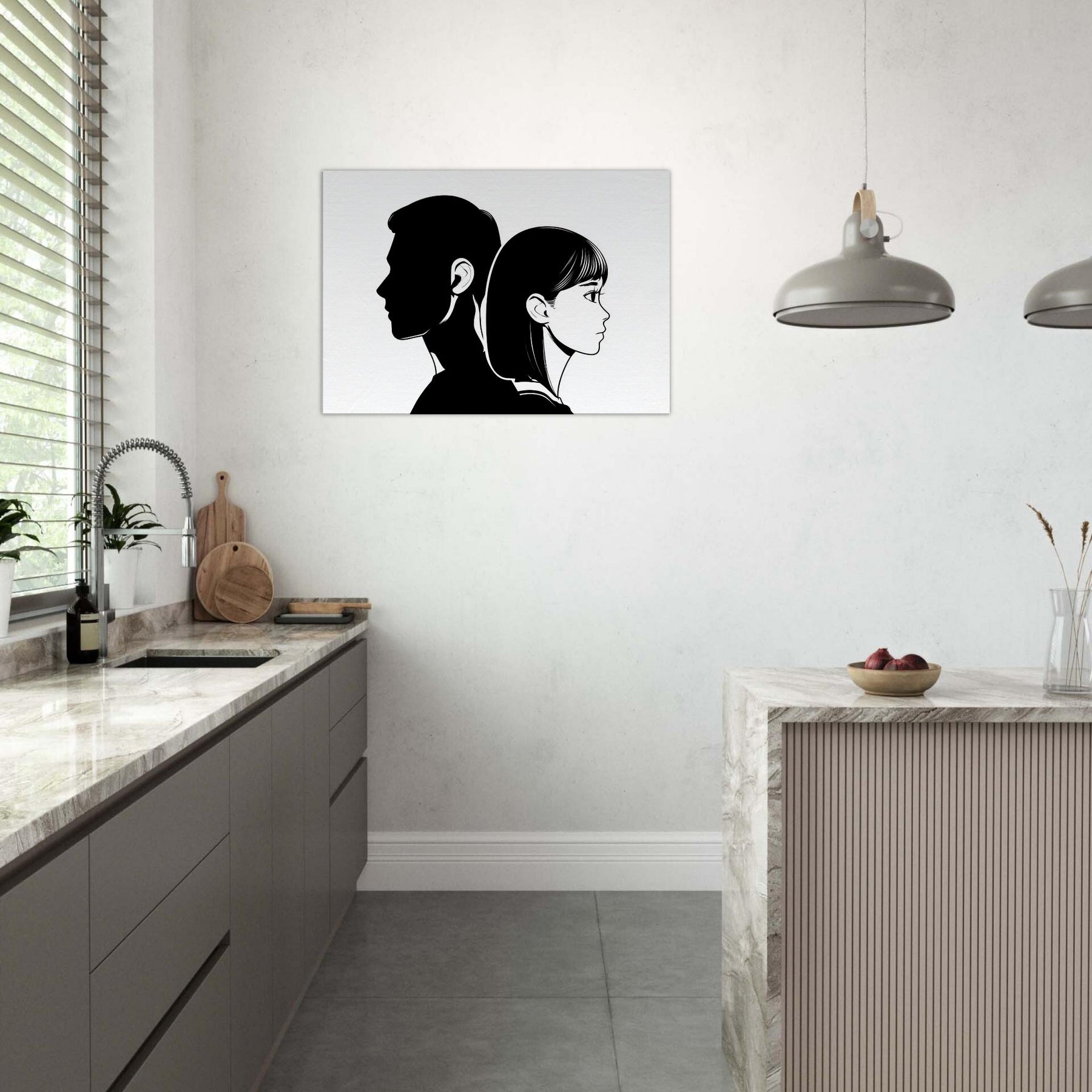 Poised in quiet harmony, this Couple Silhouette captures a moment of shared stillness rendered in clean, continuous lines. The contrast of black against white evokes night and memory, while the open spaces invite a sense of room to breathe. Hang it where light slips across a neutral wall, and let the mood drift into your living room or bedroom subtle, intimate, and deeply modern. A serene focal point that enhances texture, scale, and conversation without shouting for attention.