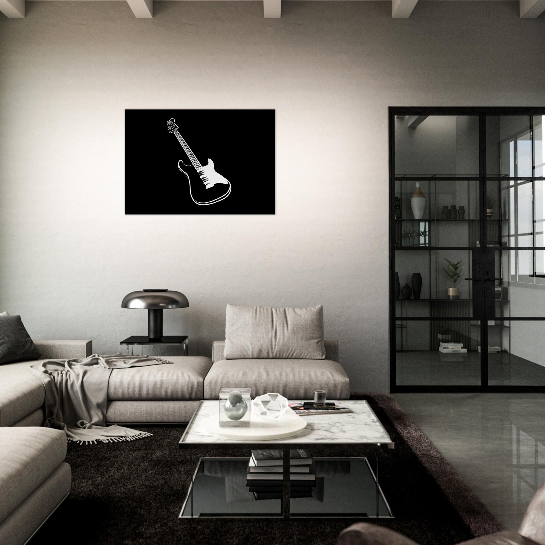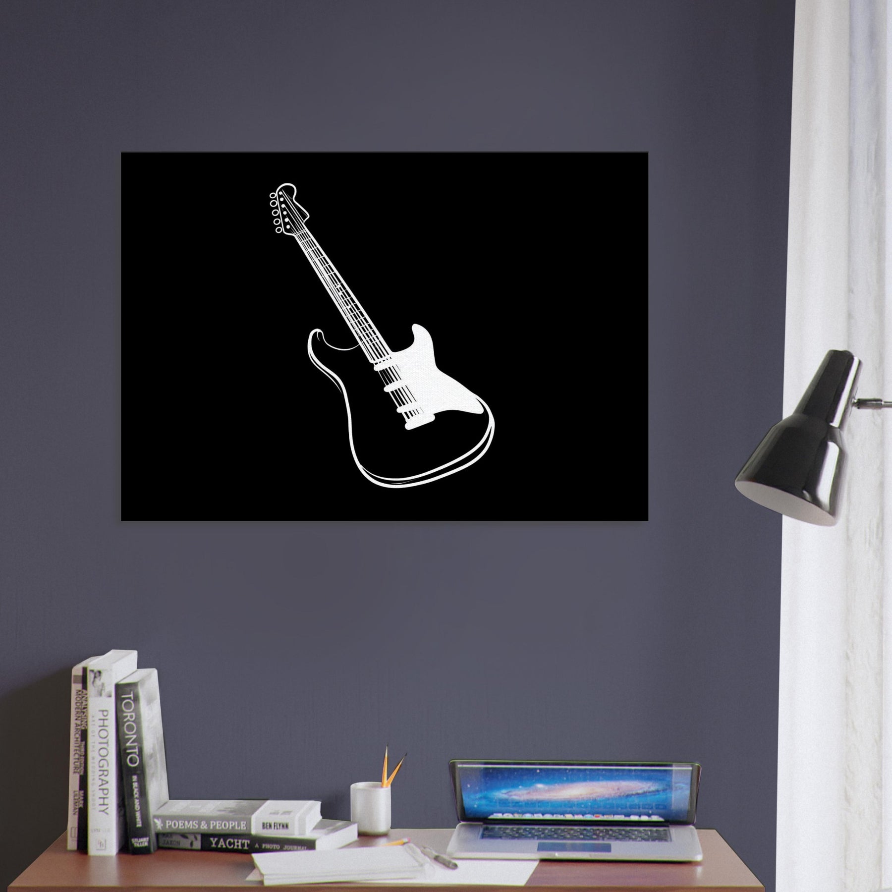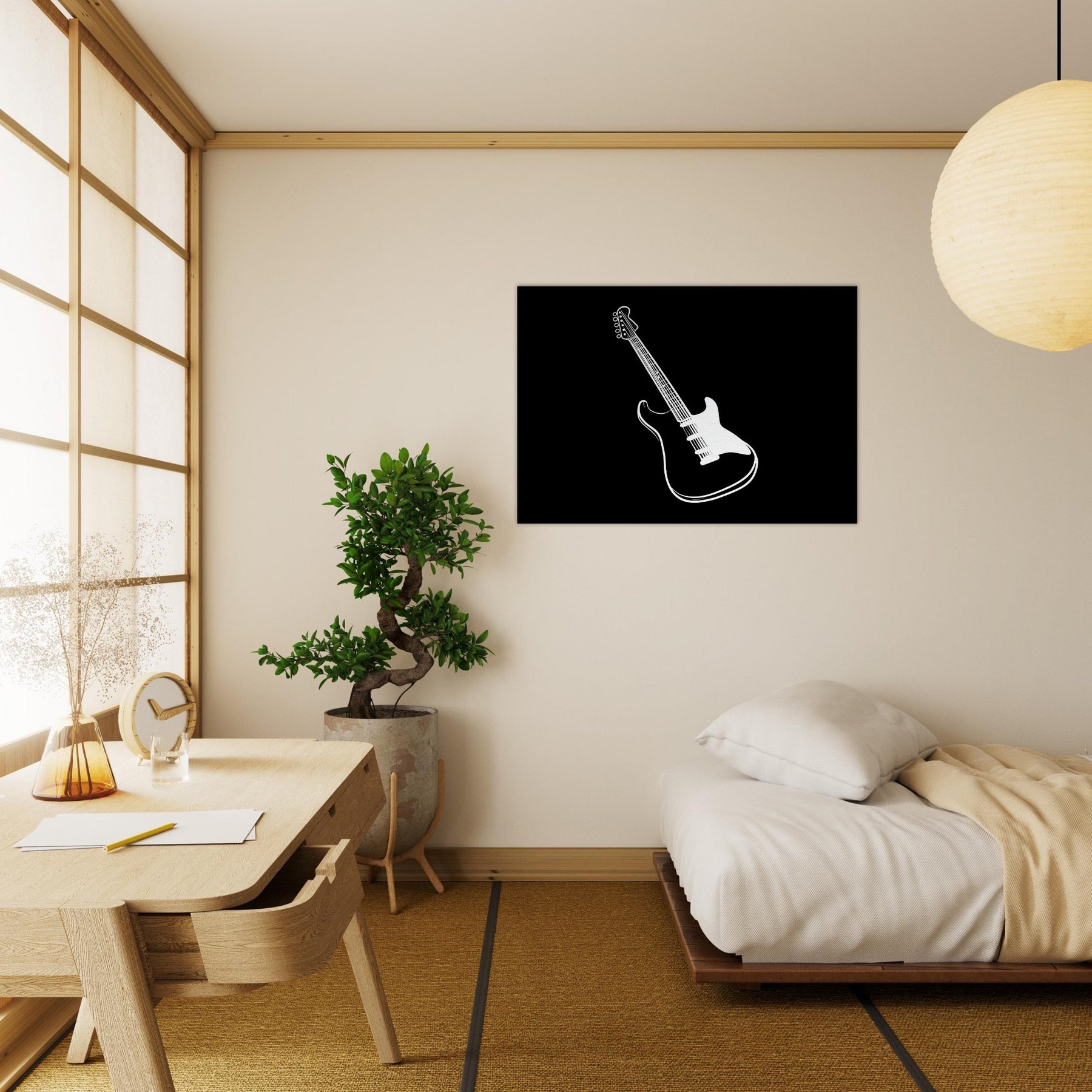Let this stark Guitar line art map a quiet tempo across your walls. The monochrome silhouette glides through space like a melody sketched in light, each string a whisper, each curve a breath. In a living room or studio, it invites contemplation and a calm, creative energy, pairing beautifully with wood tones and soft textures. The clean elegance of the design transforms a blank wall into a stage for memory, mood, and possibility.