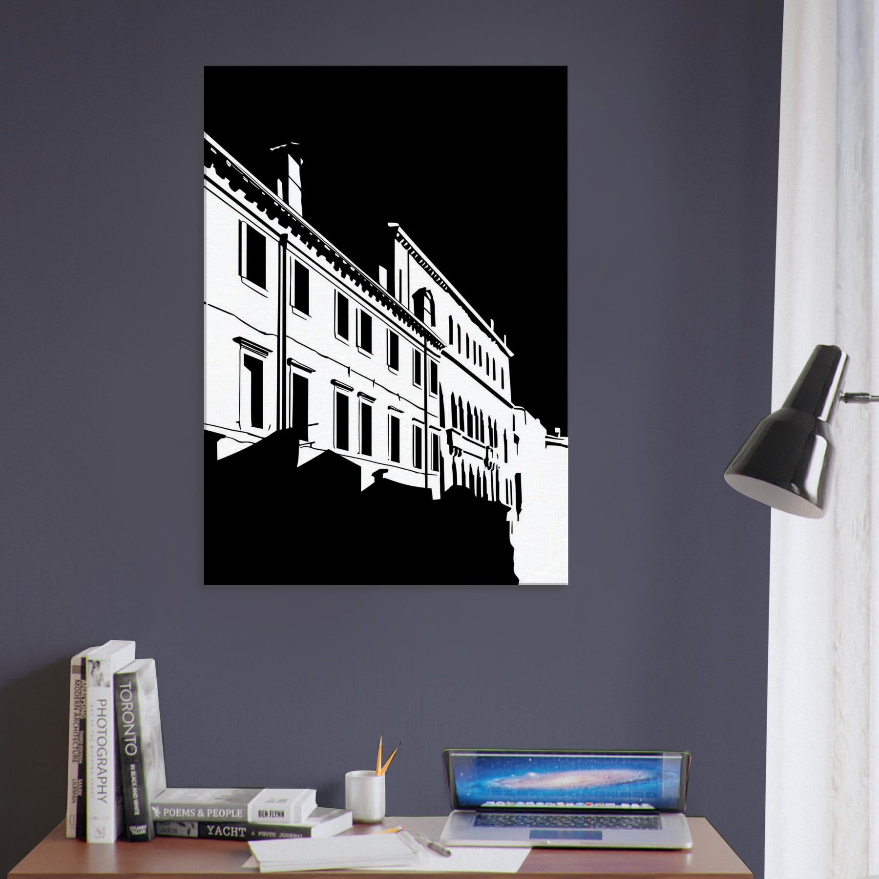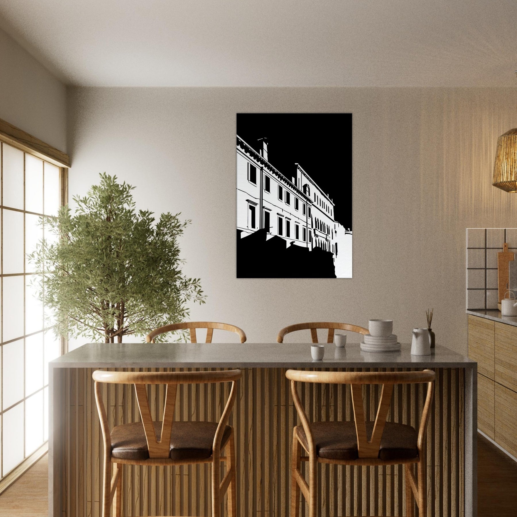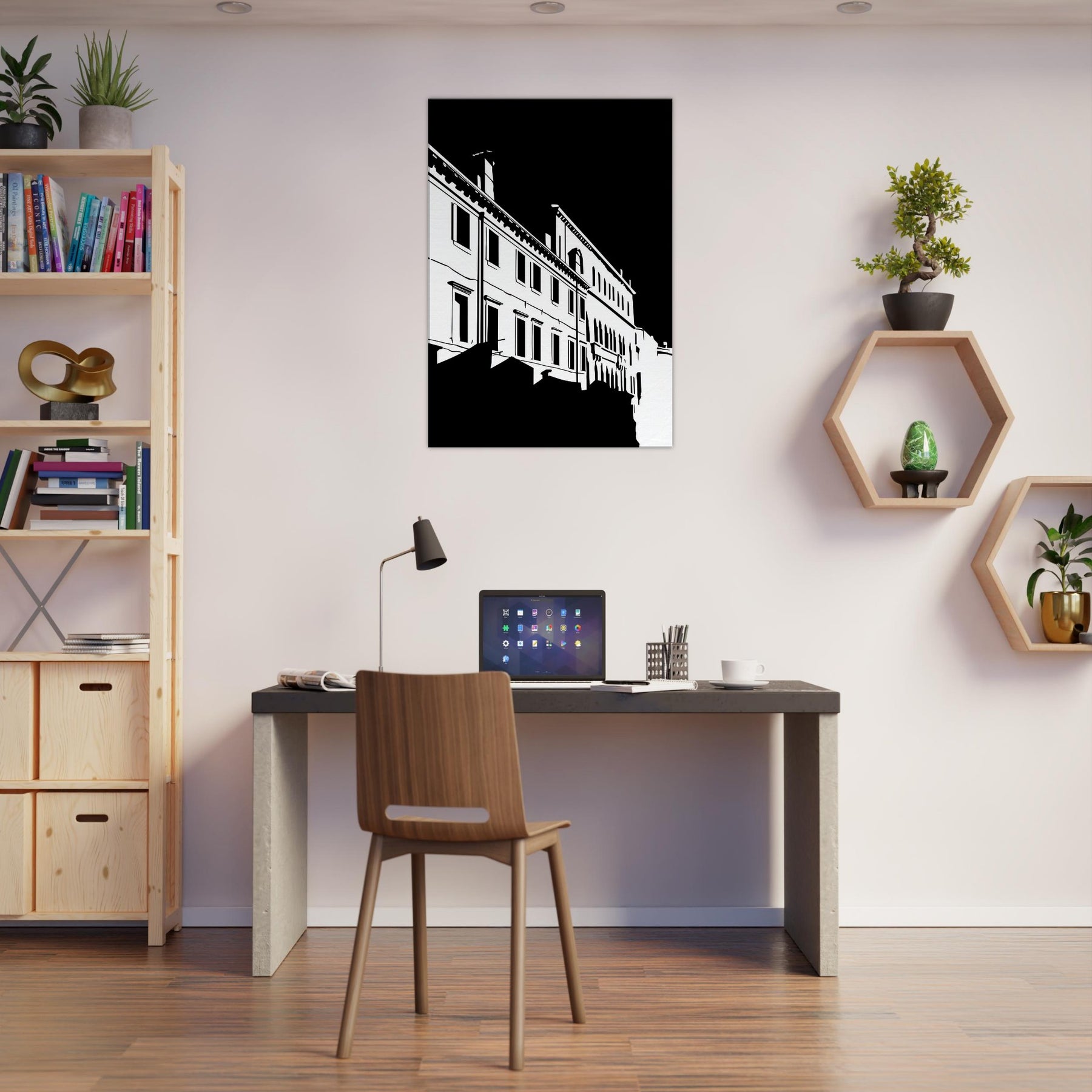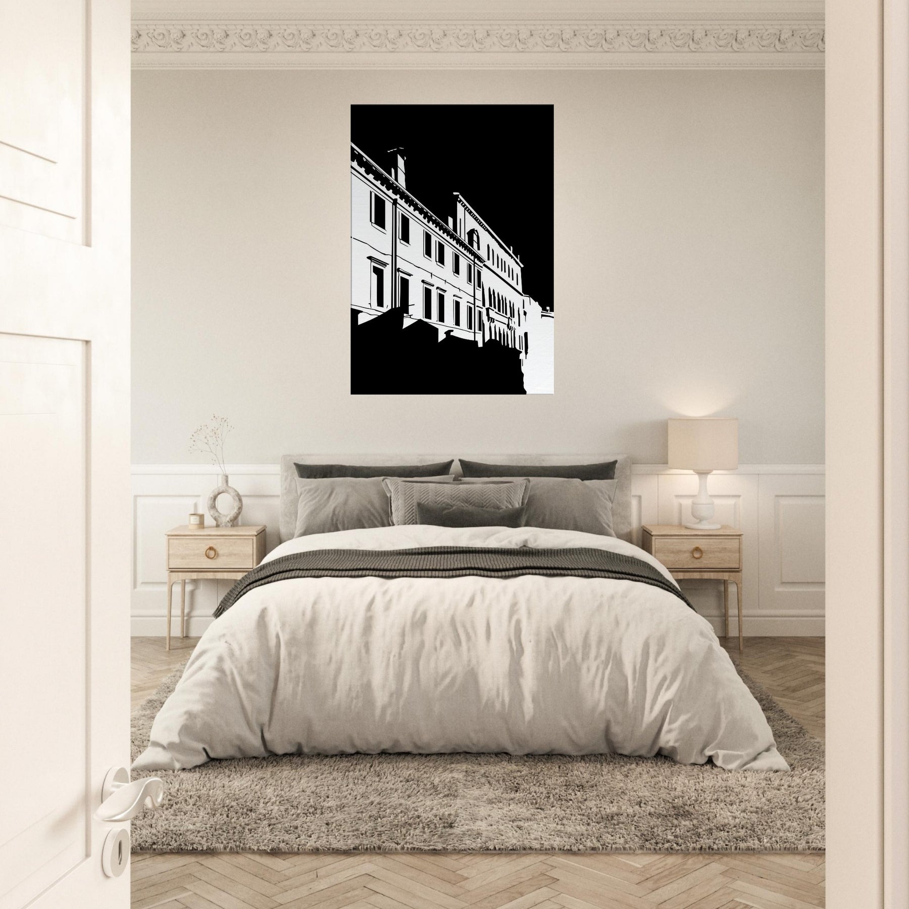 Venice unfurls in a quiet procession of lines and shadows. This line art study traces canal front facades and arched windows in a breath of black and white, inviting the eye to wander like a gondola at dusk. The restrained contrast creates a calm, cinematic mood that enriches living rooms, bedrooms, or entryways with a sense of architectural poetry. It's a timeless reminder of Venice's grace, turning walls into a serene horizon for daily reflection and conversation.
