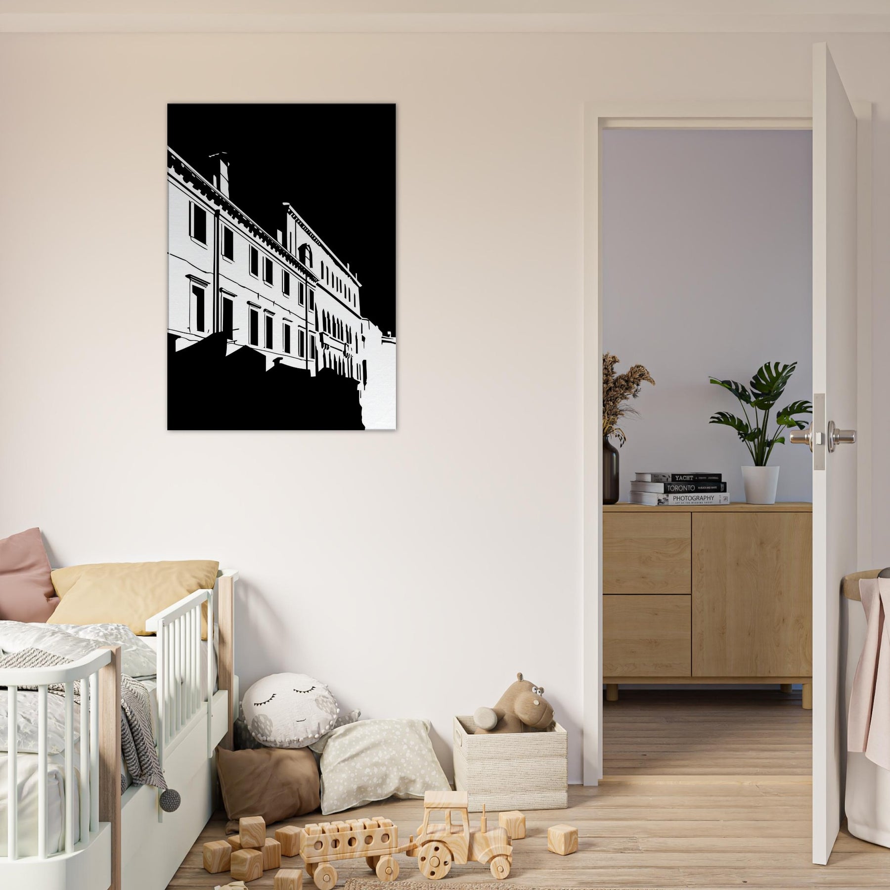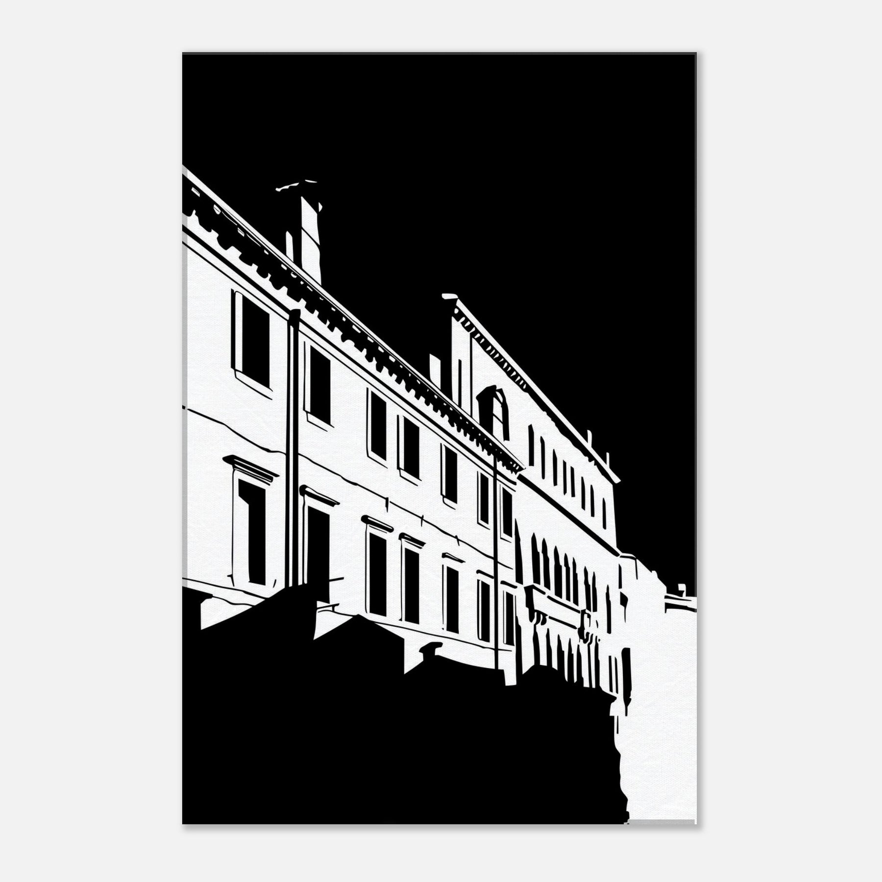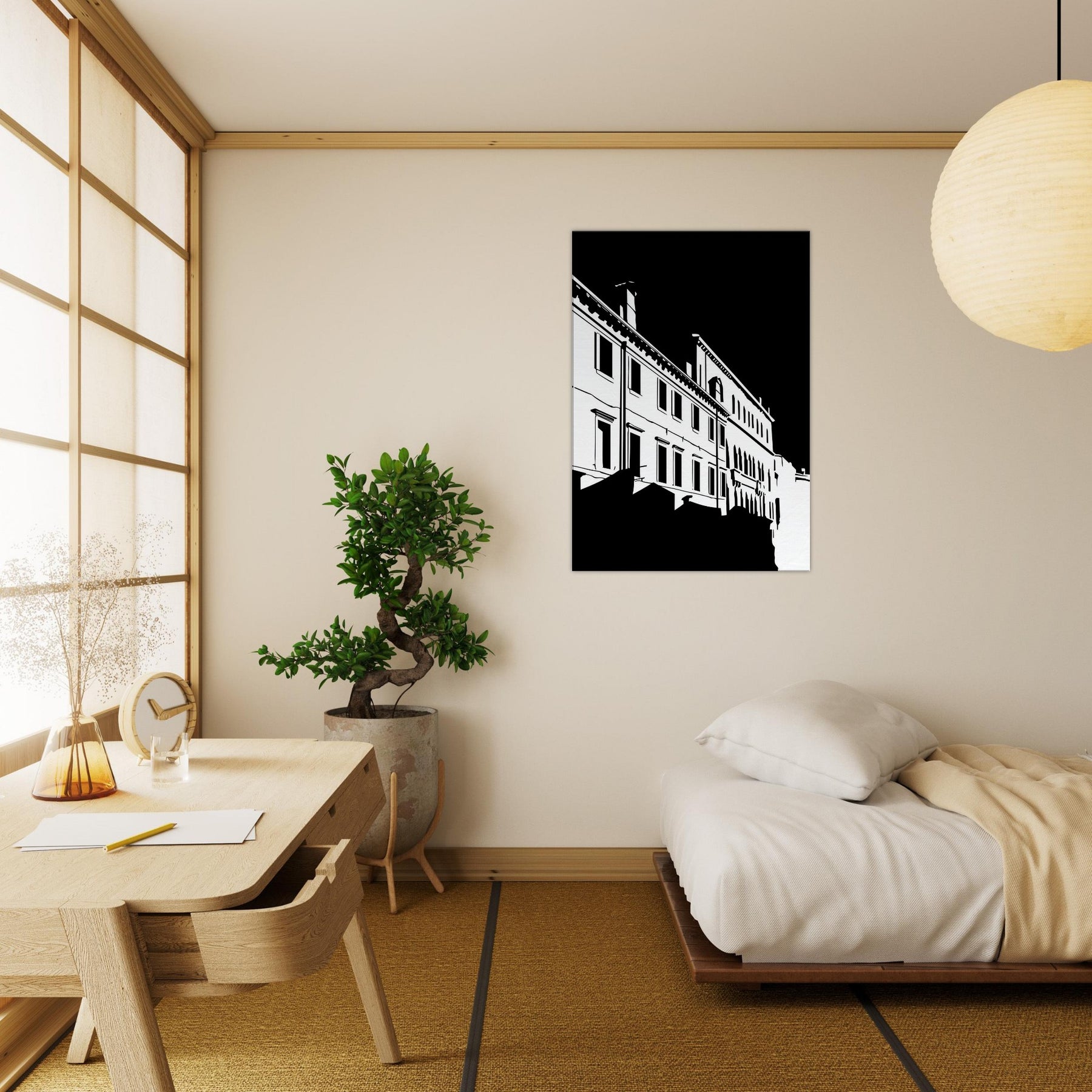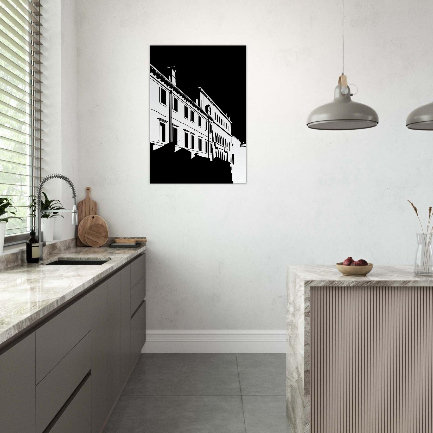 Venice unfurls in a quiet procession of lines and shadows. This line art study traces canal front facades and arched windows in a breath of black and white, inviting the eye to wander like a gondola at dusk. The restrained contrast creates a calm, cinematic mood that enriches living rooms, bedrooms, or entryways with a sense of architectural poetry. It's a timeless reminder of Venice's grace, turning walls into a serene horizon for daily reflection and conversation.