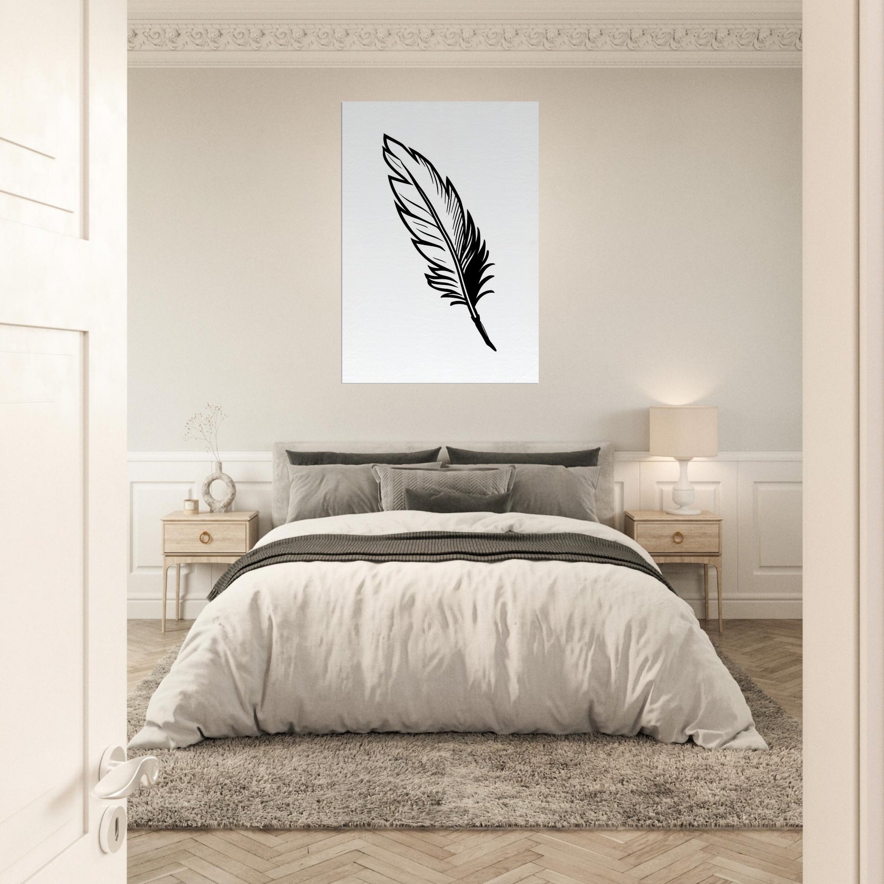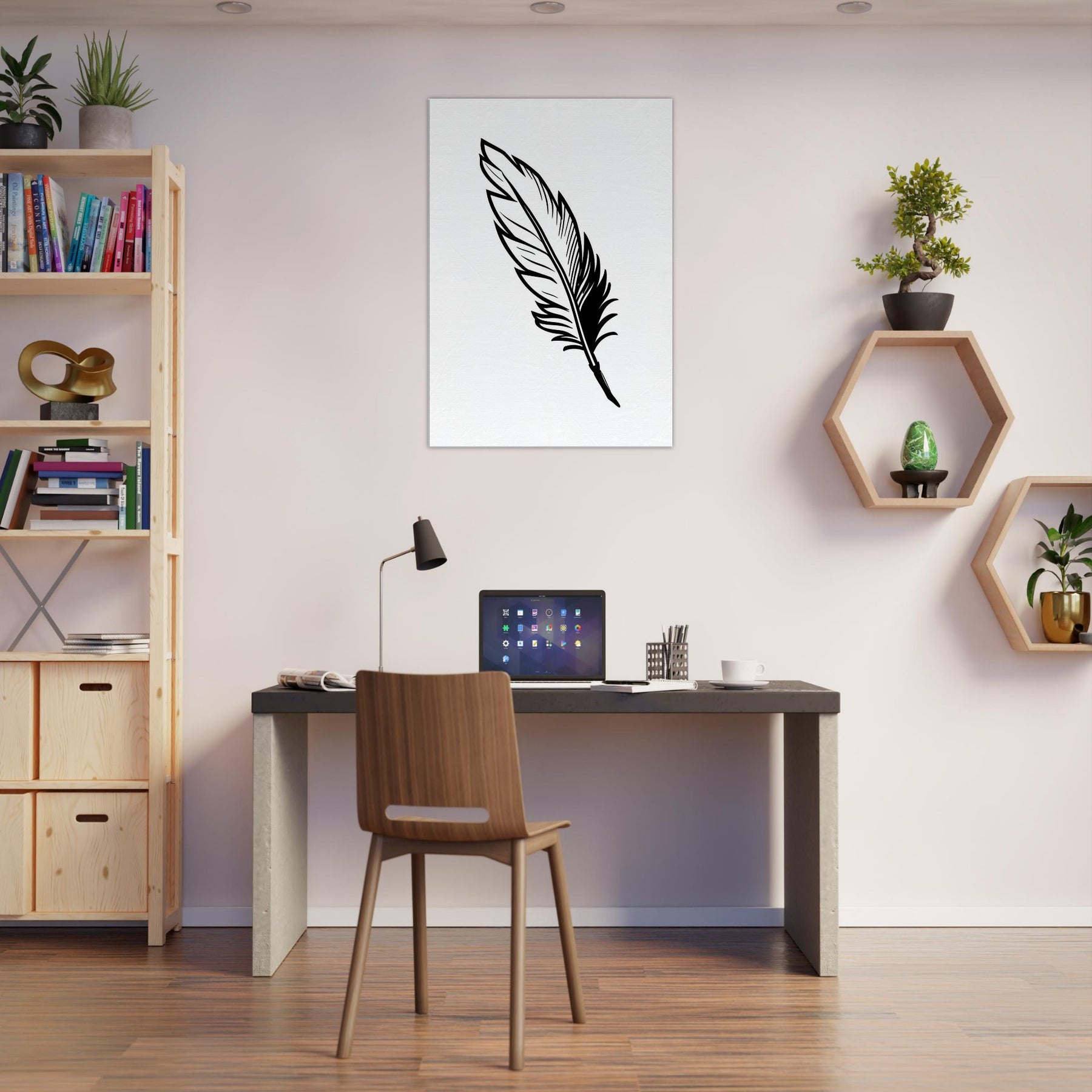 Feather Quill, rendered in elegant line work, is a study in quiet movement and timeless simplicity. The bold black contour against white invites reflection, like a whispered note sketched across a page. This art brings an airy, literary mood to any room living spaces, bedrooms, or desks inviting calm focus and creative contemplation. Its refined silhouette pairs with modern decor, offering a subtle statement of sophistication and inspiration that elevates everyday moments.