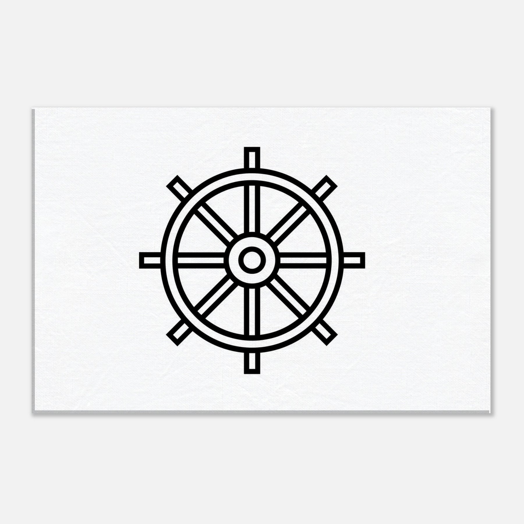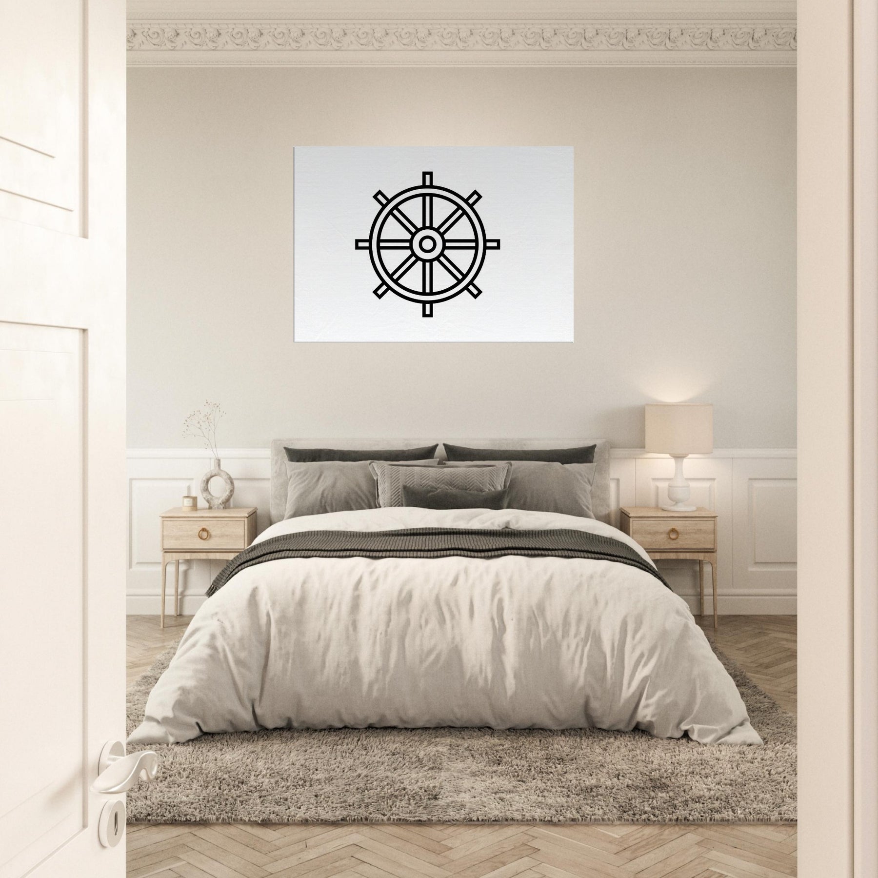 Designed in elegant line work, the Dharma Wheel draws the eye with clean, confident strokes that ripple like a quiet mantra across the wall. This modern line art rendition of the Dharmachakra feels timeless, inviting contemplation as natural light softens its contours. In a living room or study, it acts as a calm compass its symmetrical spokes suggesting balance, focus, and renewal. Printed on pristine material, the piece pairs with warm woods or cool whites, turning any space into a serene sanctuary. The central subject is Dharma Wheel (Dharmachakra).