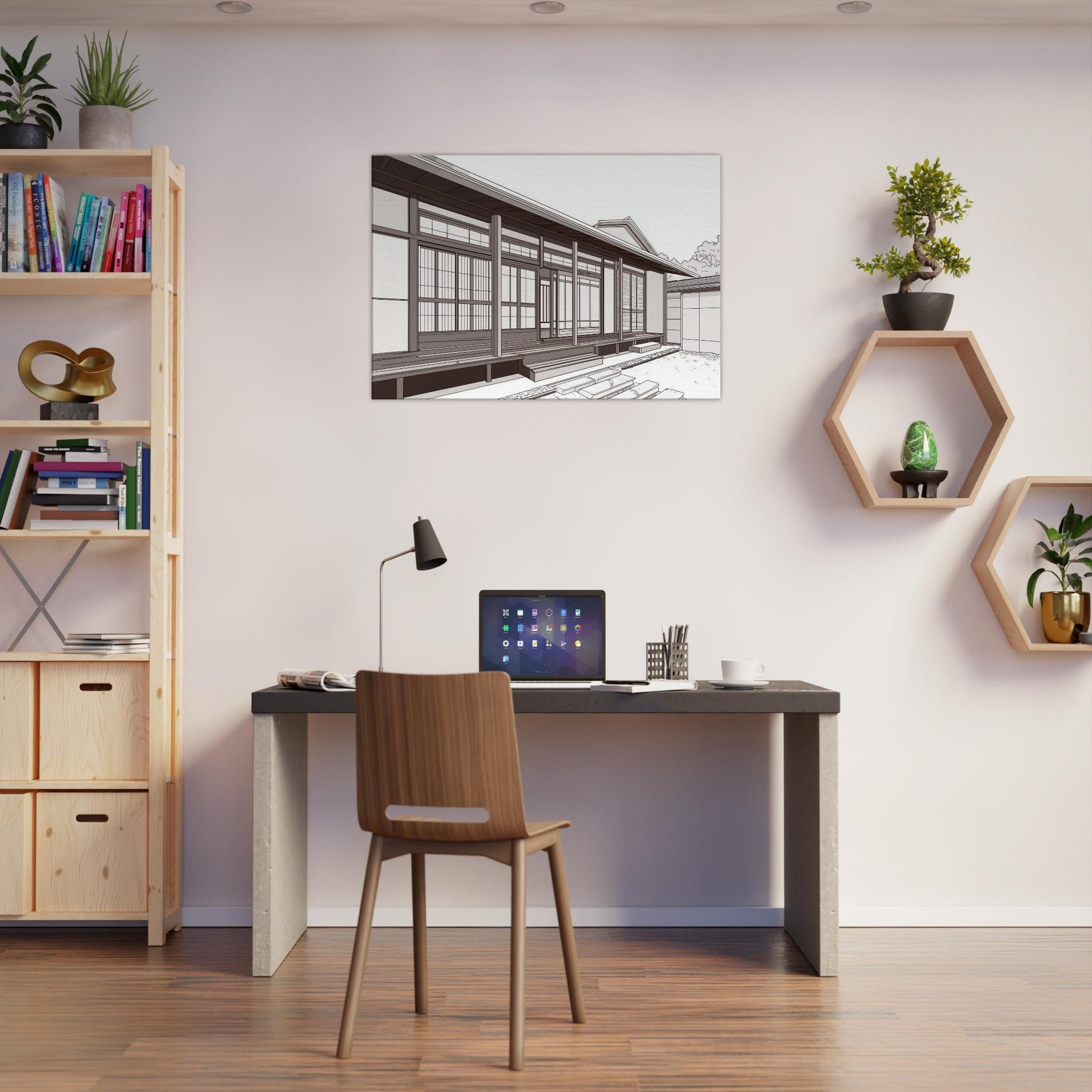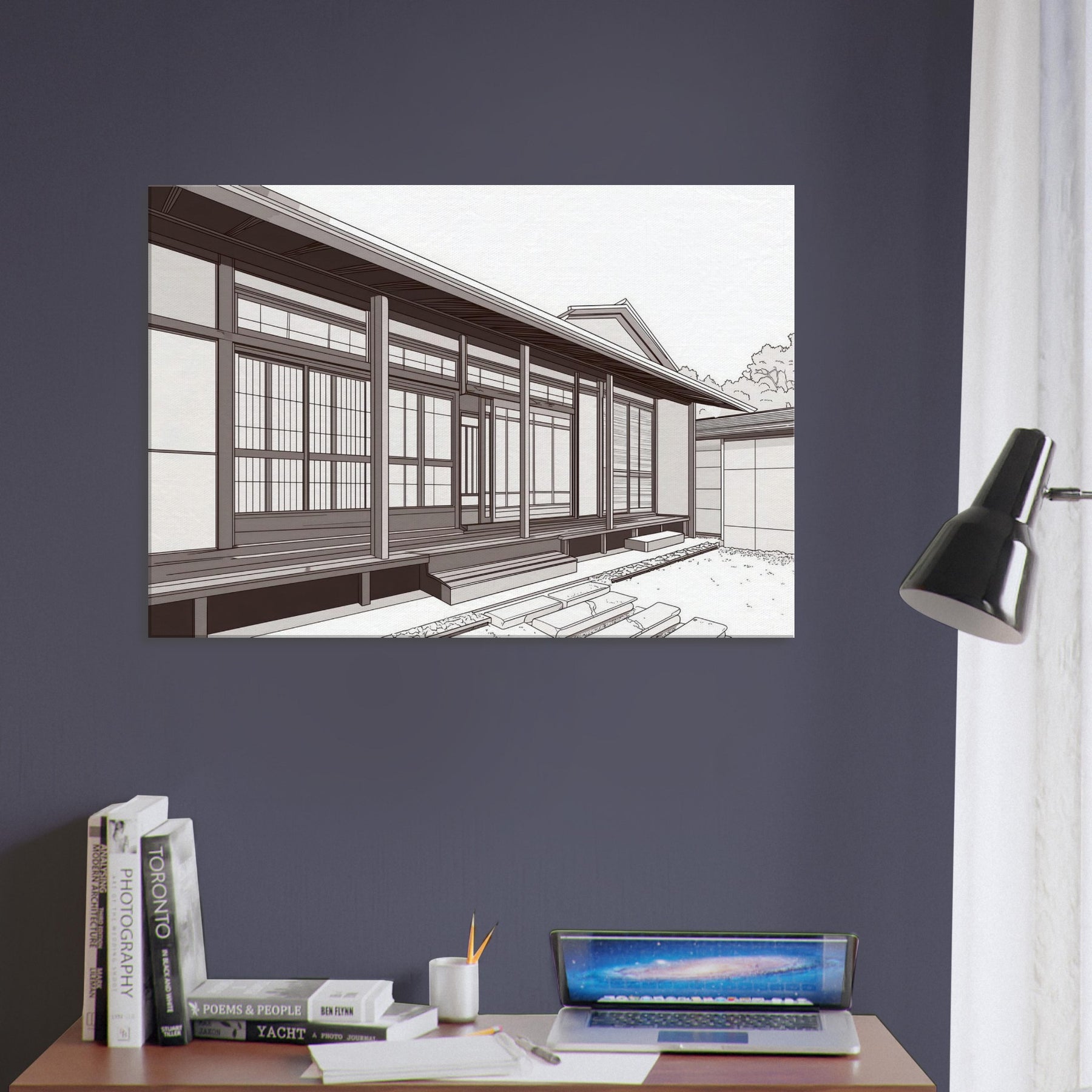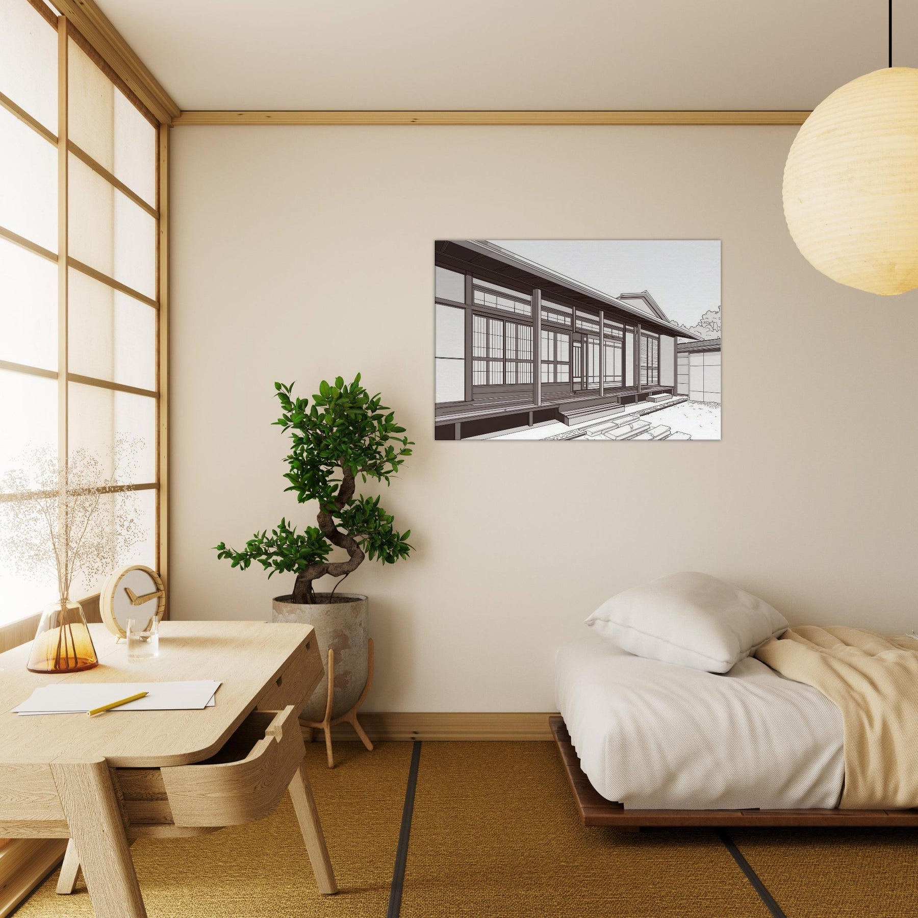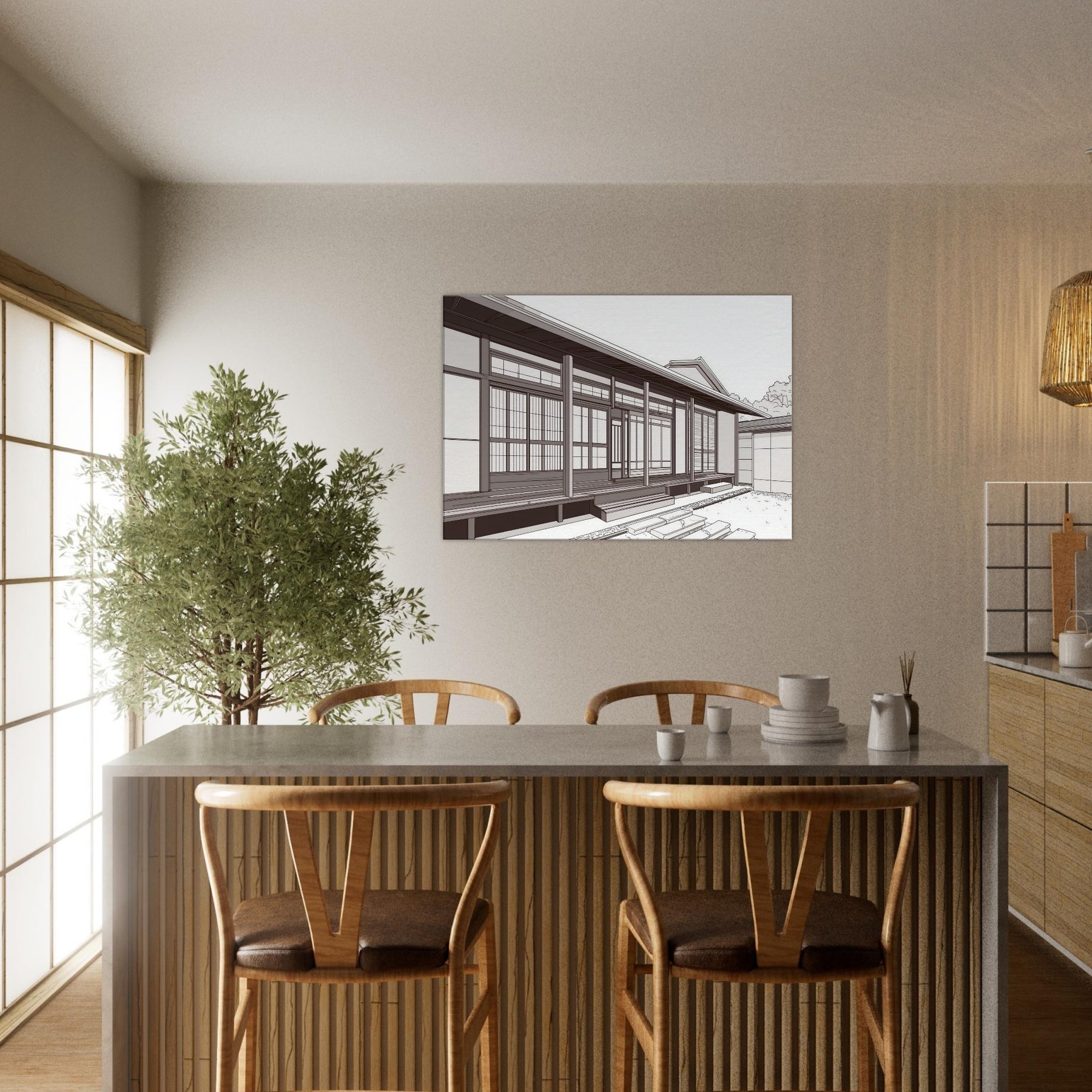 Step into the quiet rhythm of Japanese Houses, where each line traces a careful balance of space and light. This study in minimal form evokes a serene neighborhood: sliding doors, wooden beams, and the hush of a morning breeze. The composition invites calm contemplation, turning any wall into a window of tranquility. Hang it where your living space can breathe beside a sofa or entryway to conjure sunlit porches, soft shadows, and the quiet poetry of traditional design reimagined for today.