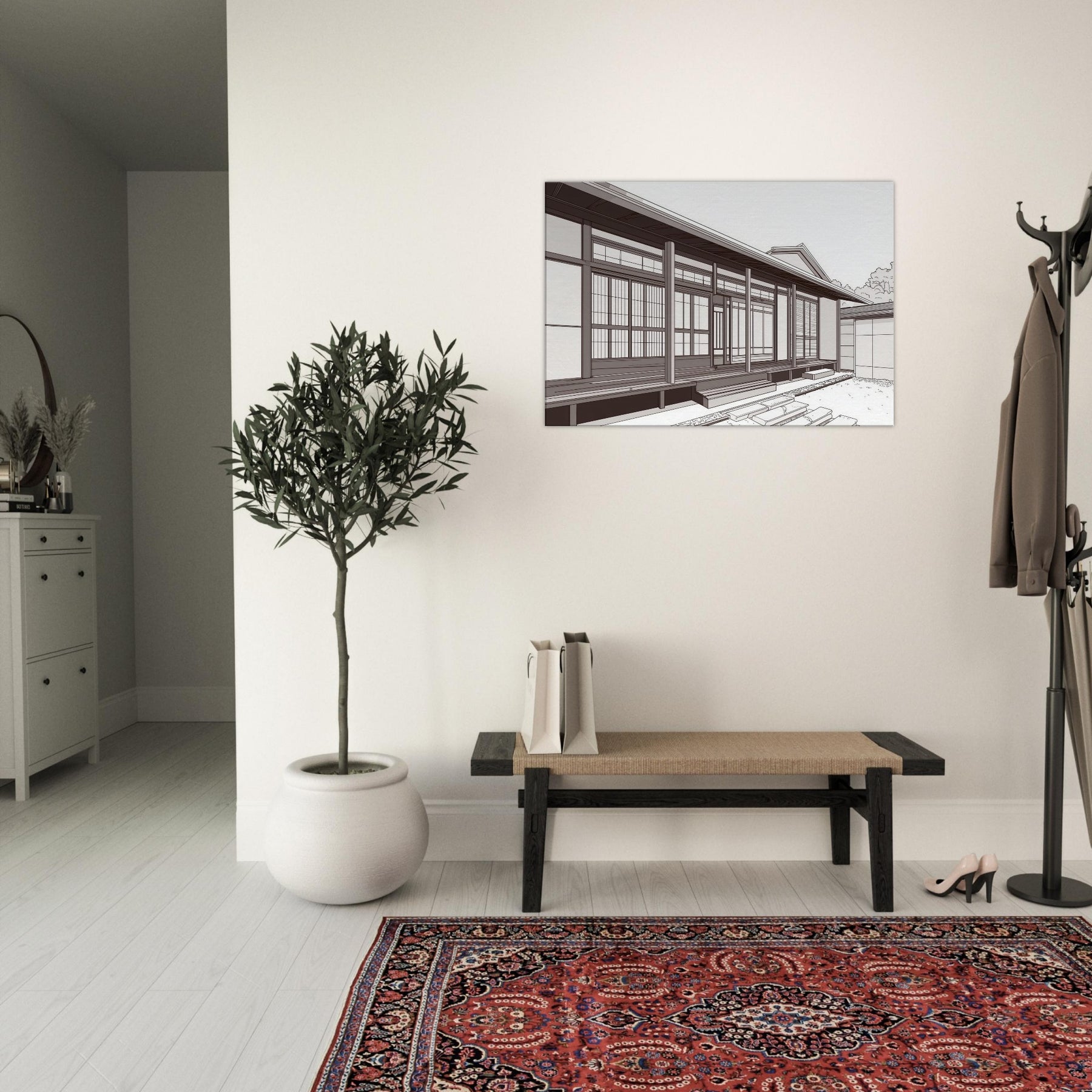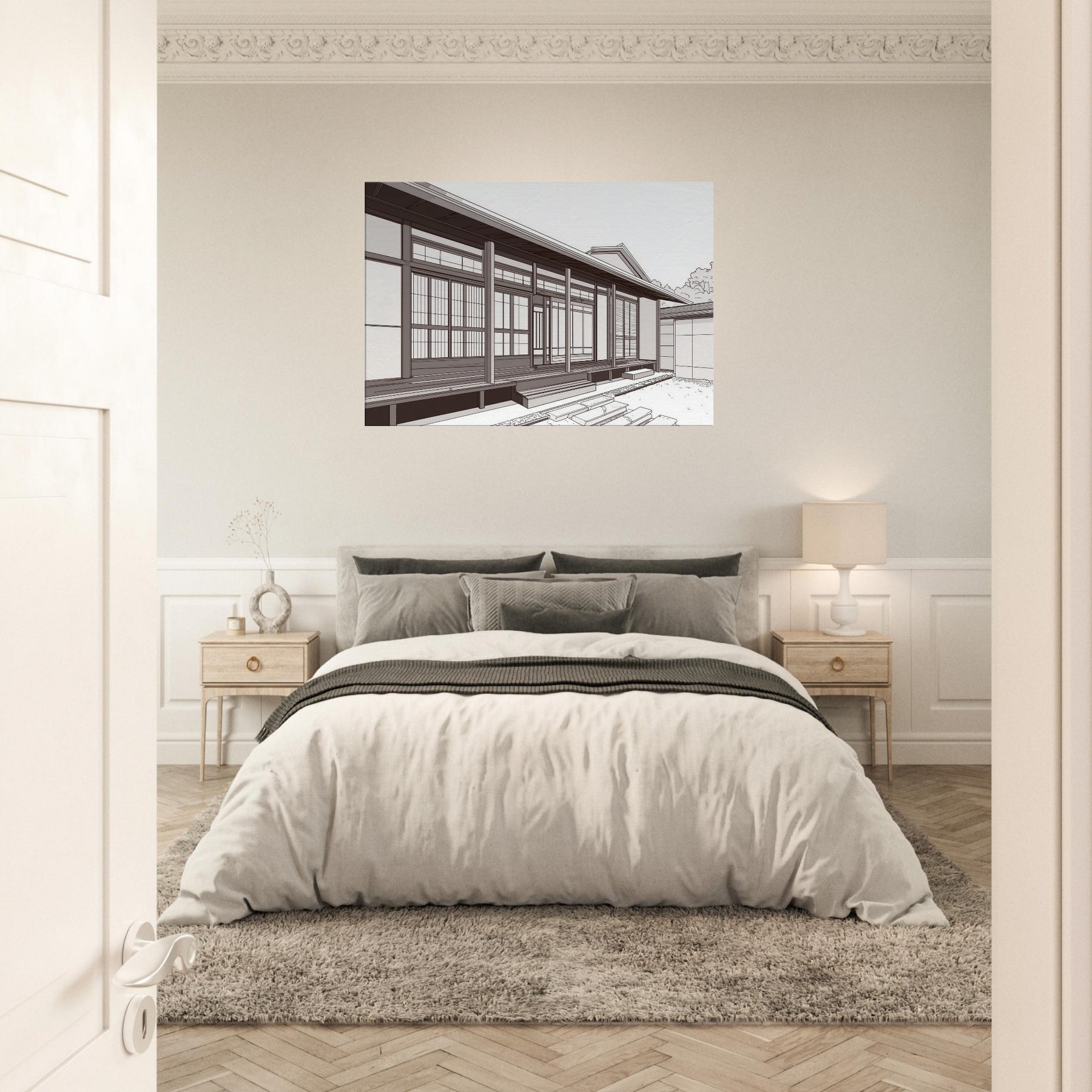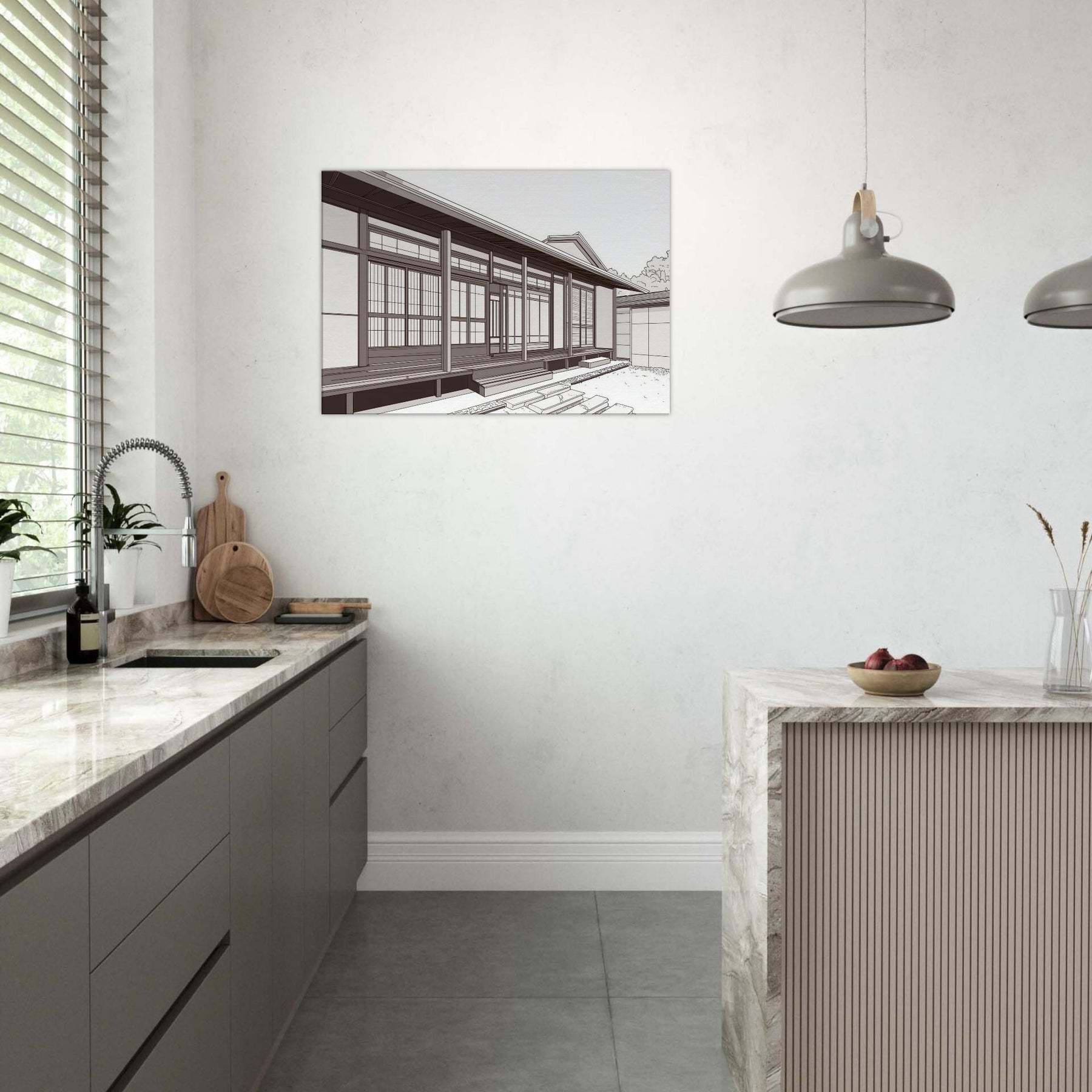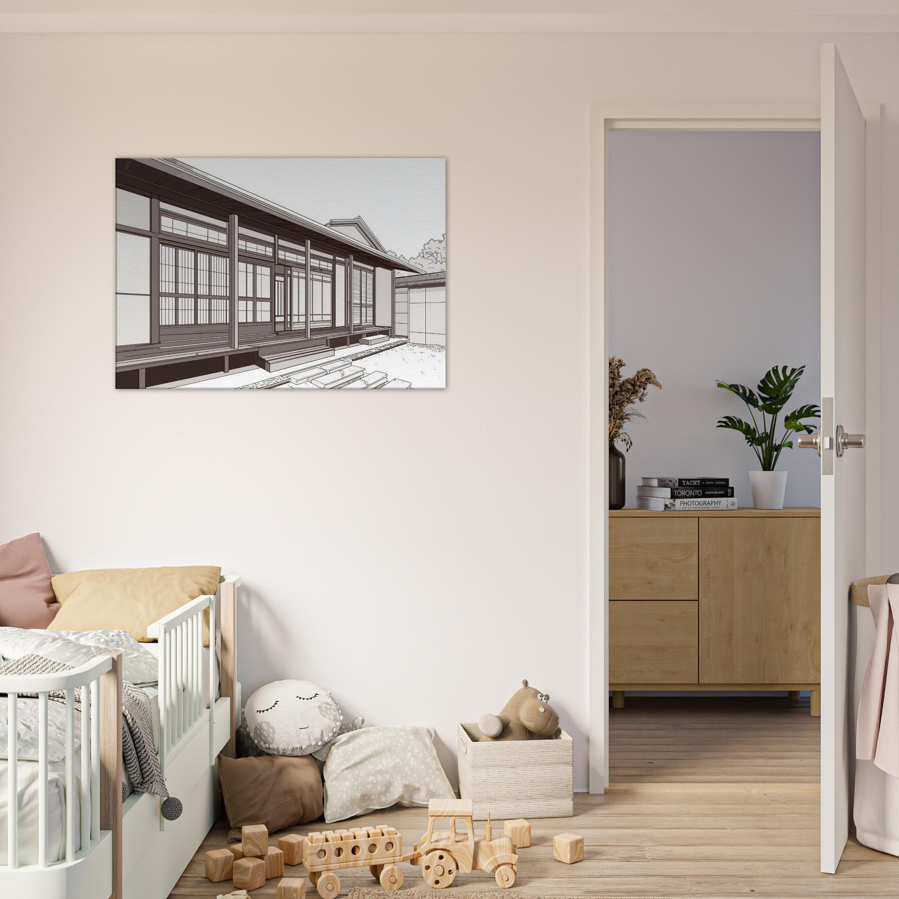 Step into the quiet rhythm of Japanese Houses, where each line traces a careful balance of space and light. This study in minimal form evokes a serene neighborhood: sliding doors, wooden beams, and the hush of a morning breeze. The composition invites calm contemplation, turning any wall into a window of tranquility. Hang it where your living space can breathe beside a sofa or entryway to conjure sunlit porches, soft shadows, and the quiet poetry of traditional design reimagined for today.