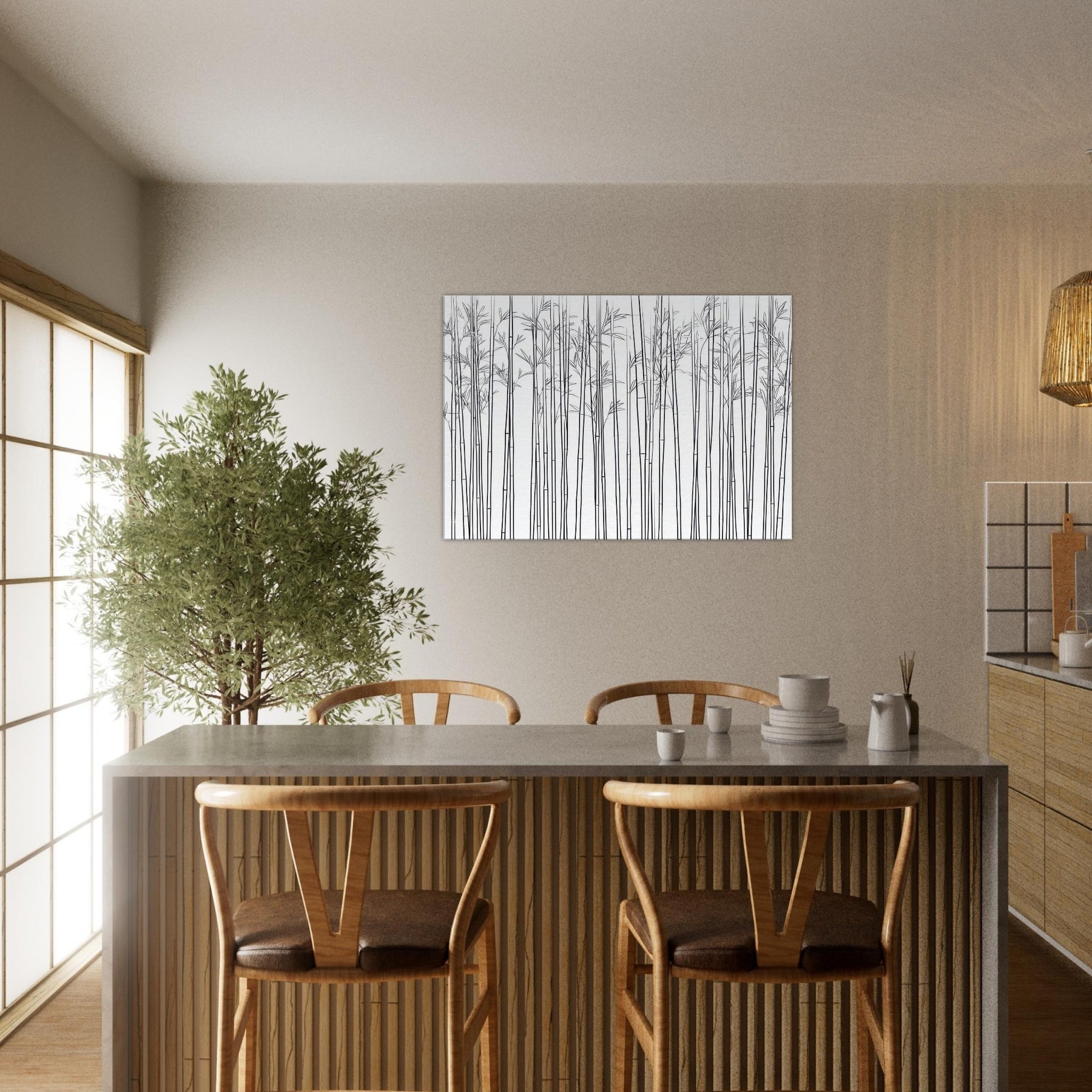 Immerse your space in the quiet grace of Bamboo Stalks, rendered in clean line art that breathes with subtle rhythm. The slender stalks rise like ink on a calm afternoon, their breathy leaves catching light and casting delicate shadows. This piece brings a tranquil, nature inspired touch to any room, inviting stillness into your living space. A sophisticated monochrome palette keeps the mood serene, while the linear precision adds a modern edge perfect for a lounge, hallway, or beside the bed as a daily breath of calm.
