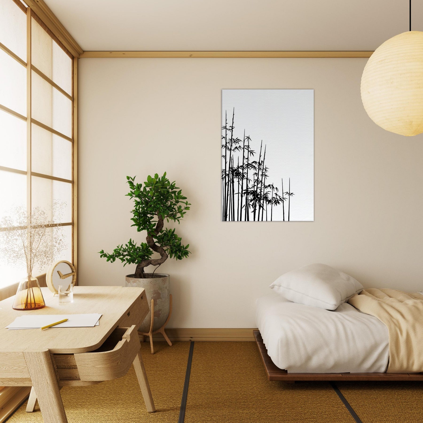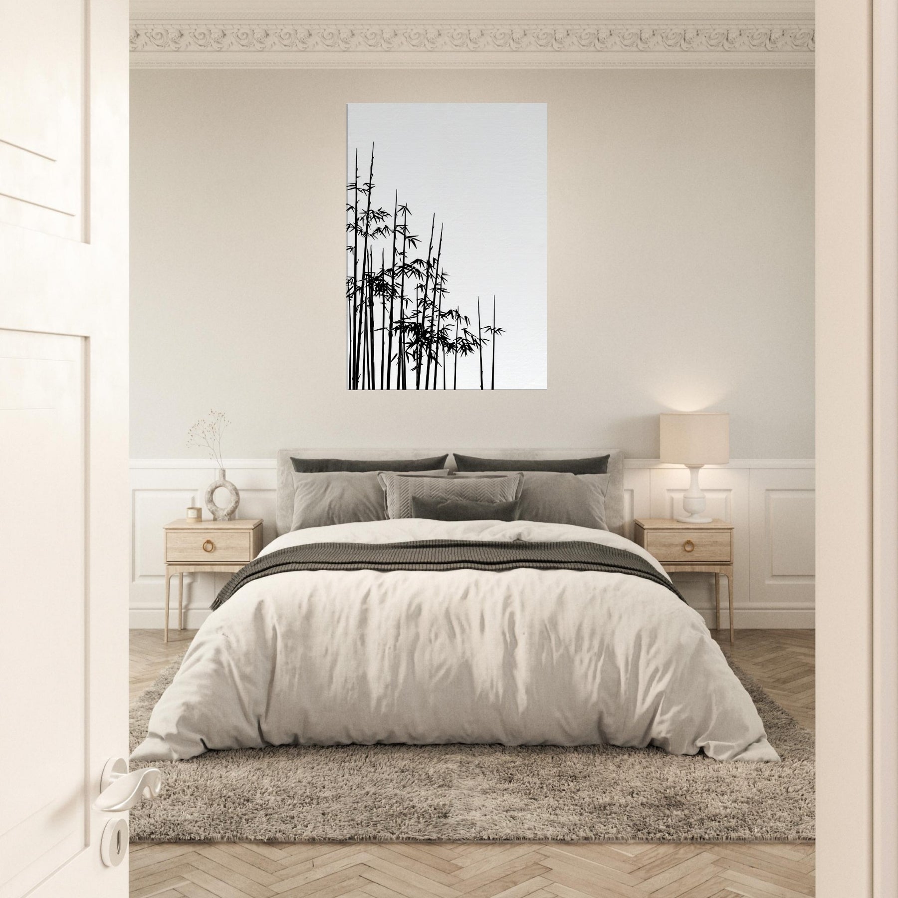 Bamboo stalks rise in elegant restraint, captured with single pen precision that feels both ancient and new. The stark line art against ample white space invites quiet reflection, turning any room into a breath of fresh, airy forest air. This piece pairs perfectly with clean textures and warm woods, lending a serene, nature forward mood to living rooms, bedrooms, or entryways. It whispers of calm, timeless balance, and a subtle invitation to pause and savor the moment.
