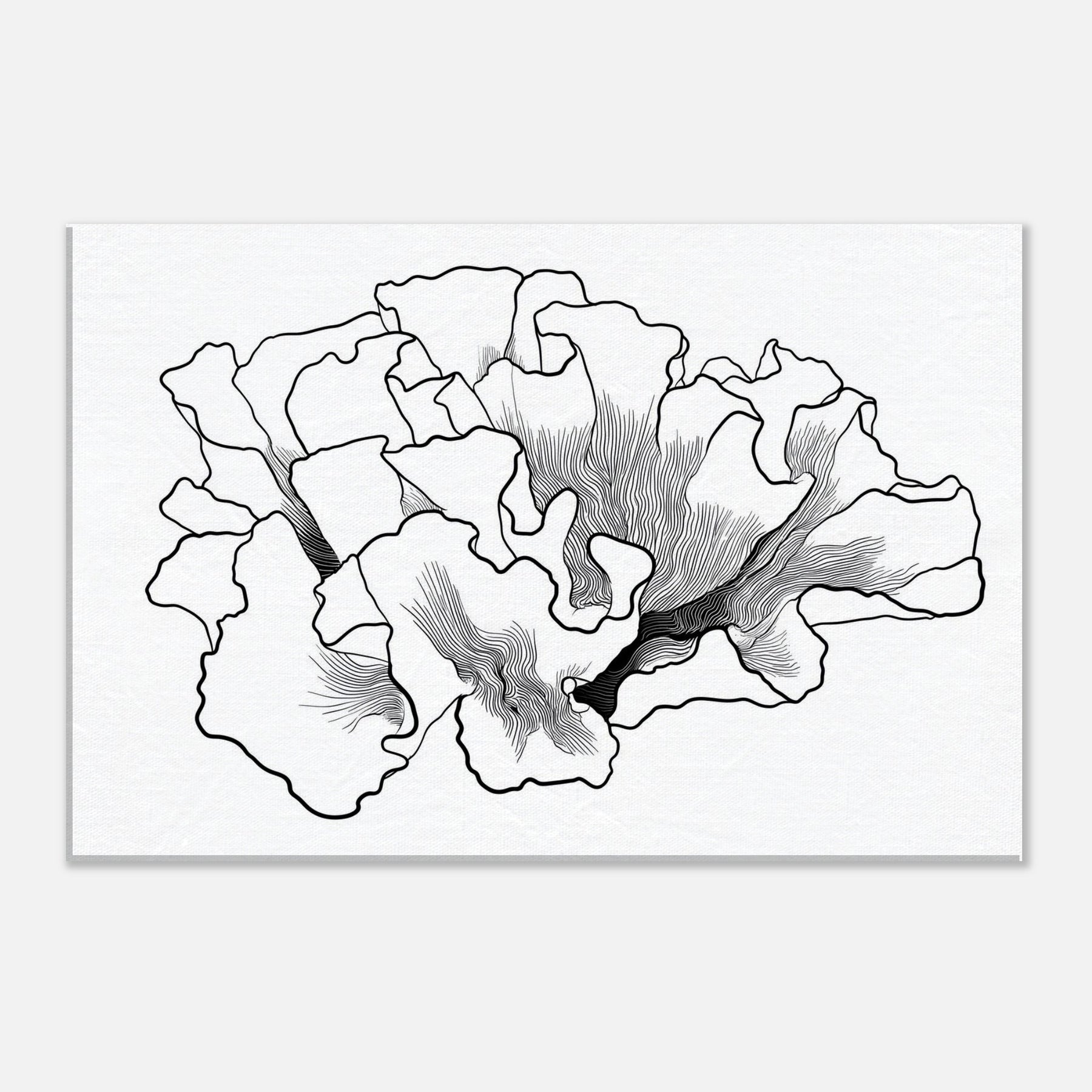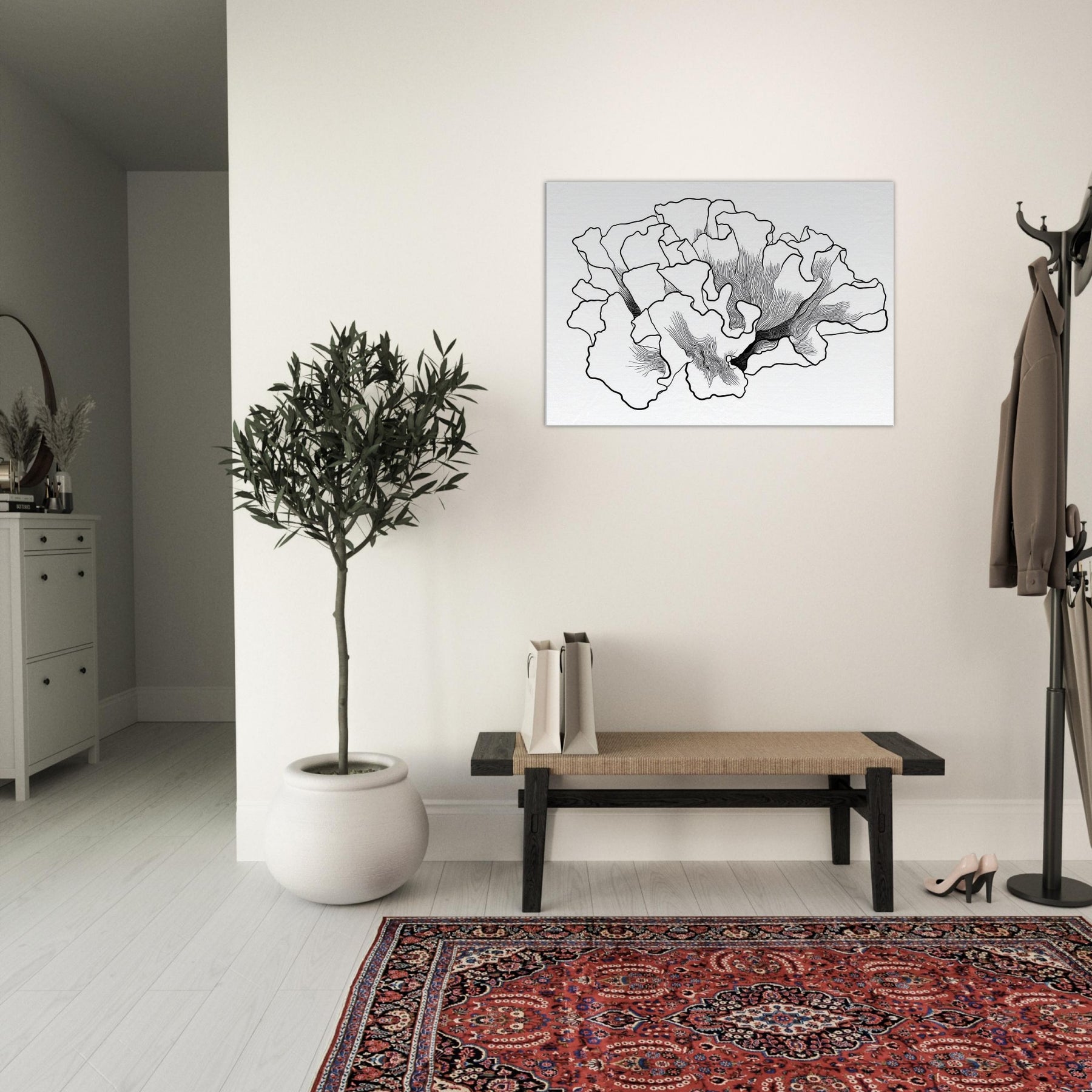 A delicate symphony of lines traces the coral’s organic silhouette, inviting calm into any room. This line art study renders underwater architecture with striking clarity: undulating margins, fine radiating threads, and subtle shadowing that suggests depth without crowding the wall. In a living space, it becomes a quiet focal point versatile against white walls, complementary to natural fibers and soft textures, or paired with a bold accent color. Here, Coral is rendered with restraint and grace, conveying resilience and serene beauty.