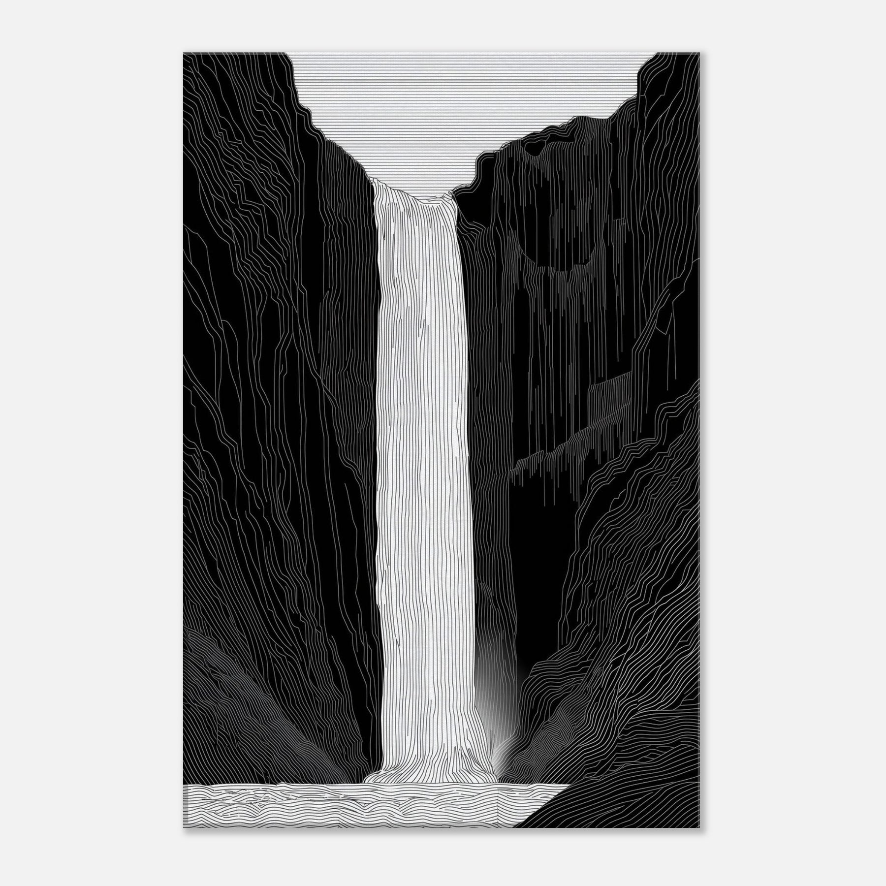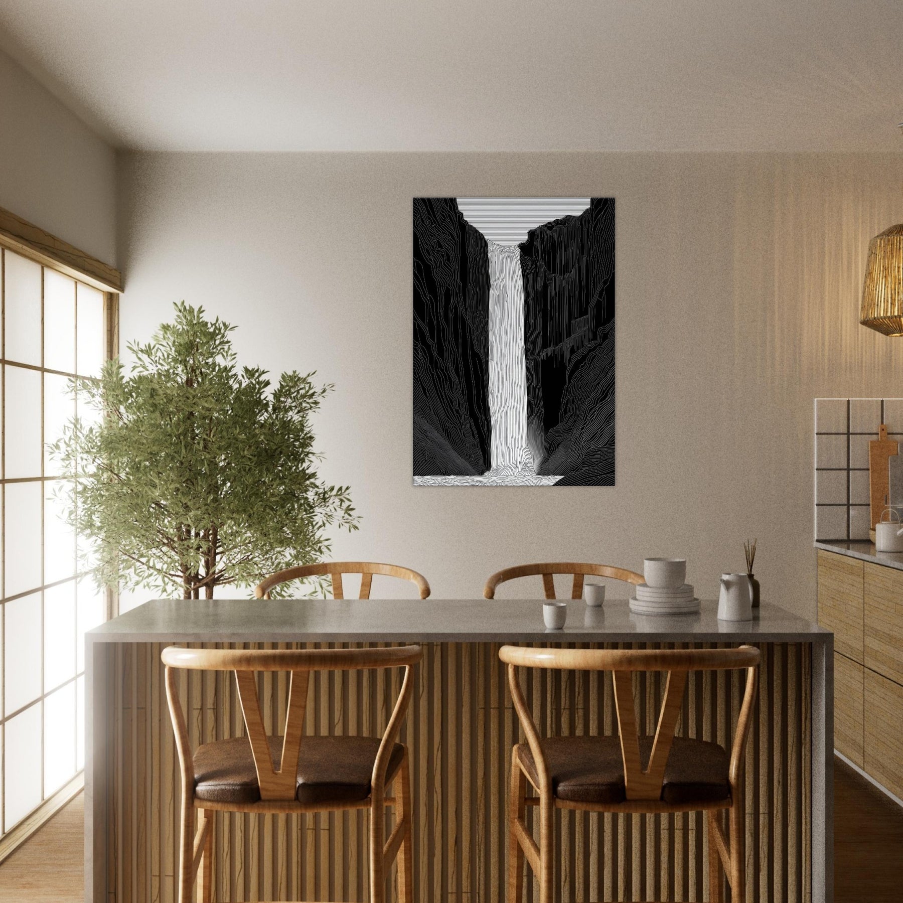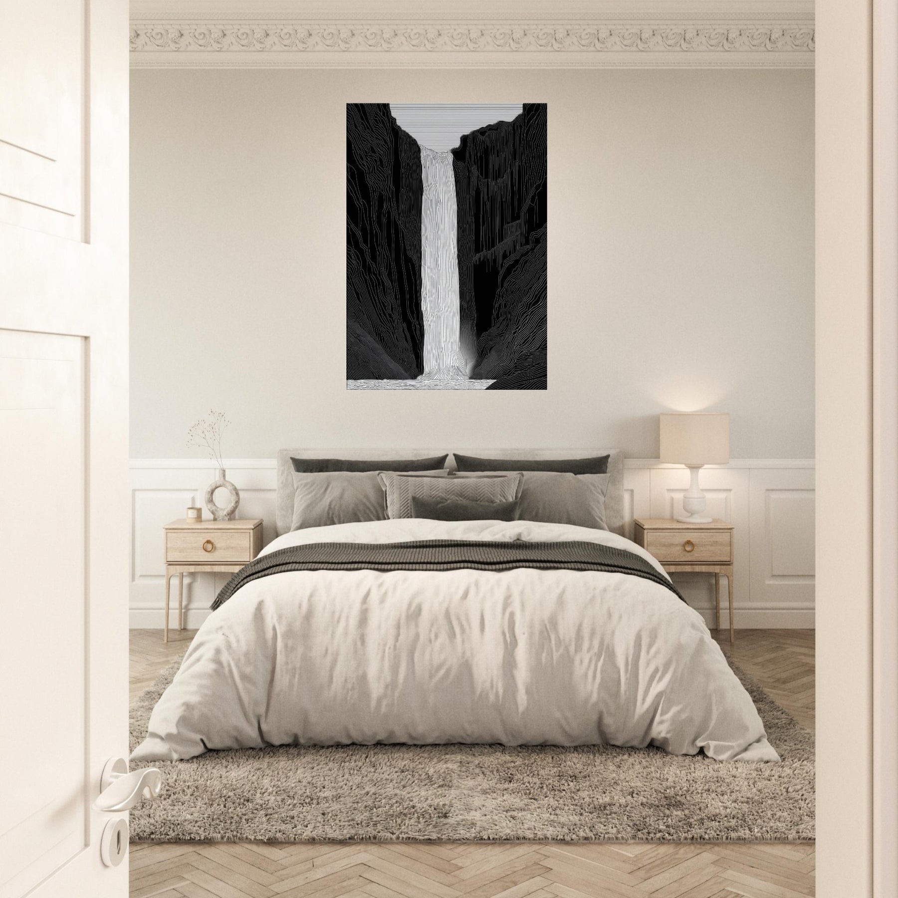 Waterfall unfolds in a quiet, lines and light drama, where the canyon's edges become a cradle for motion and hush. The Waterfall is rendered in clean, continuous strokes that evoke breeze and spray without color, inviting calm and focus. This line art study carries the pulse of nature into interior moments, turning walls into a window of cool air and soft shadows. Ideal for living rooms and bedrooms, it pairs with minimalist furnishings and natural textures to create a refined, contemplative atmosphere.