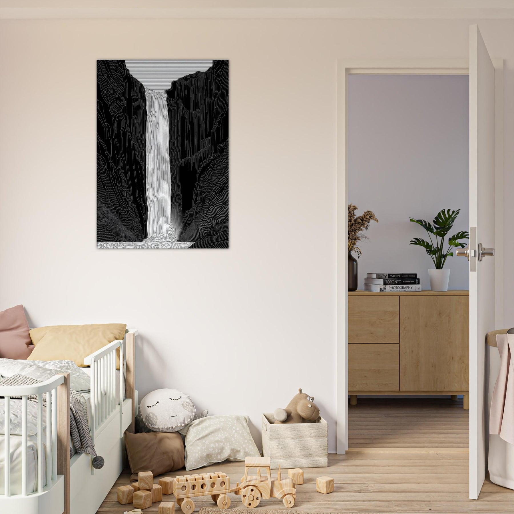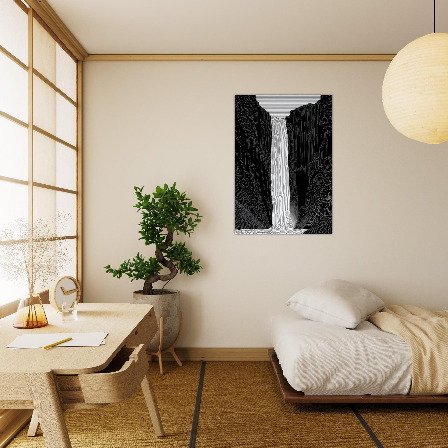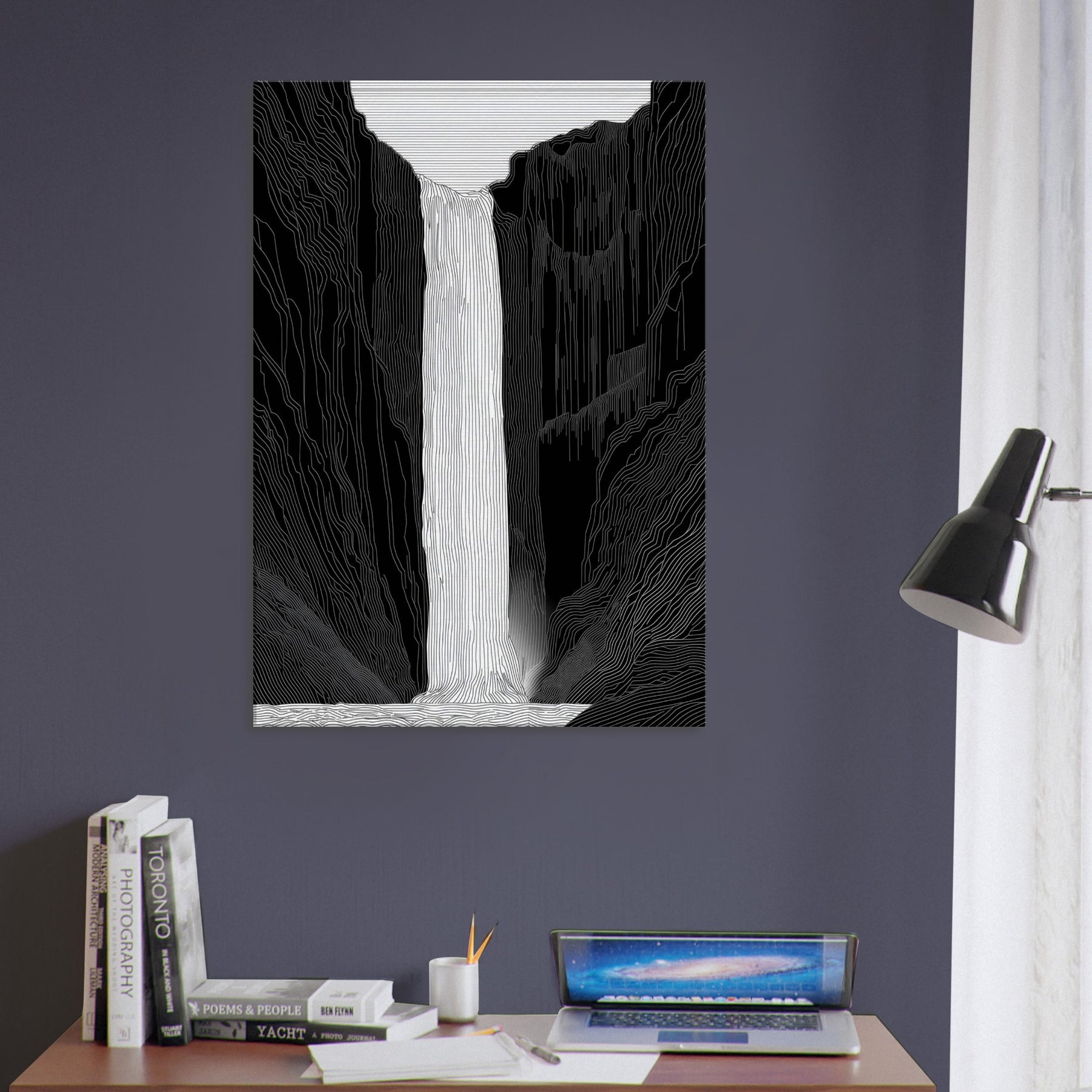 Waterfall unfolds in a quiet, lines and light drama, where the canyon's edges become a cradle for motion and hush. The Waterfall is rendered in clean, continuous strokes that evoke breeze and spray without color, inviting calm and focus. This line art study carries the pulse of nature into interior moments, turning walls into a window of cool air and soft shadows. Ideal for living rooms and bedrooms, it pairs with minimalist furnishings and natural textures to create a refined, contemplative atmosphere.