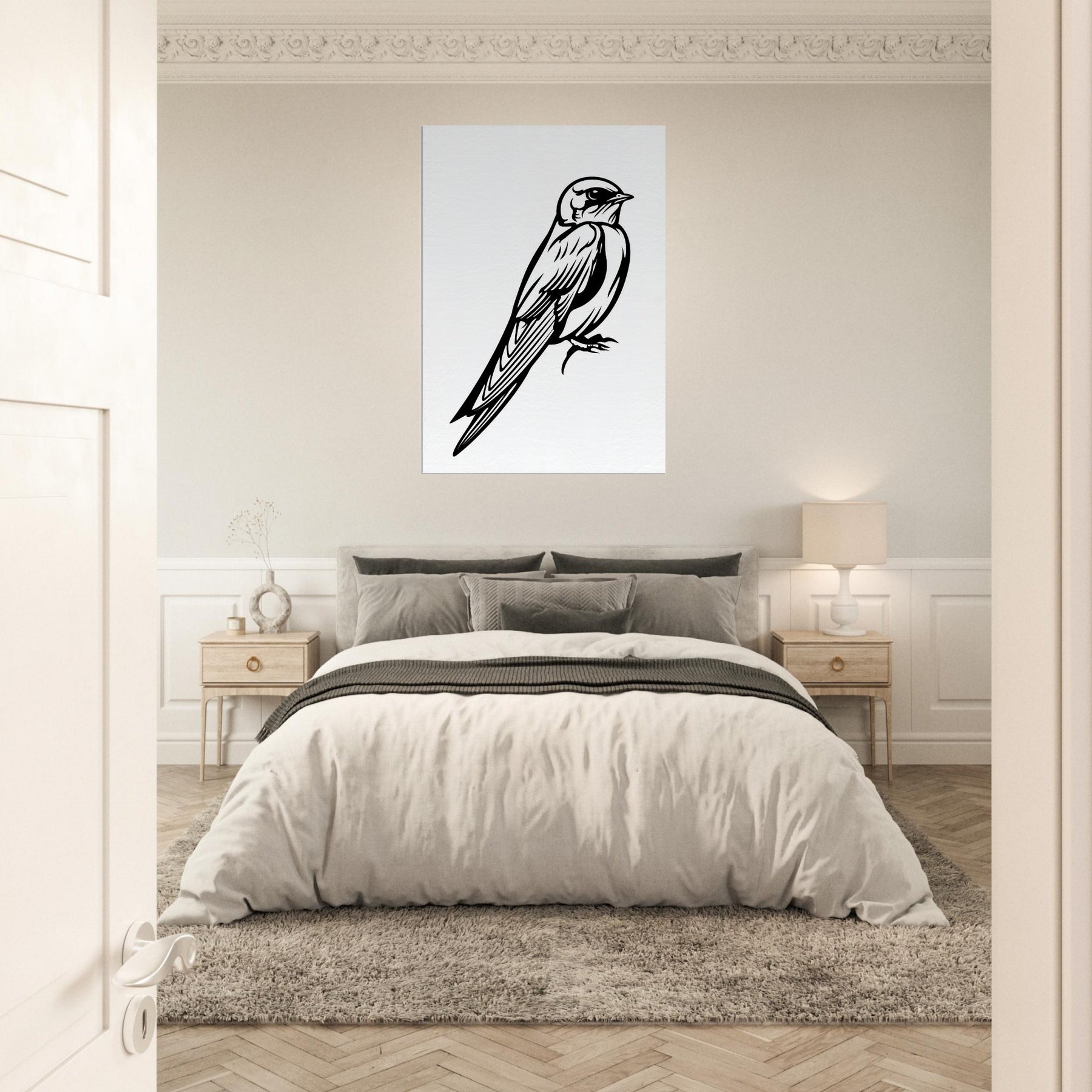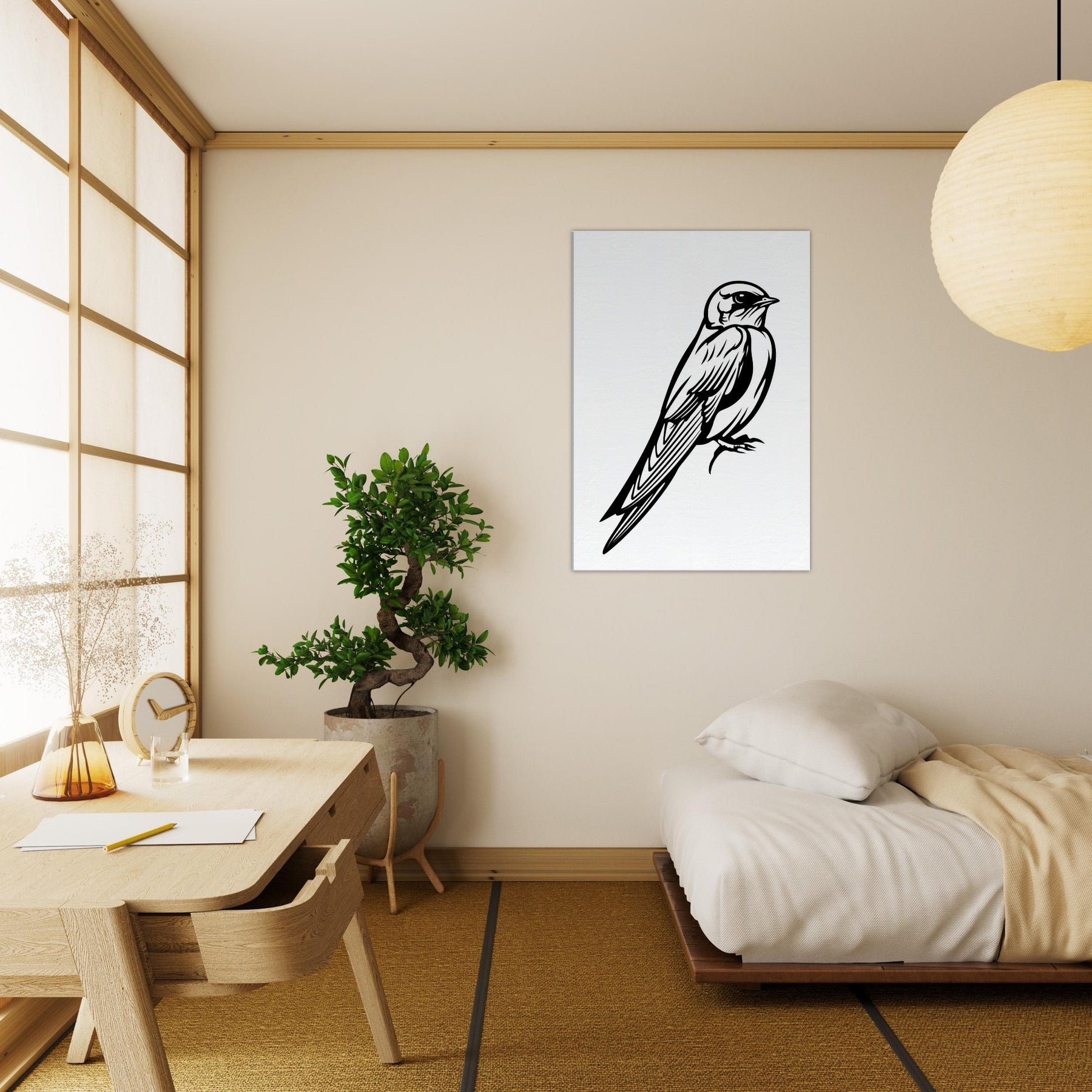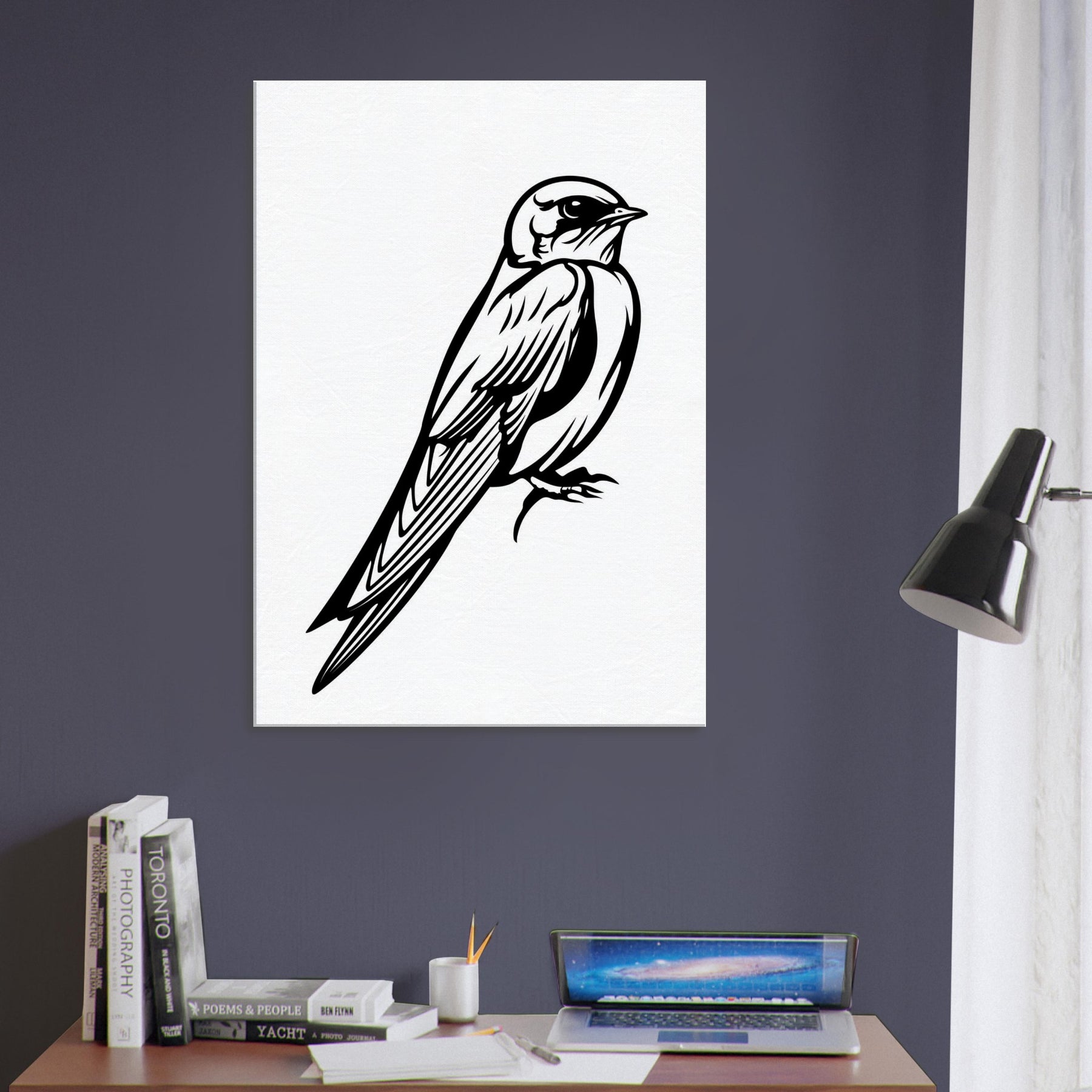 Like a sigh of wind captured in a single stroke, this Swallow line art invites a breath of freedom into your room. The clean black lines carve light and motion, turning a fleeting moment into a focal point that feels both poised and intimate. Perfect above a sofa or in a hallway, it adds quiet sophistication and a sense of upward, hopeful energy a reminder that grace can be found in simplicity.