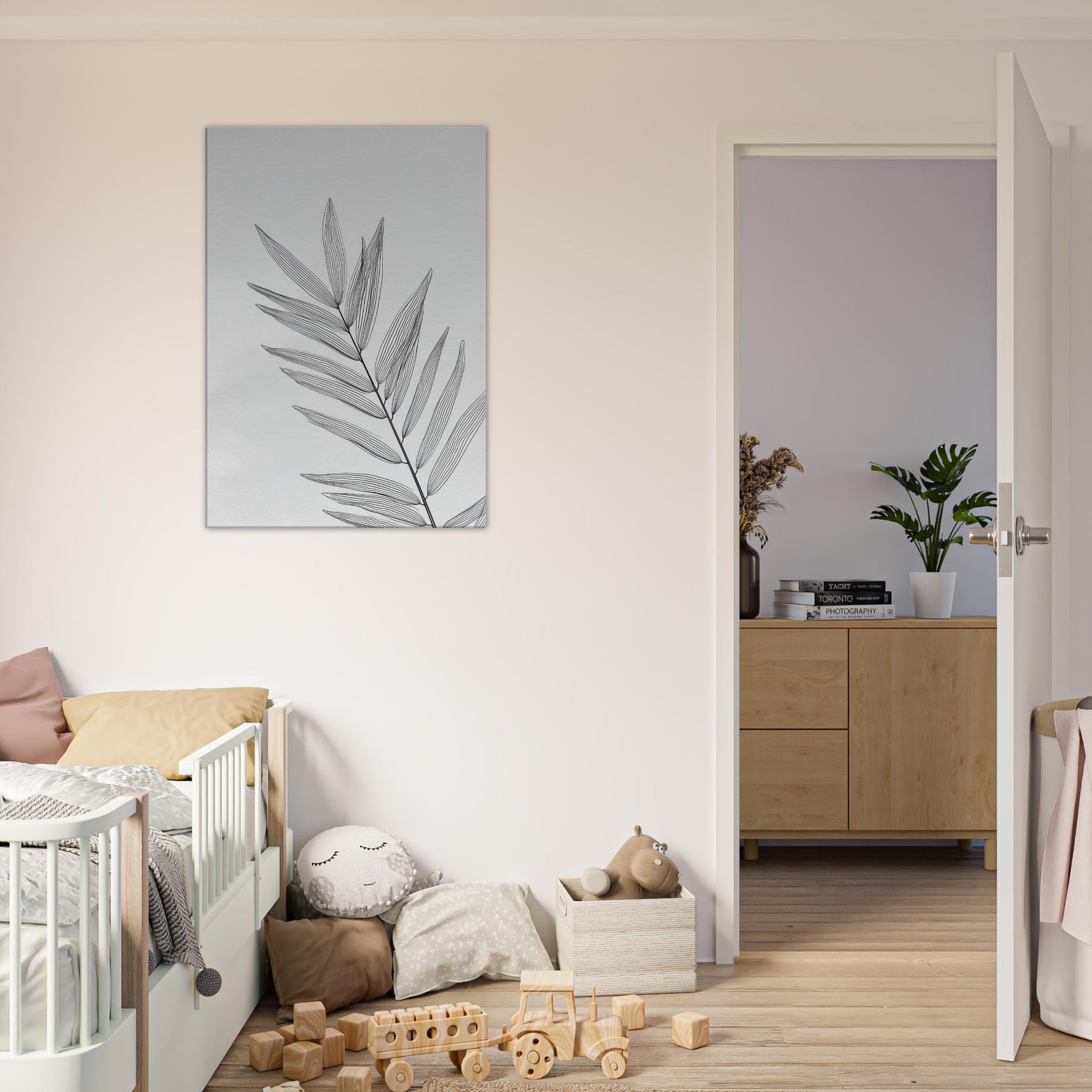 Palm Leaves take center stage in this elegant line art study, a study in restraint that whispers rather than shouts. The slender fronds trace a quiet arc across a pale canvas, inviting the eye to wander and the mind to breathe. This atmospheric piece brings natural calm to any living space, turning walls into a lightweight breeze of tropical simplicity. Ideal for bedrooms, lounges, or studios seeking refined, botanical presence without visual noise.