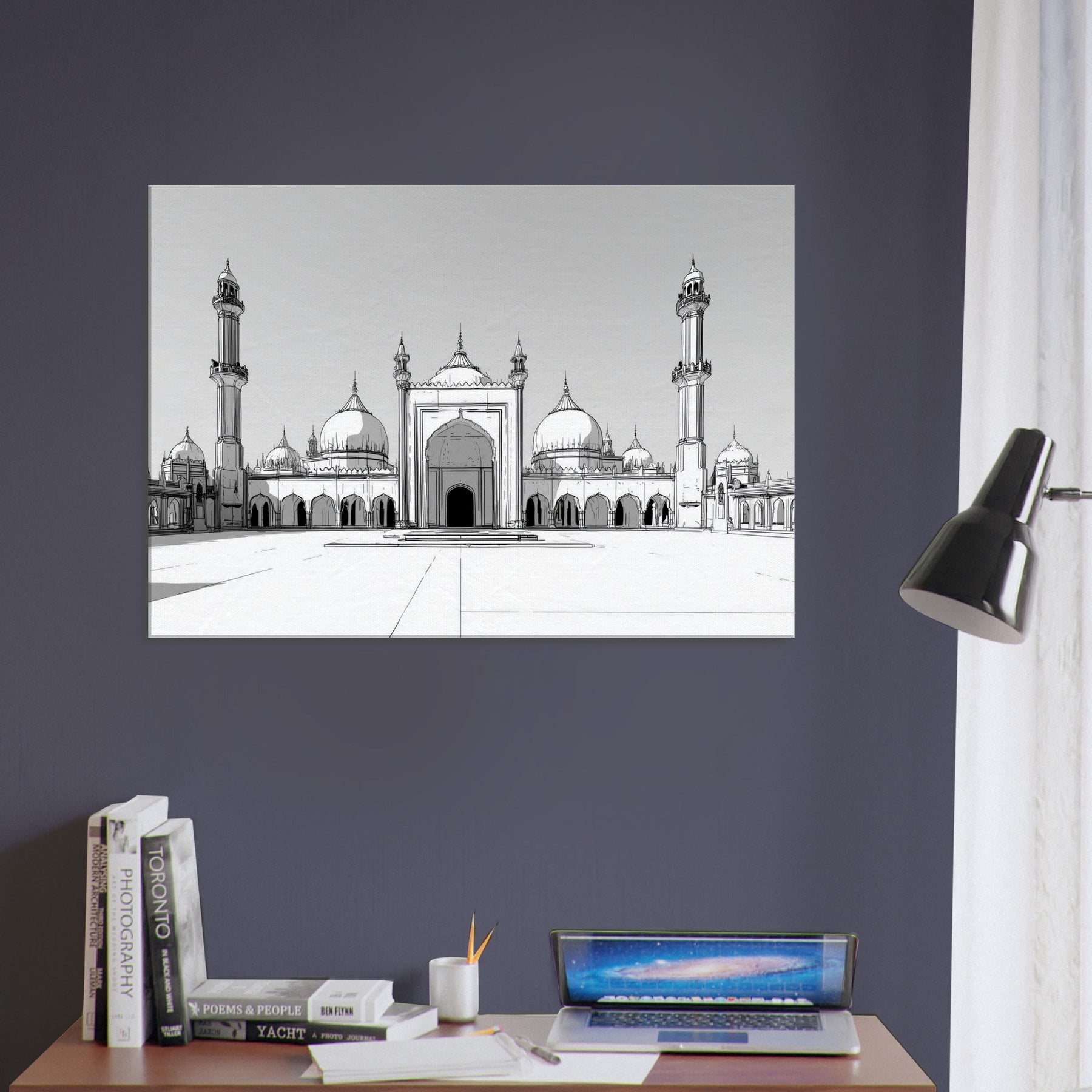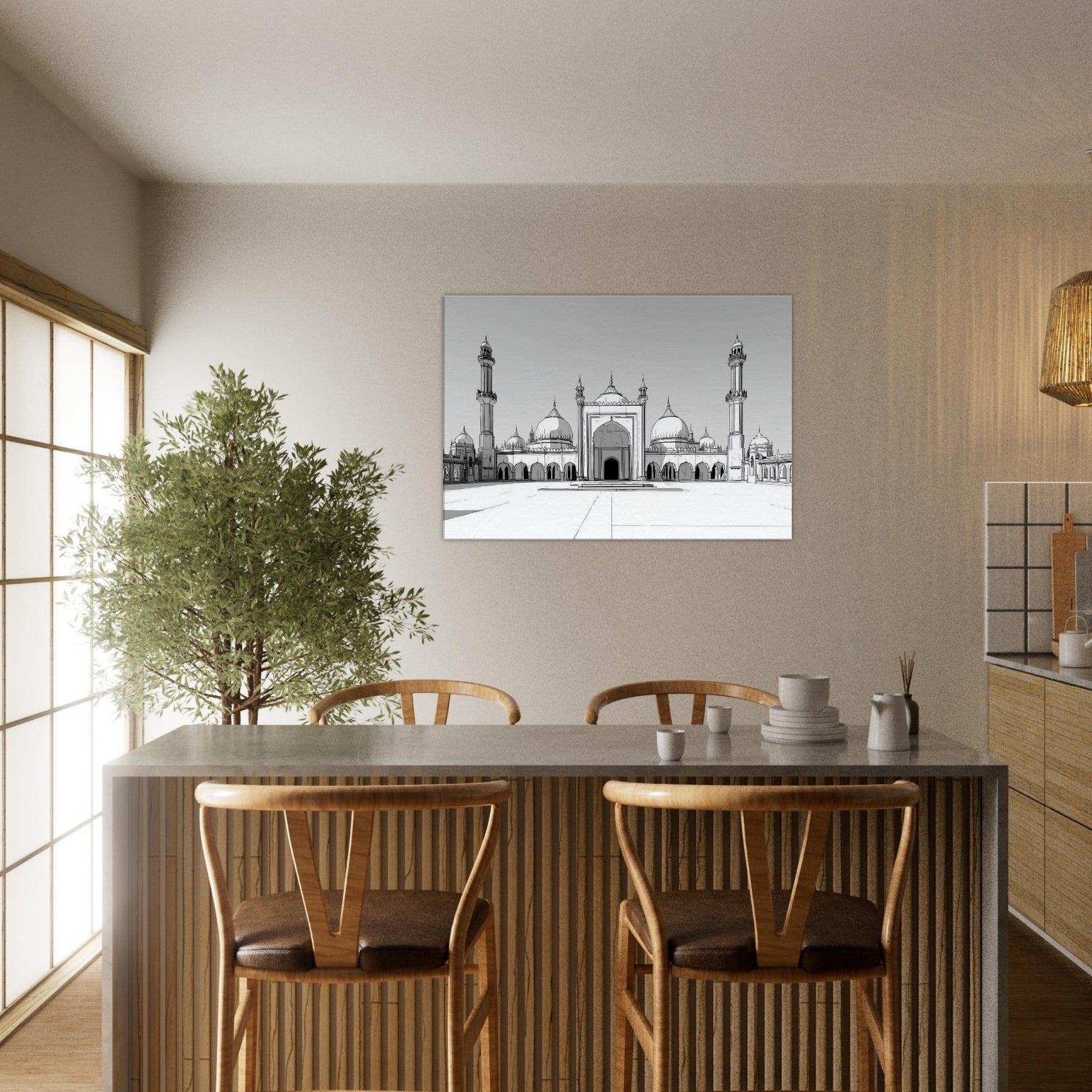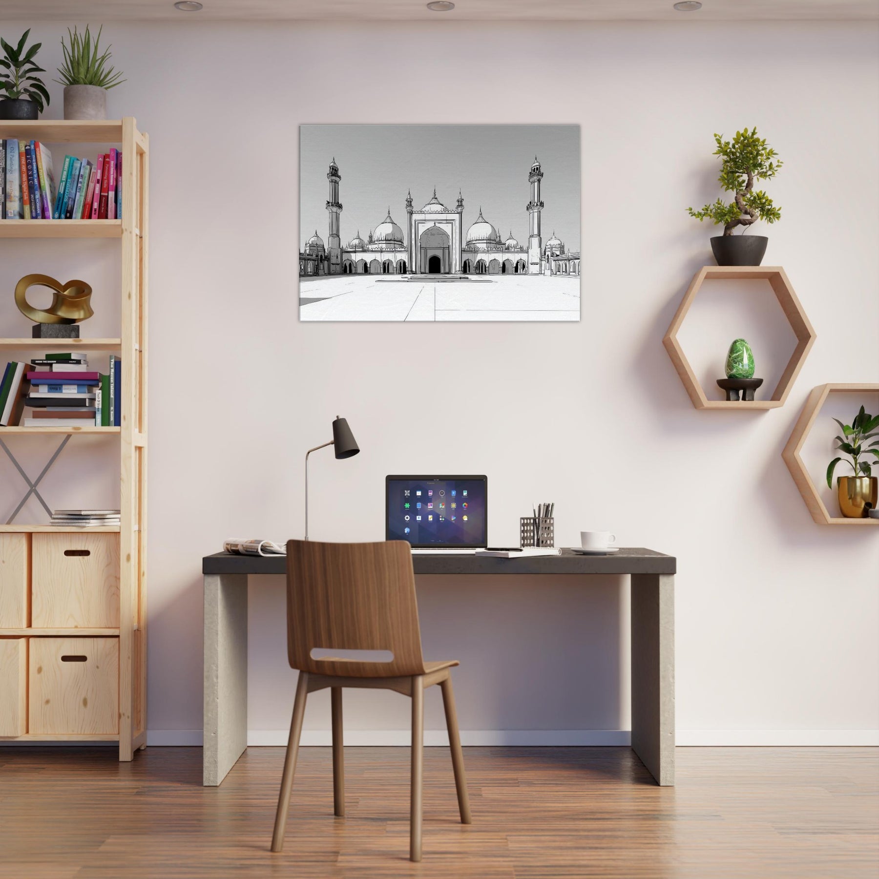 Immerse your space in quiet grandeur with this Mosque as the focal point of a refined line art composition. The clean, uninterrupted strokes evoke moonlit domes and soaring minarets, while generous negative space invites calm reflection. This piece feels both architectural monument and intimate sketch, shaping a living room or study with a sense of arrival, balance, and spaciousness. Hang it where conversation slows and evenings soften the Mosque breathes solemn beauty into everyday moments.
