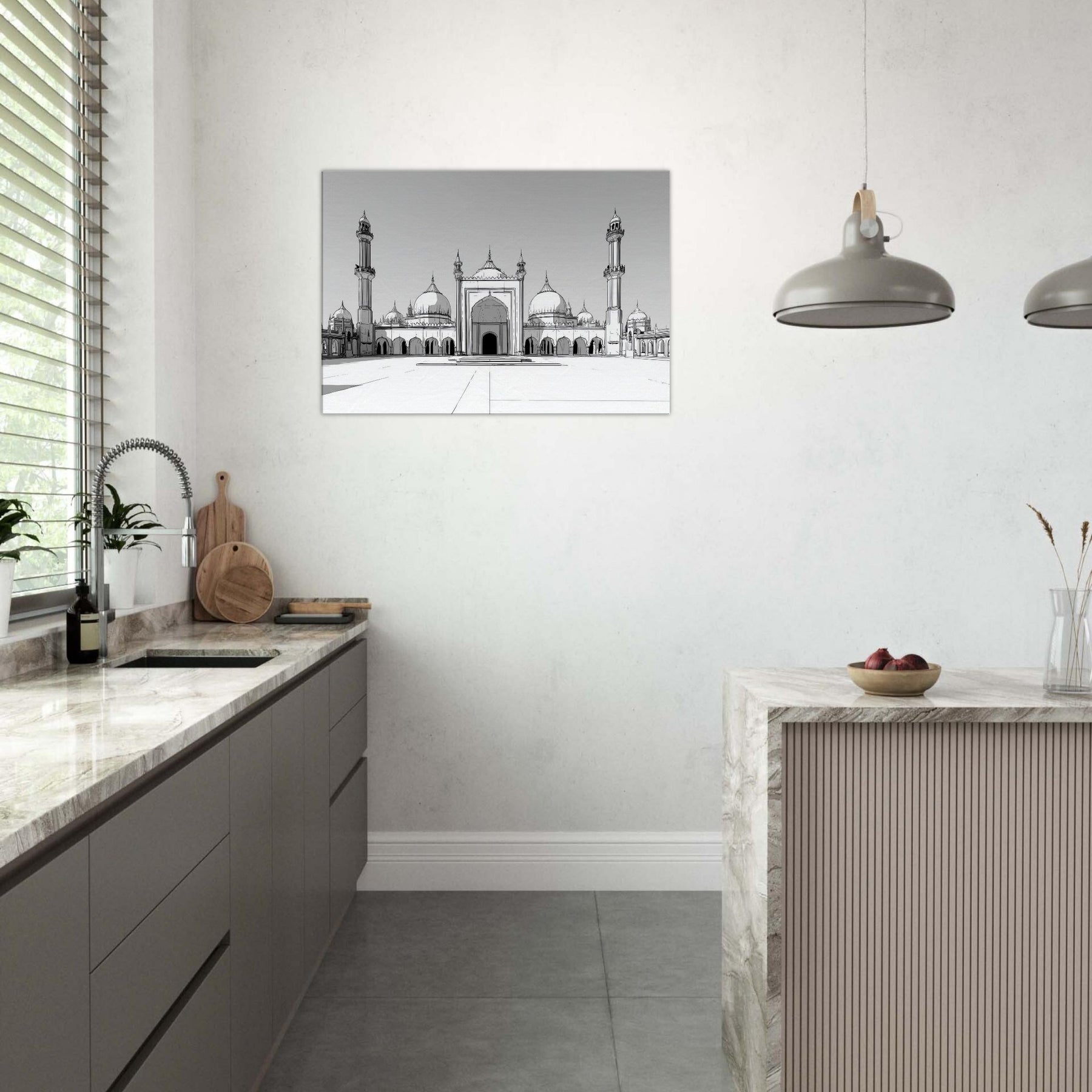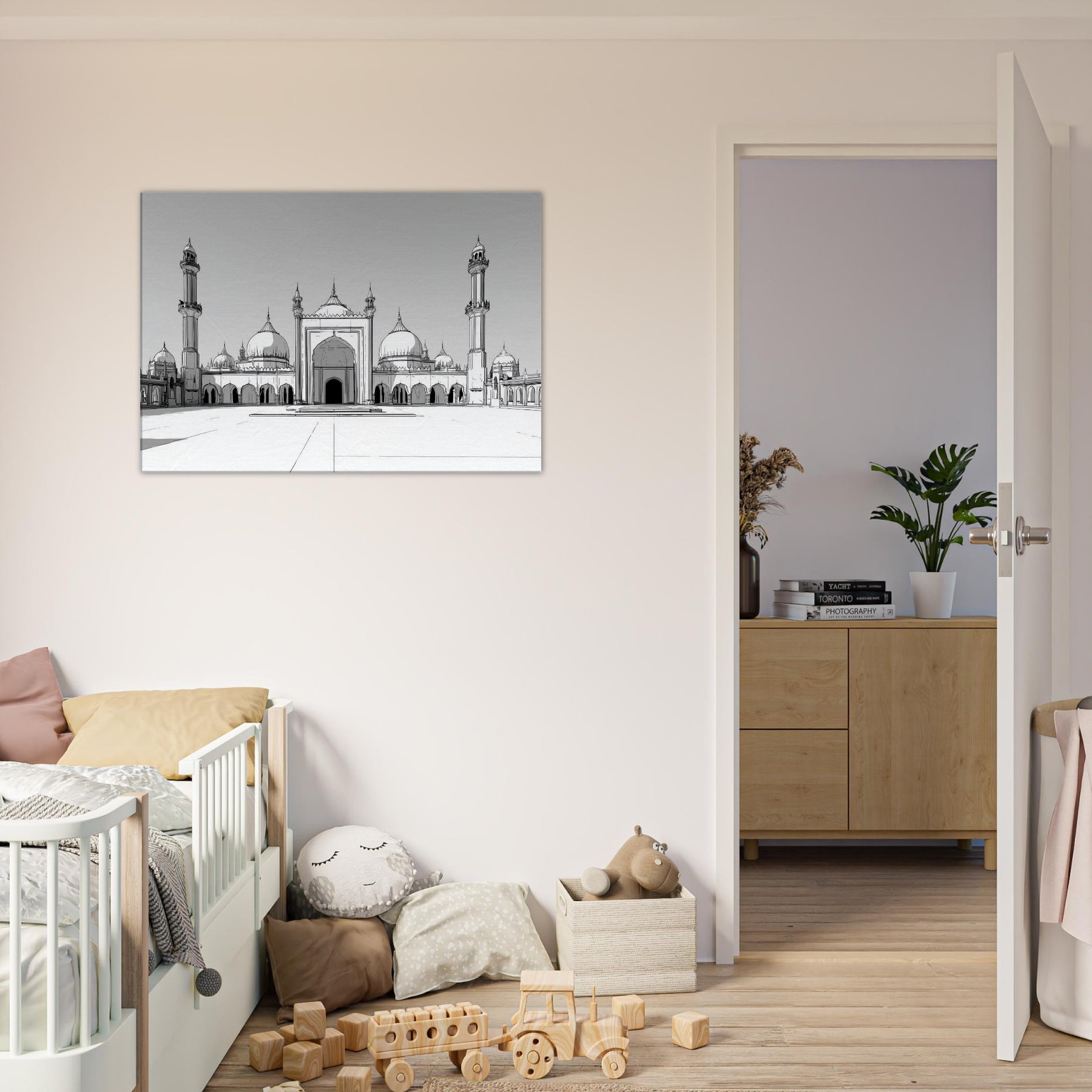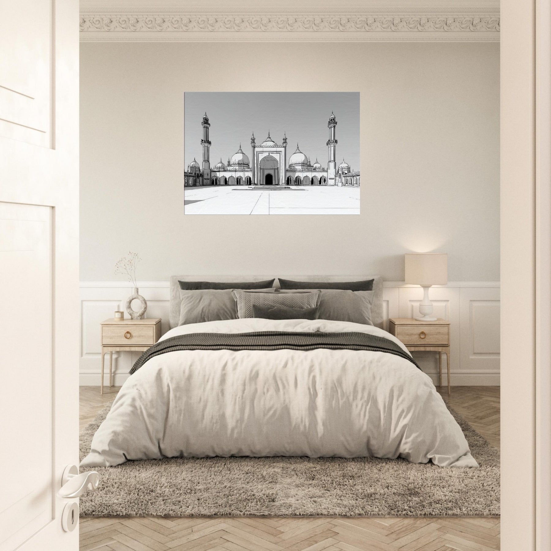 Immerse your space in quiet grandeur with this Mosque as the focal point of a refined line art composition. The clean, uninterrupted strokes evoke moonlit domes and soaring minarets, while generous negative space invites calm reflection. This piece feels both architectural monument and intimate sketch, shaping a living room or study with a sense of arrival, balance, and spaciousness. Hang it where conversation slows and evenings soften the Mosque breathes solemn beauty into everyday moments.