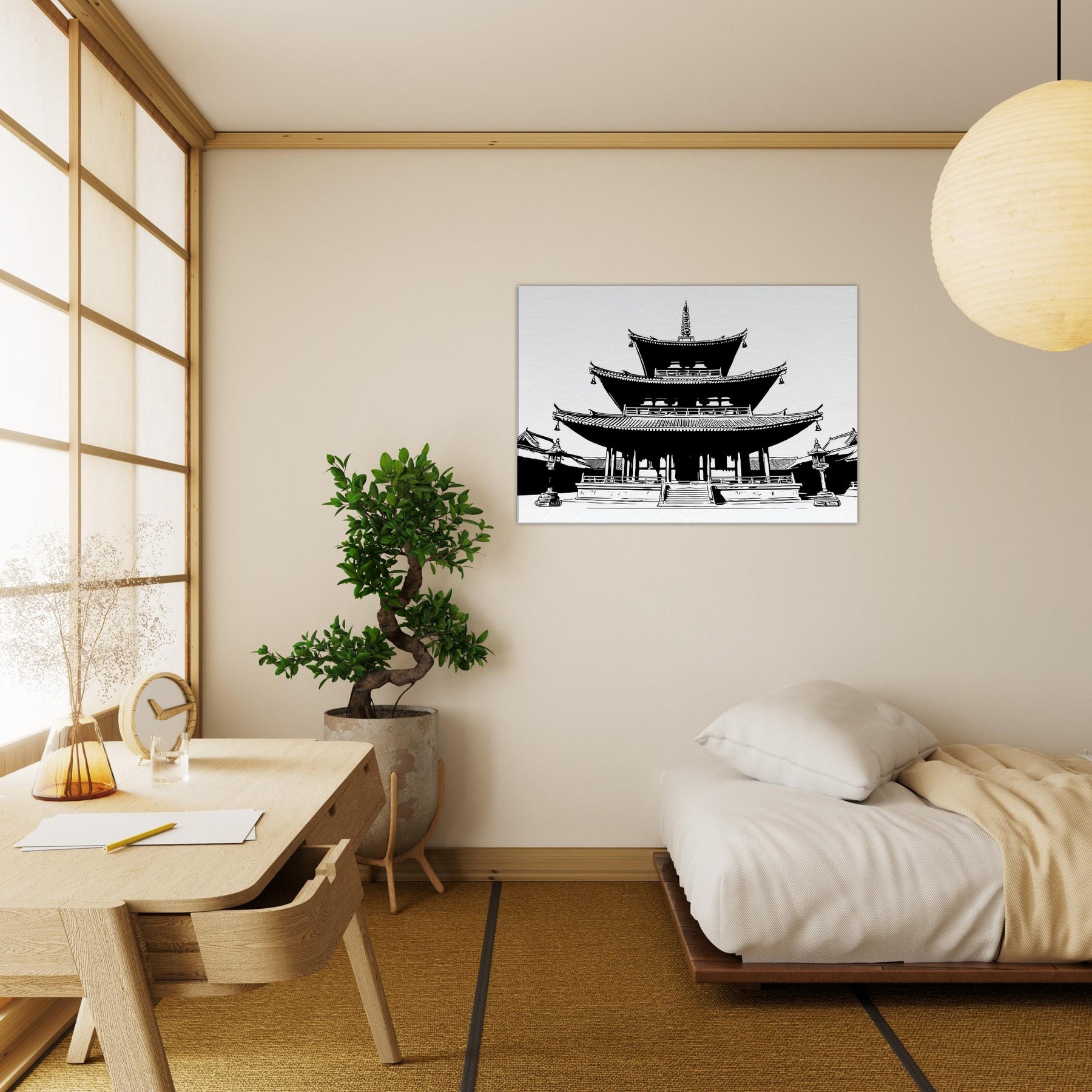 Like a quiet echo of ancient courtyards, the Pagoda rises in clean line work, each tier a measured exhale of ink and shadow. This line art study captures movement in stillness, turning architecture into a delicate ballet of light and form. Hung in a living room or study, it casts a sculptural focal point monochrome presence that invites calm, balance, and daytime contemplation, while at night its bold contrasts deepen the room’s atmosphere. A timeless companion for modern interiors craving cultural resonance.