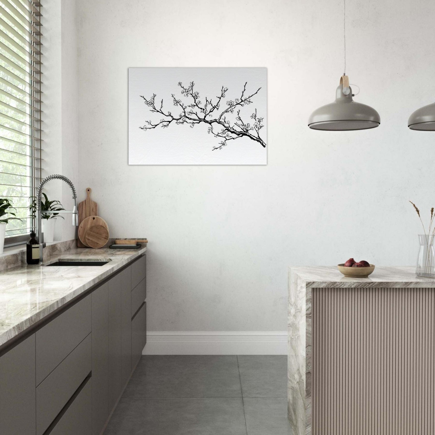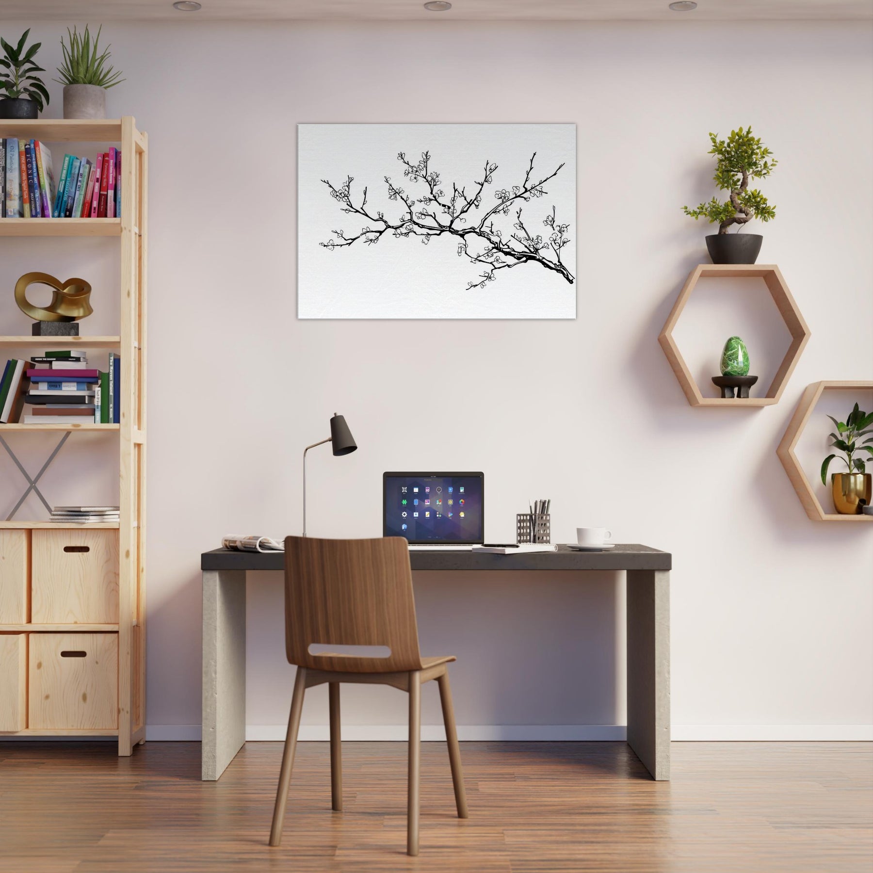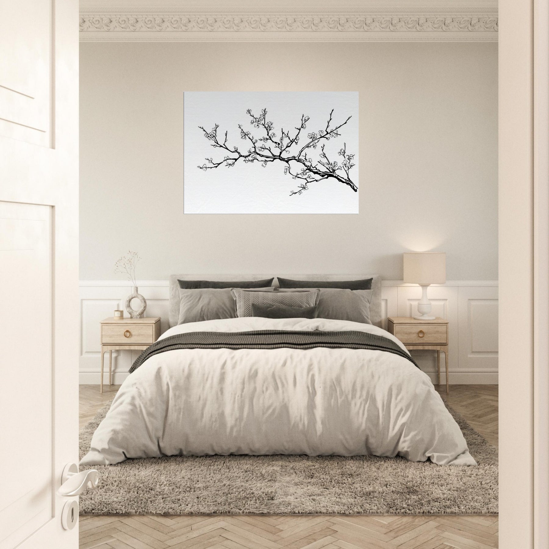 Let the Sakura Branch drift across your wall and breathe quiet poetry into the room. This delicate line art captures the gentleness of blossoms in motion, where every stroke suggests breeze and distance. The stark black lines against white space create a tranquil rhythm, inviting slow mornings and reflective evenings. As a living room or bedroom centerpiece, it elevates the atmosphere with understated elegance nature’s cadence rendered in refined simplicity, a subtle reminder to pause and savor beauty in the everyday.