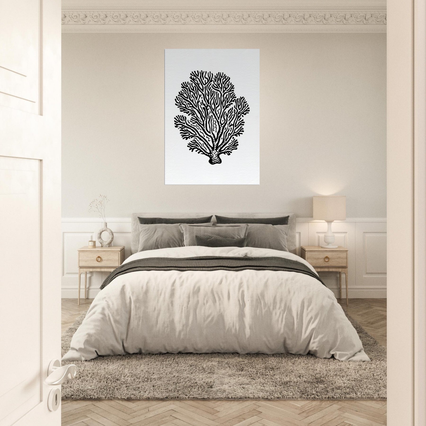 Whispers of Coral floats from the page as a bold, single color line drawing that captures the organic drama of reef life. This coral, rendered in clean, continuous ink, brings a breath of sea air into any room, turning walls into a quiet horizon where light and shadow mingle. The piece invites slow, contemplative moments and pairs effortlessly with neutral palettes or sun washed accents, enriching living spaces with texture, rhythm, and a subtle coastal mood.