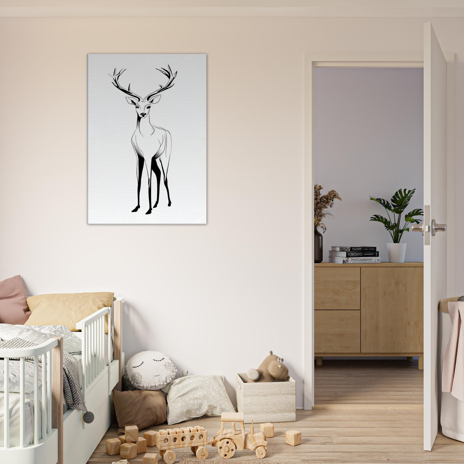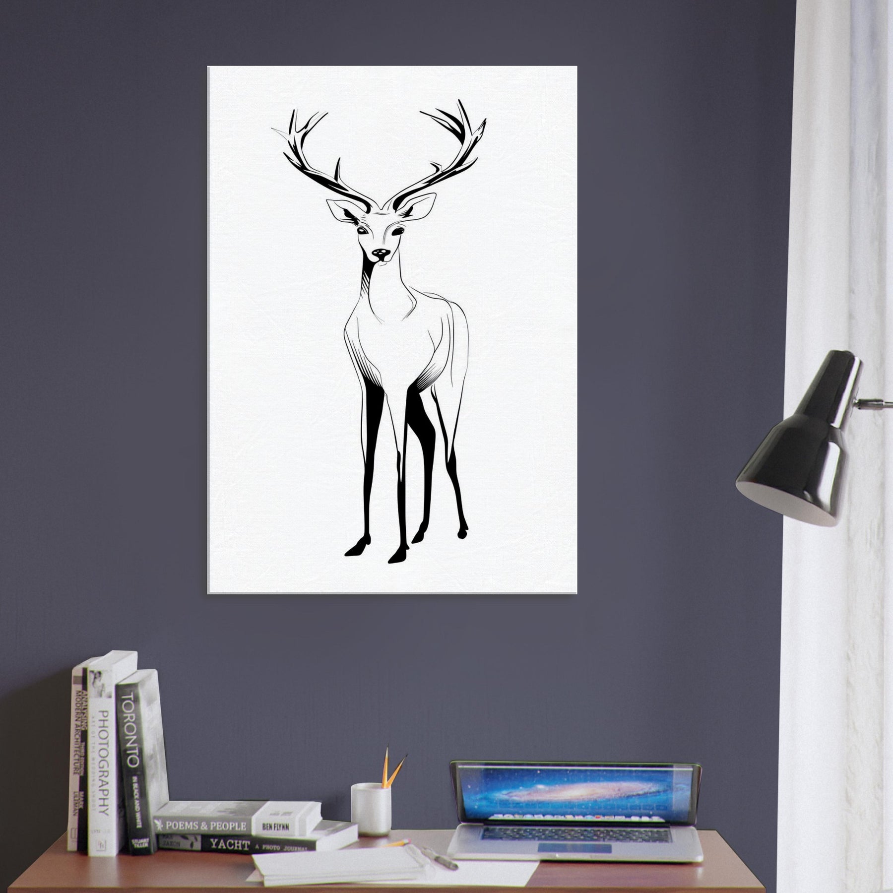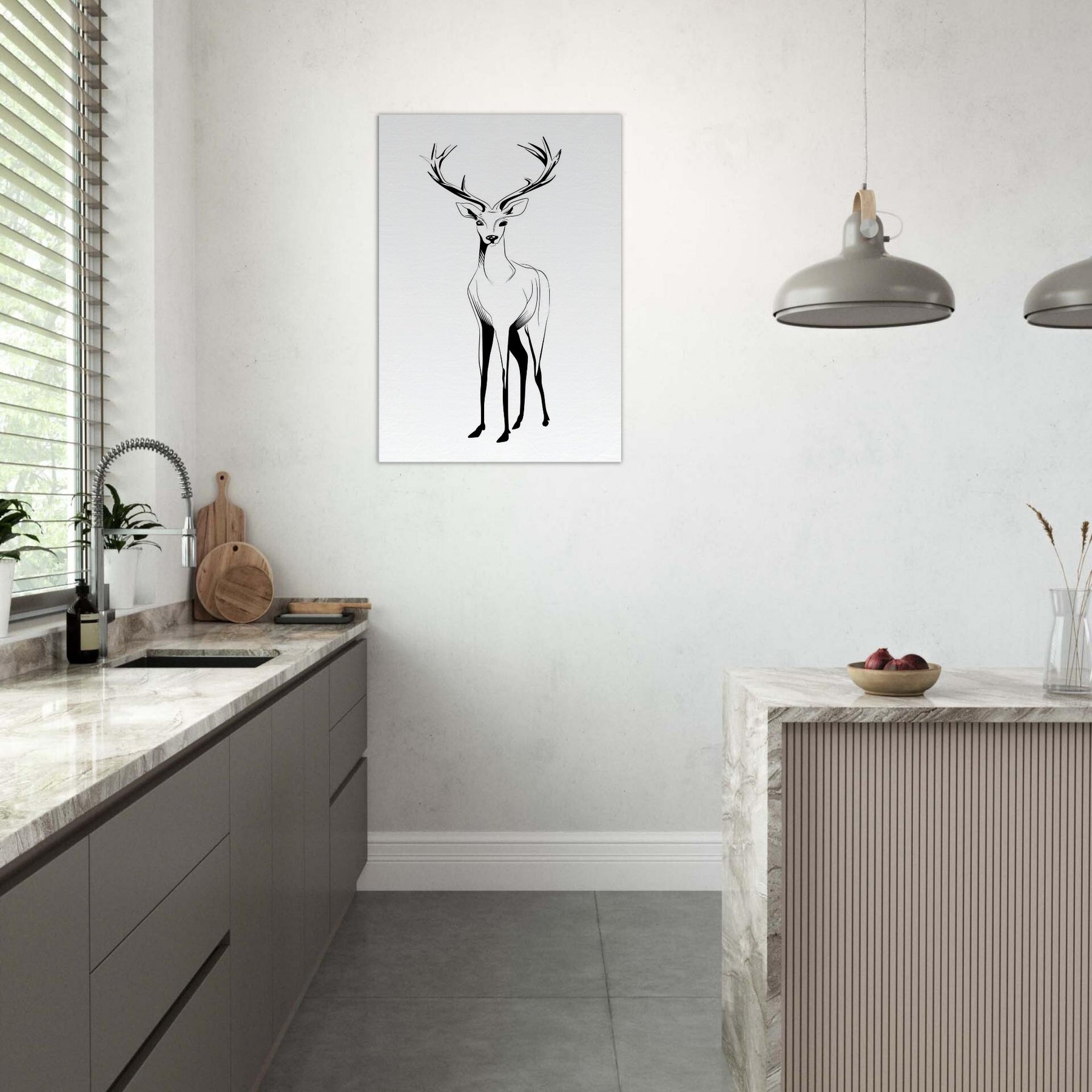 An elegant deer steps into your space with a quiet, confident presence. Rendered in clean, flowing lines, this line art captures movement and grace in a single, timeless stroke. The stark black on white palette invites reflection, turning a wall into a serene refuge. Hang it in a living room or hallway to evoke woodland calm, sunlit mornings, and the hush between moments. The deer becomes both motif and mood an invitation to slow down and breathe.
