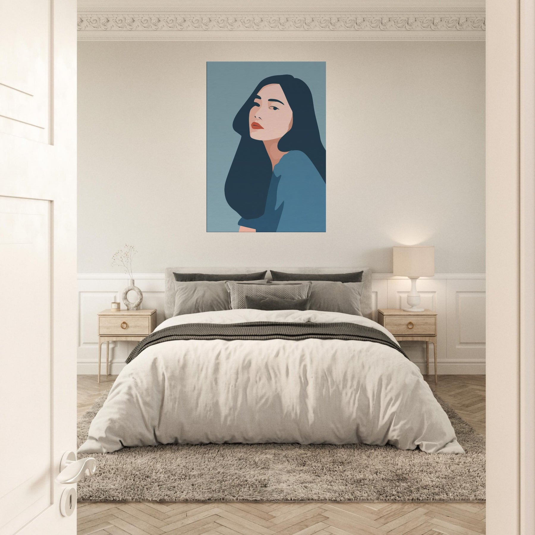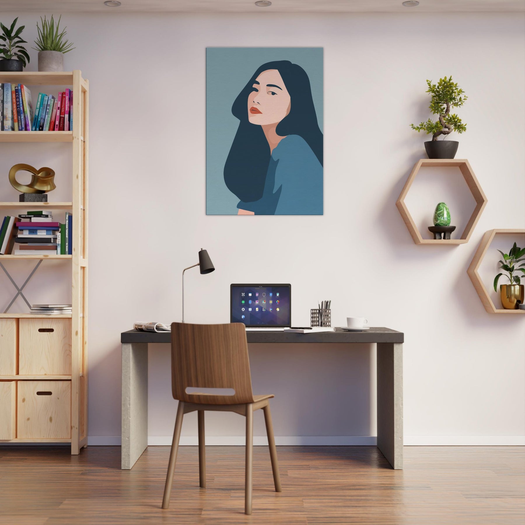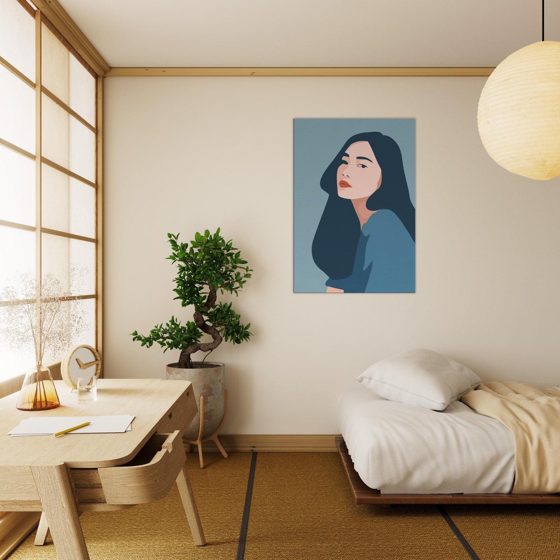 Immerse your space in quiet confidence with this minimalist , where the Primary Subject a poised Asian Woman draws the eye with clean lines and charcoal dark hair contrasting a soft, sun warmed skin tone. The restrained palette and airy negative space invite calm, like a whispered lullaby that softens a hallway or living area. Rendered with deliberate simplicity, it nourishes contemplation and offers a serene focal point that pairs effortlessly with cool blues and warm woods, elevating everyday living with grace.
