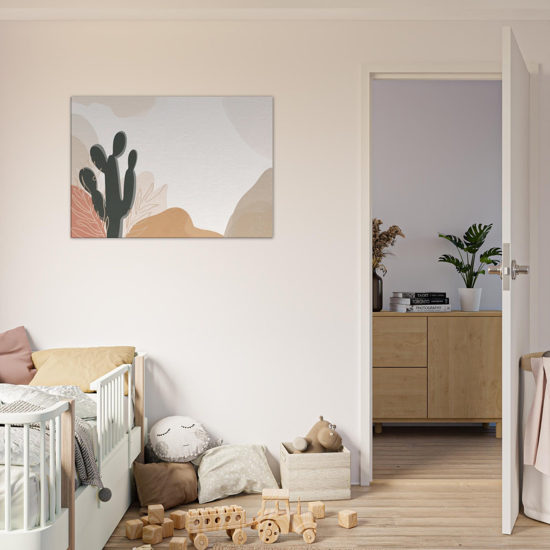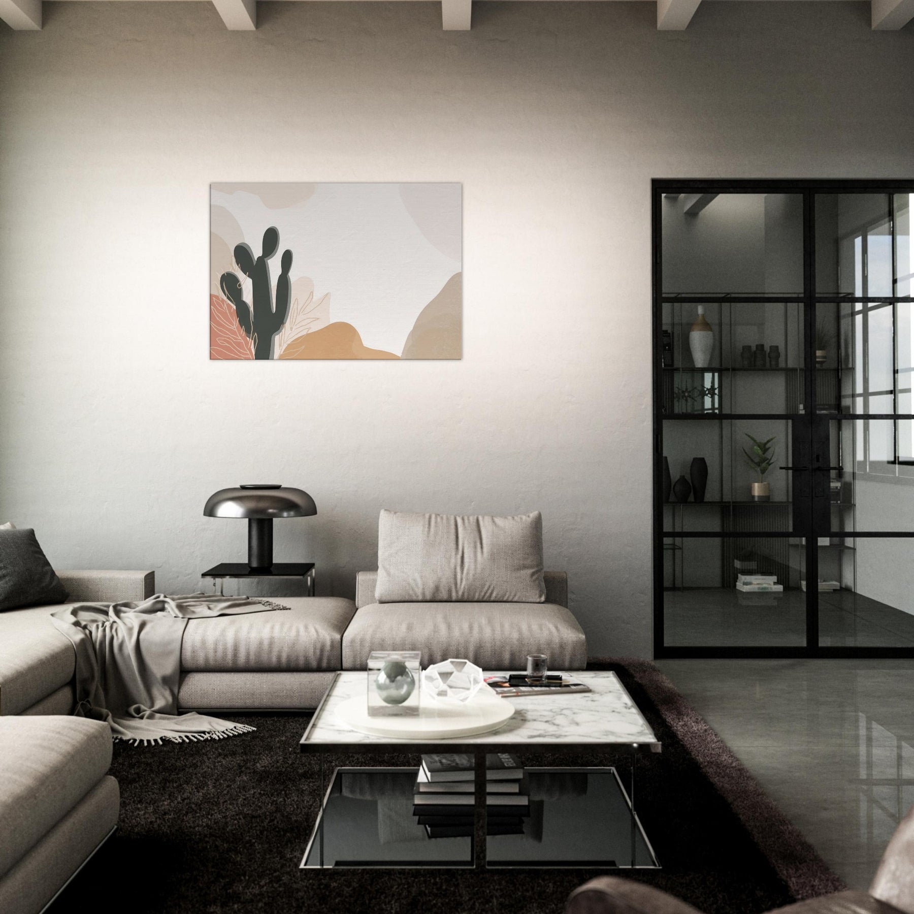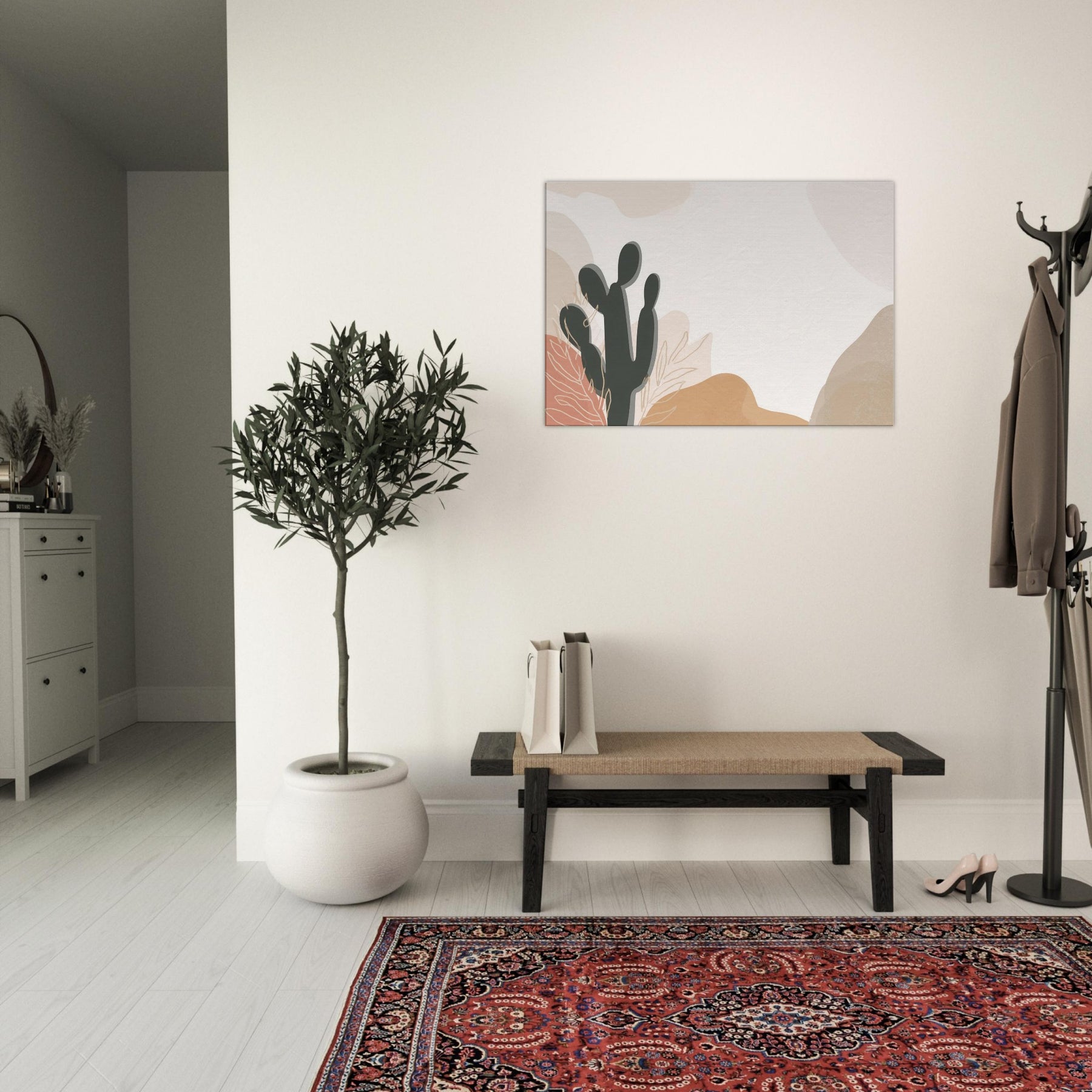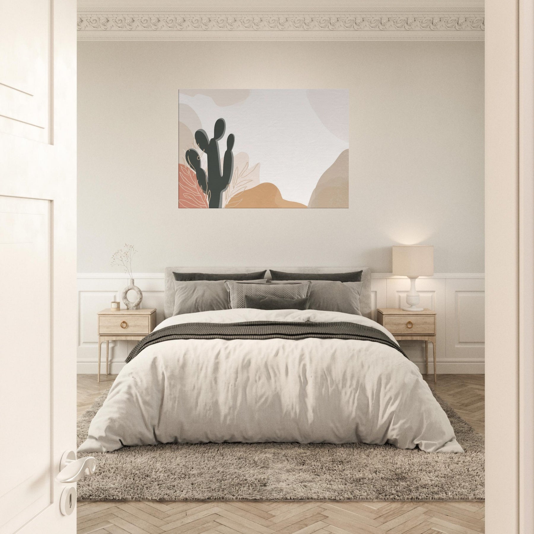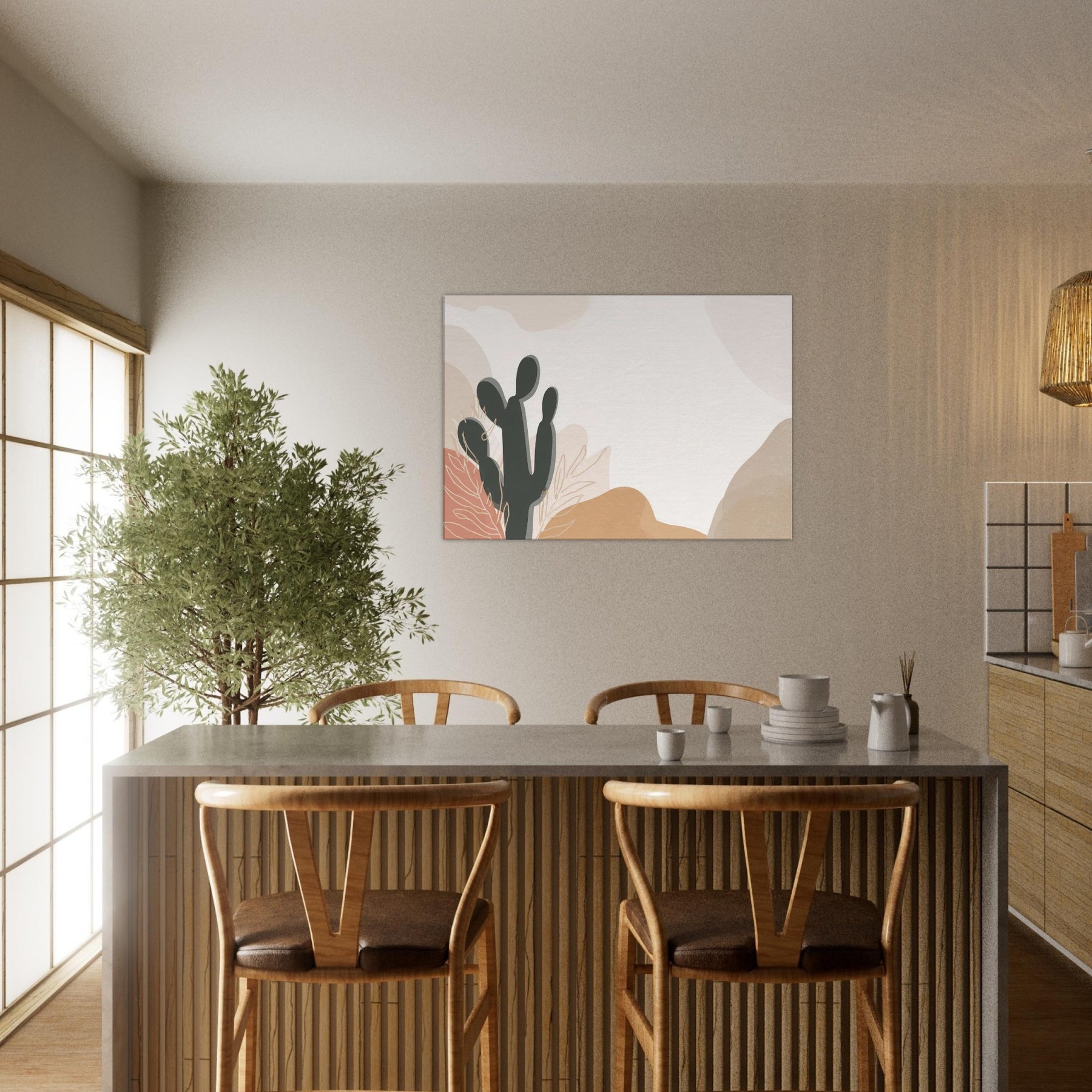 Like a quiet pause in a sunlit afternoon, this minimalist Cactus print folds nature into a serene corner of your home. The restrained palette of dusty greens, warm ochres, and soft taupes invites calm, while the simple cactus silhouette anchors the room with subtle architectural presence. Its airy negative space and gentle lines encourage reflective moments, making living spaces feel more balanced and intimate. Great above a sofa, in a hallway gallery, or beside a reading chair for a breath of desert calm.