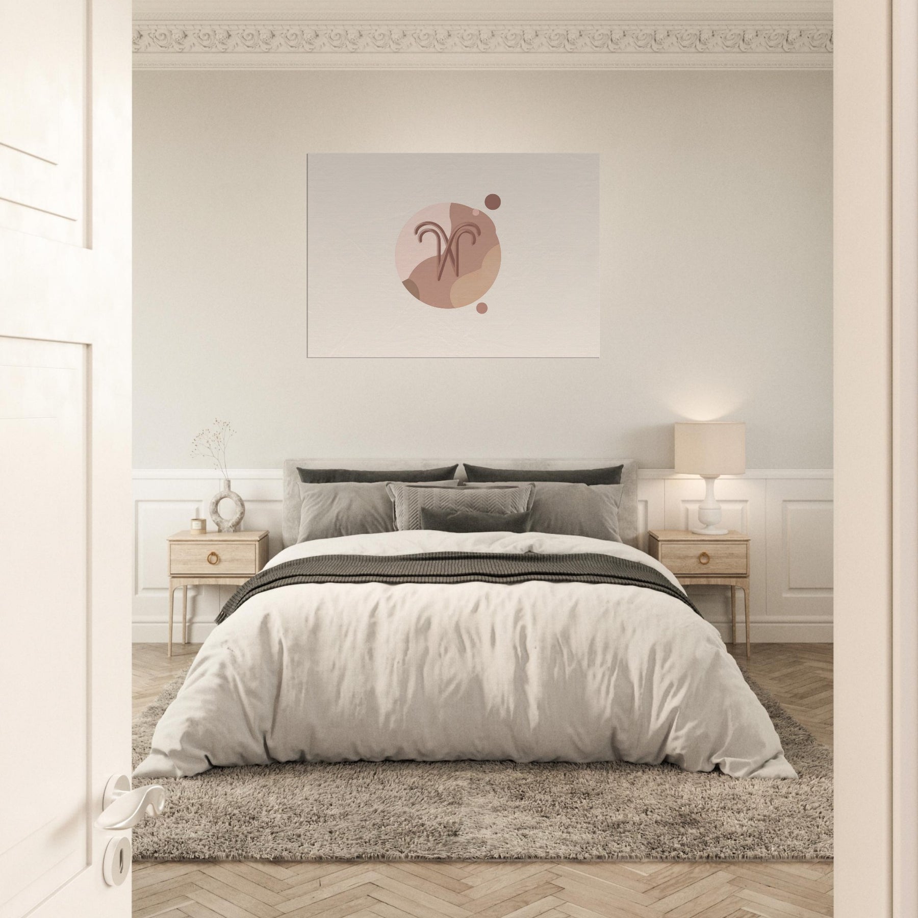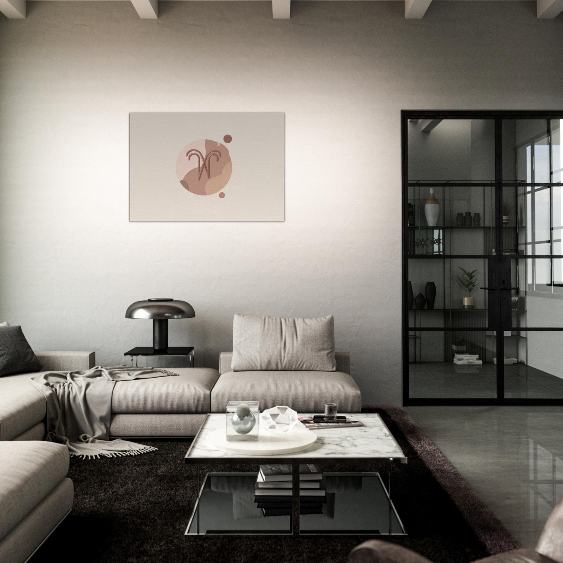 Immerse your space in the quiet gravity of the astrological signs translated into a soft, minimalist circle of color. This artwork invites stillness with warm earth tones that drift across a pale field, like a tranquil horizon at dusk. The delicate lines and circular motifs echo ancient glyphs, offering a subtle, mystical presence that enhances a living room or bedroom with calm, contemplative atmosphere. A refined focal point that pairs effortlessly with natural textures and gentle light.