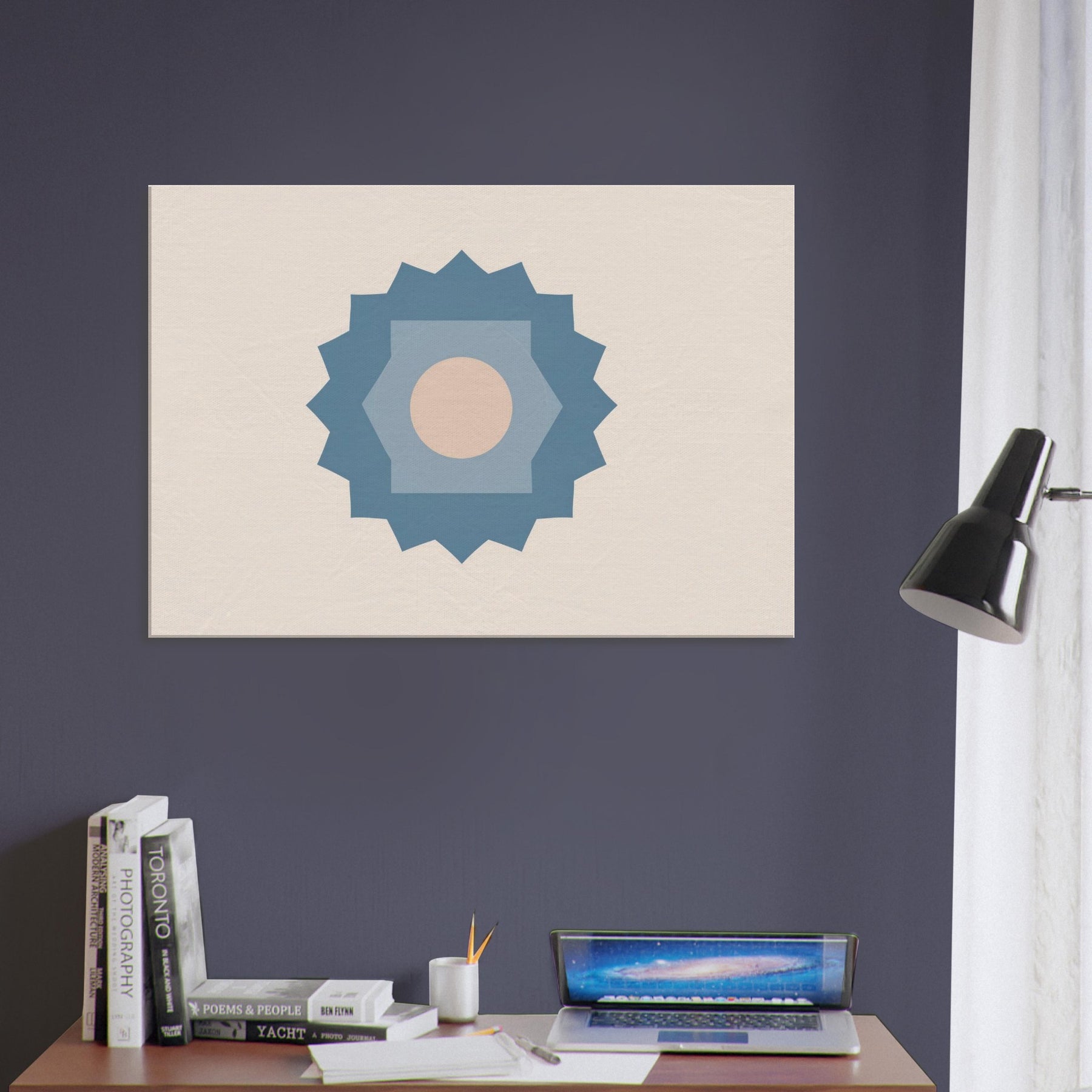 Chakras inspire this minimalist wall art a quiet invitation to pause as soft peach and cool blues converge in a serene circle of balance. The layered shapes feel like energy centers opening with gentle rhythm, casting a tranquil, contemplative glow across your living space. In rooms that crave calm or a mystical touch, this piece acts as a subtle focal point elegant, endlessly versatile, and ready to accompany early mornings or twilight reflections.