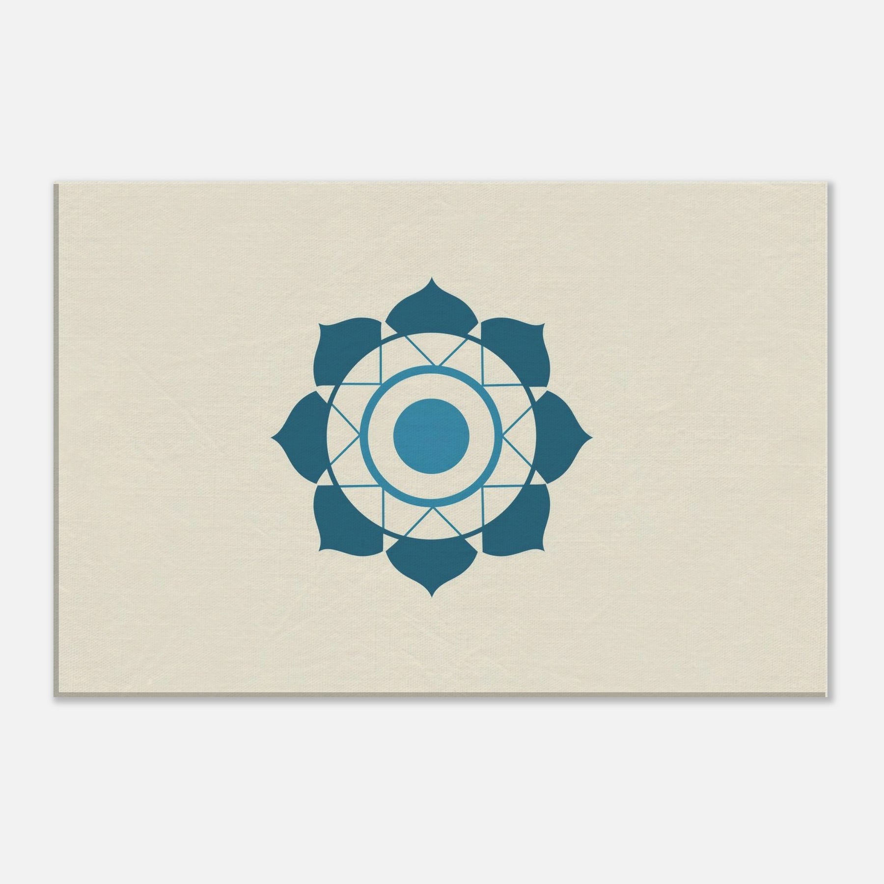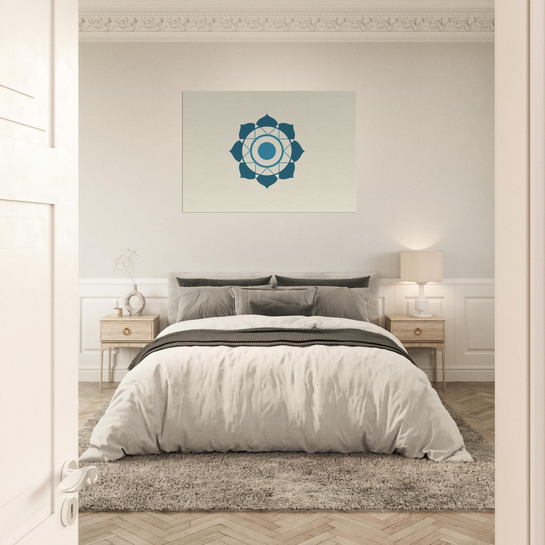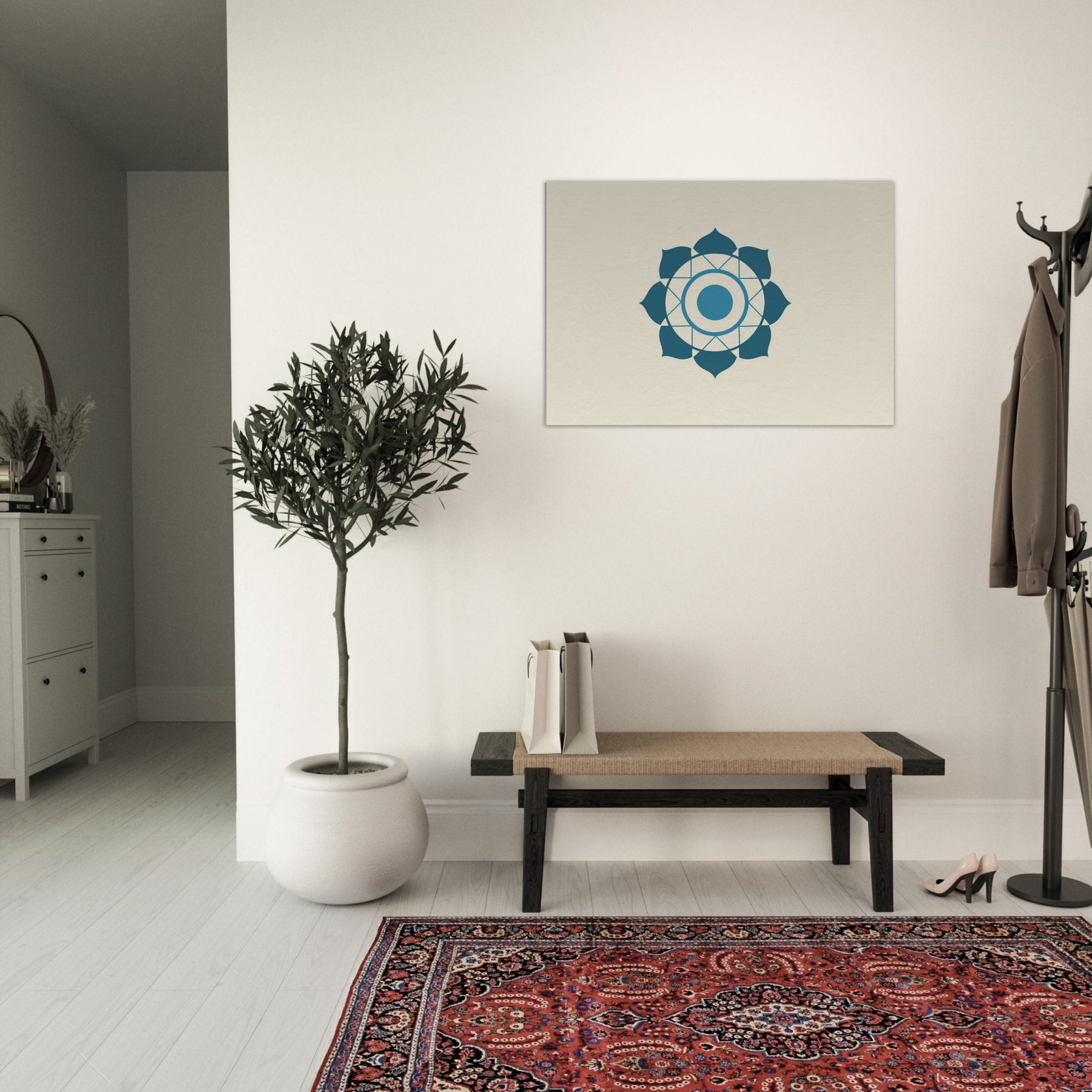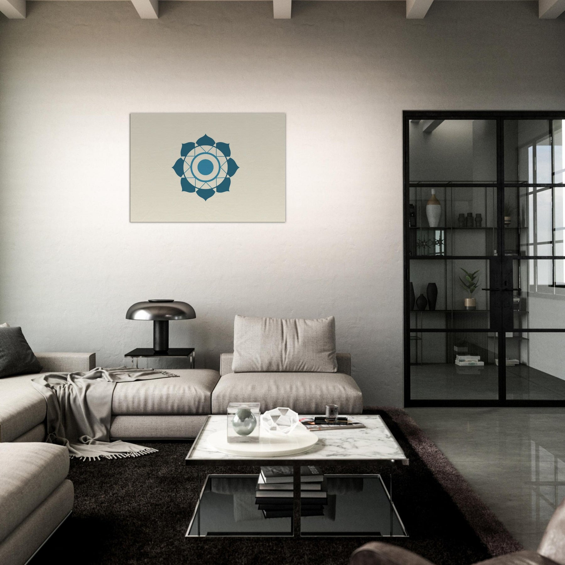 Inspired by the chakras, this minimalist mandala arrives as a whisper of balance. The clean, circular geometry centers the room with quiet gravity, inviting a moment of breath and focus. In a living space, it glows softly an anchor beside a sofa, a meditative edge above a bed, or a calm corner where evening light lingers. Its cool blue tone against a warm backdrop sustains a serene mood, turning everyday walls into a sanctuary of intention and calm.