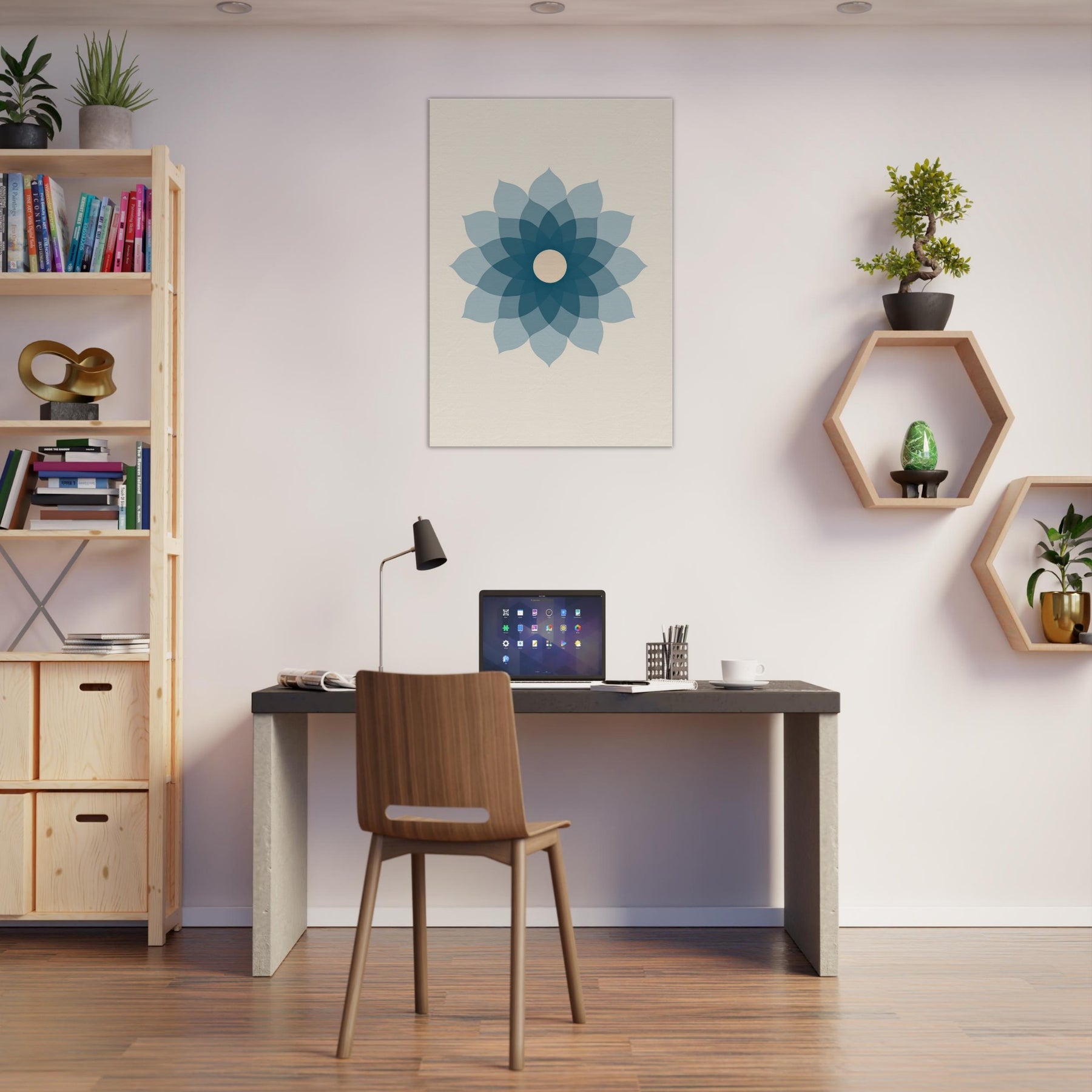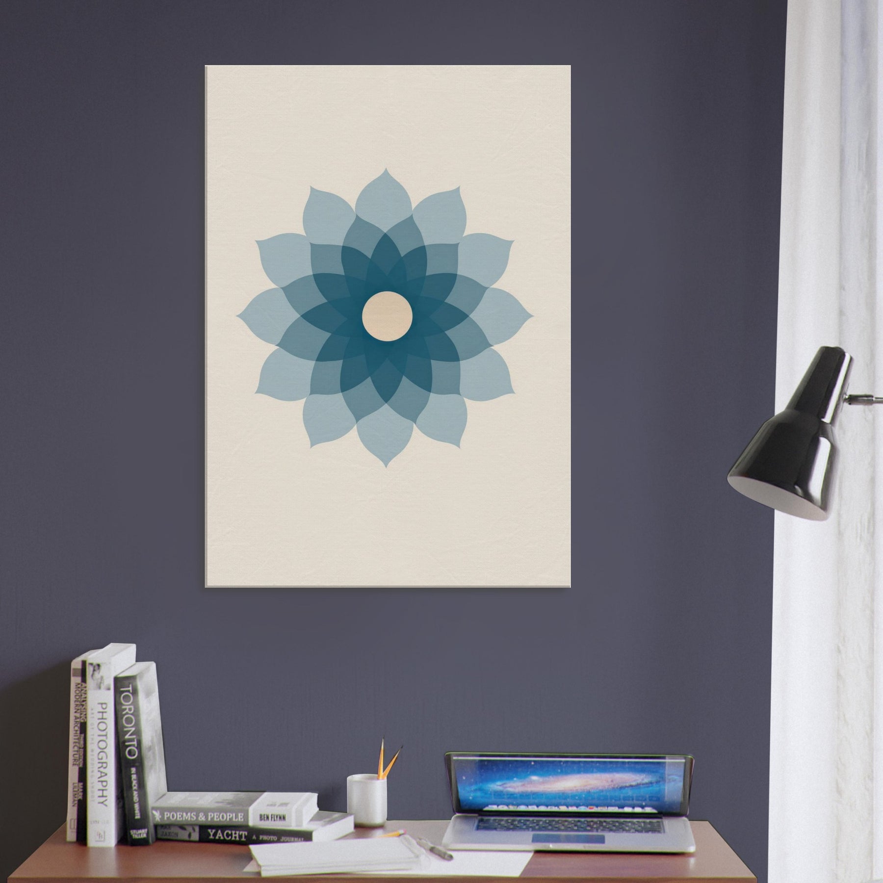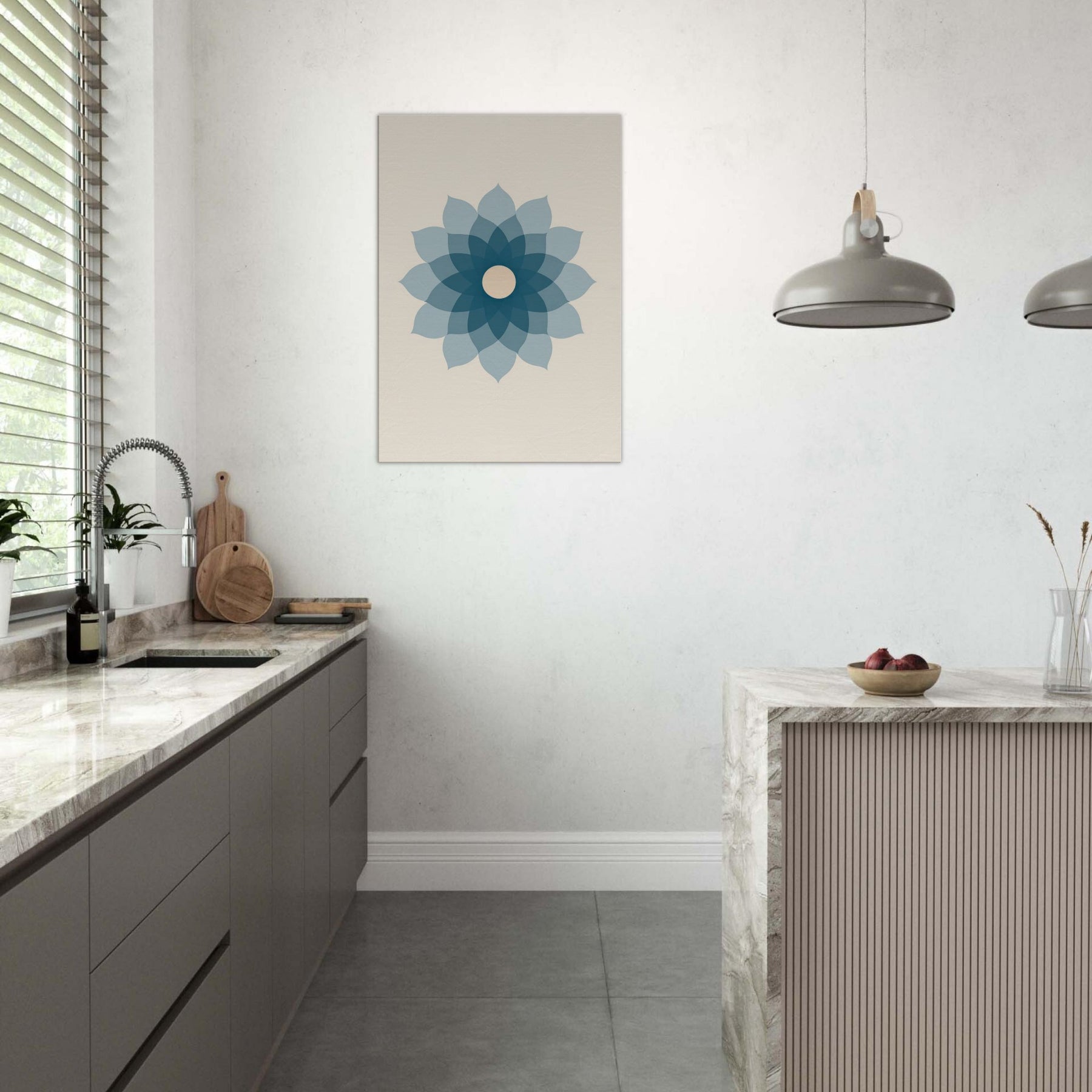 Chakras align in a quiet, mesmerizing circle of soft blues, rendered in a precise, minimalist mandala. This artwork breathes stillness into any room, inviting a gentle rhythm of light and shadow as the day shifts. The aura of the primary subject emanates through overlapping petals that feel like a meditative breath, from pale edges to deep center. Hang it in a living room or bedroom to create a soothing focal point, an artful reset that enhances calm, intention, and spaciousness in your daily life.
