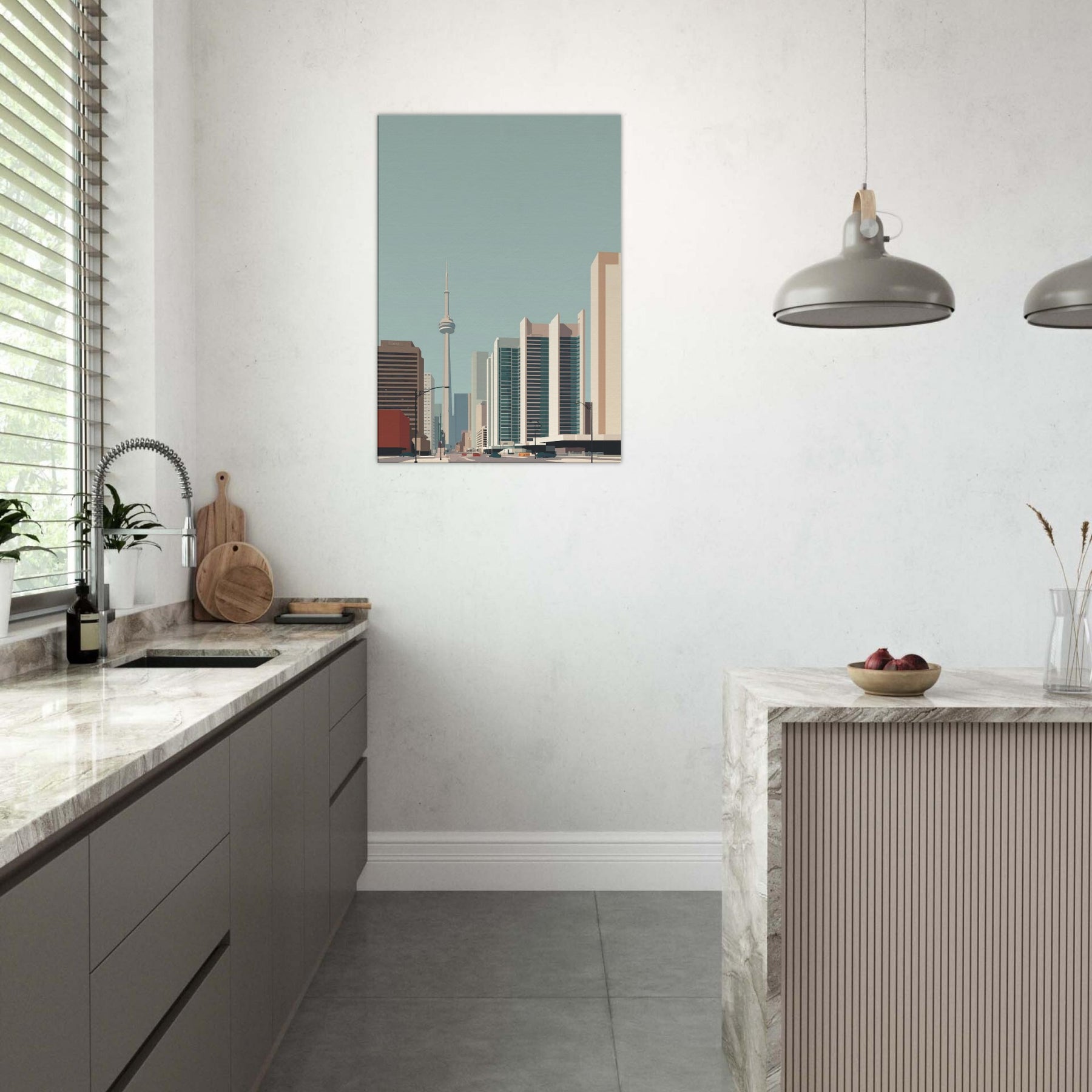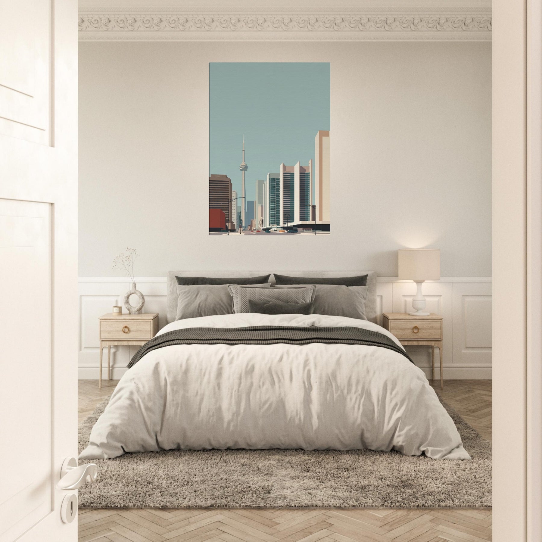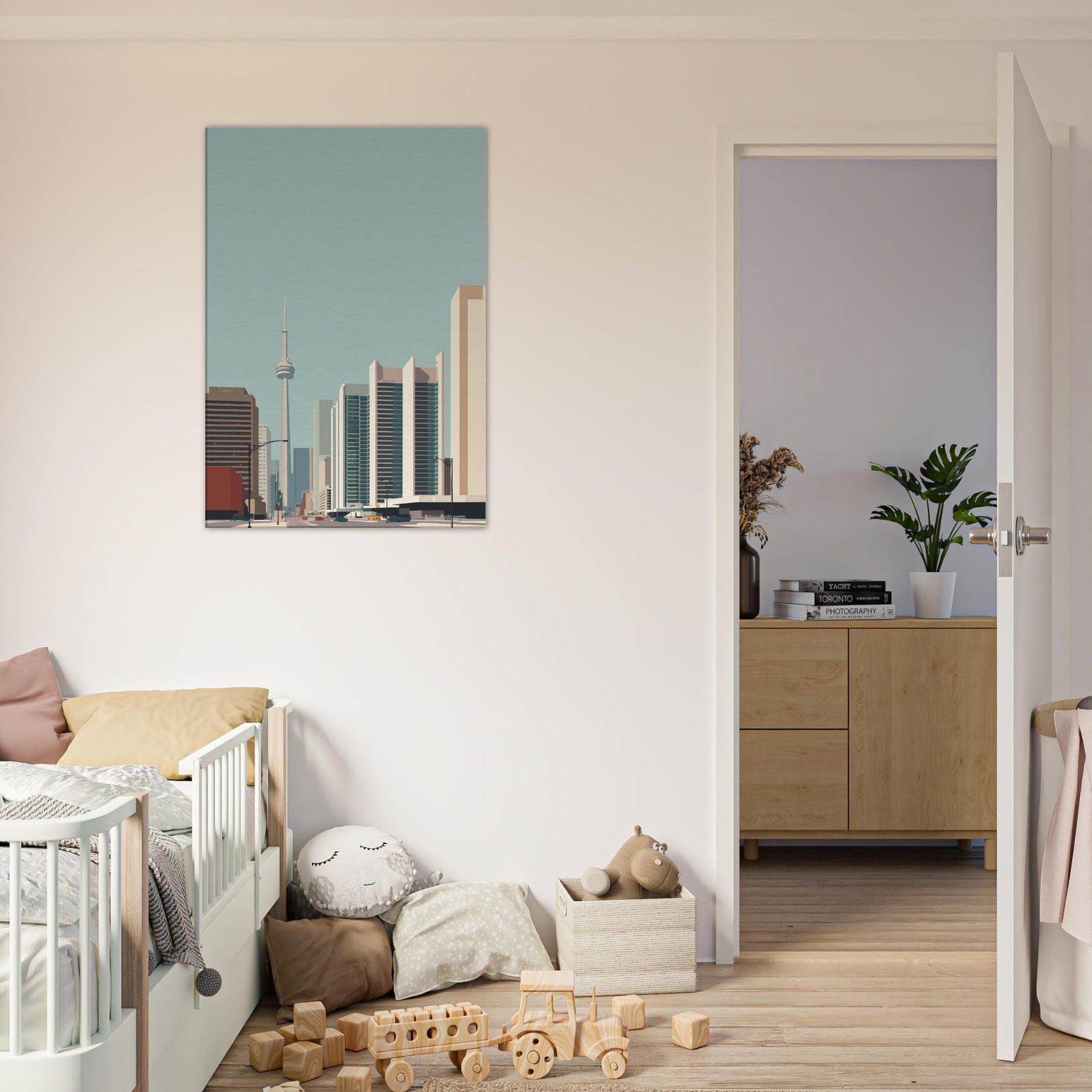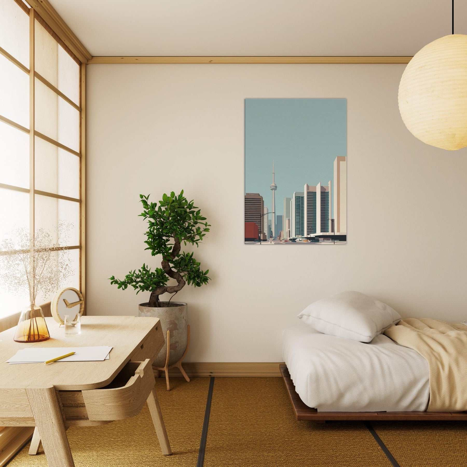 Toronto unfolds as a quiet, contemplative horizon: a skyline pruned to clean lines, where the CN Tower rises like a quiet beacon and glass and steel breathe in soft, sunlit tones. This minimalist cityscape invites stillness into a room, turning everyday living into a gentle, unhurried moment. The cool palette and open negative space feel like morning air, making walls breathe and spaces grow calmer. Perfect above a sofa or in a hallway, it anchors moments of clarity and urban poetry.
