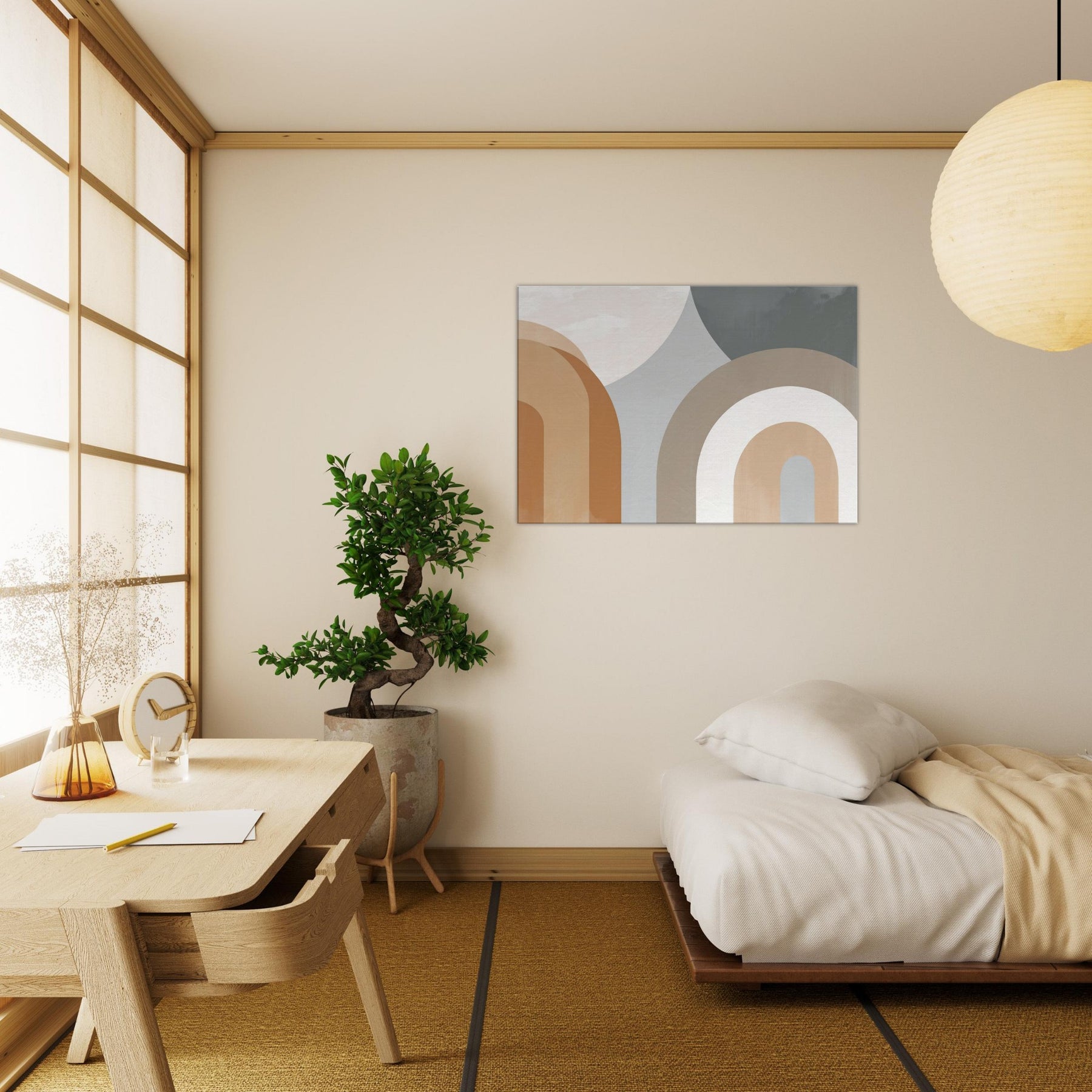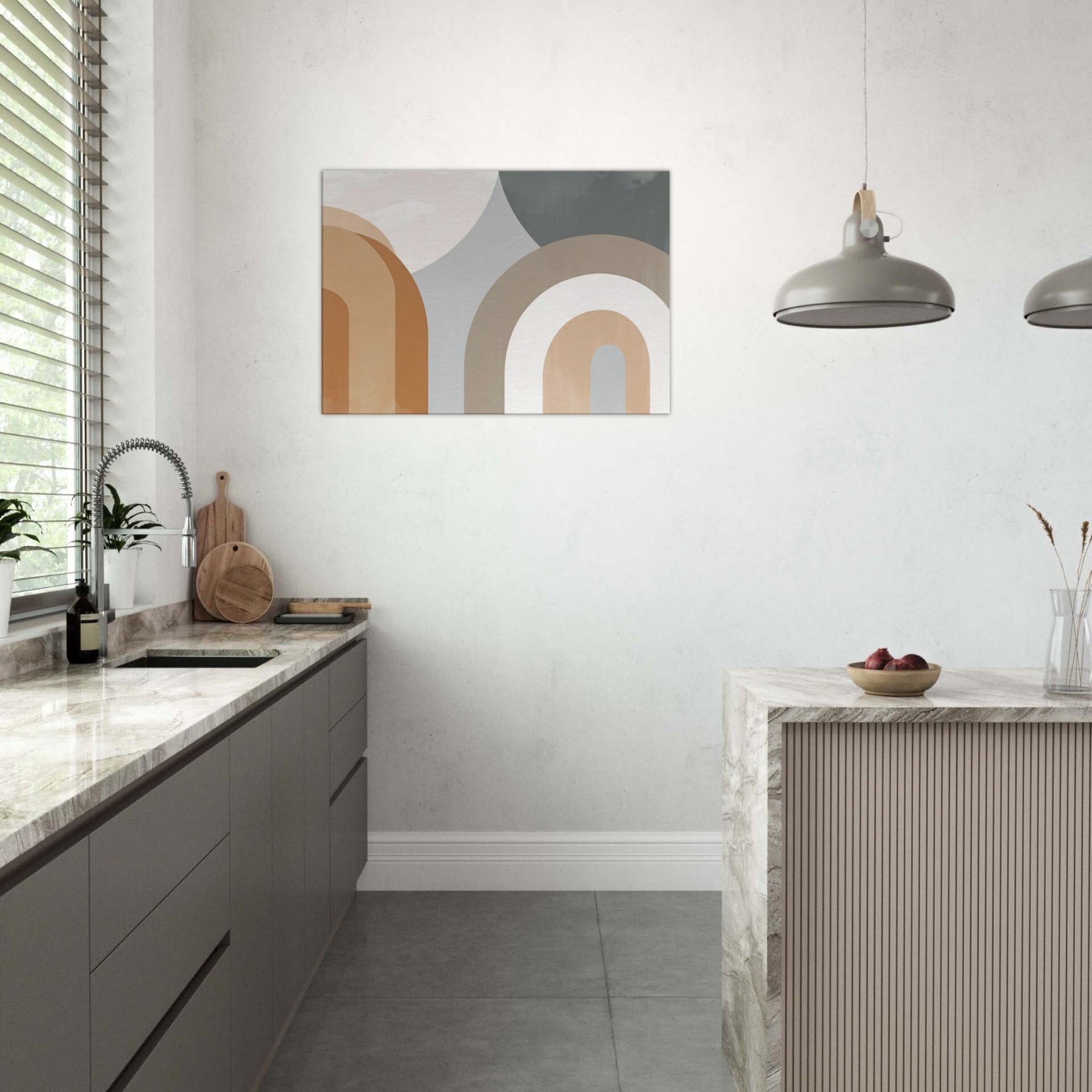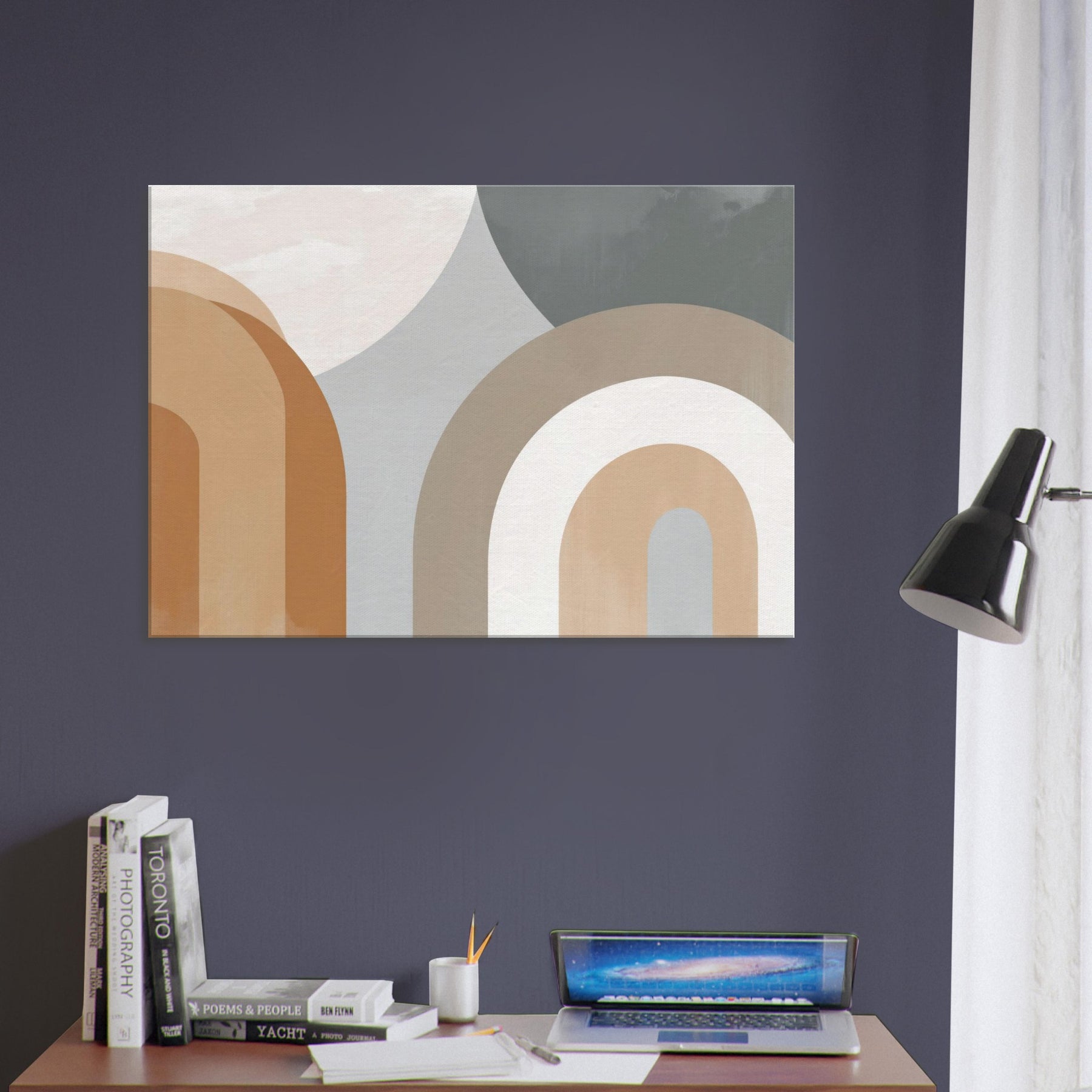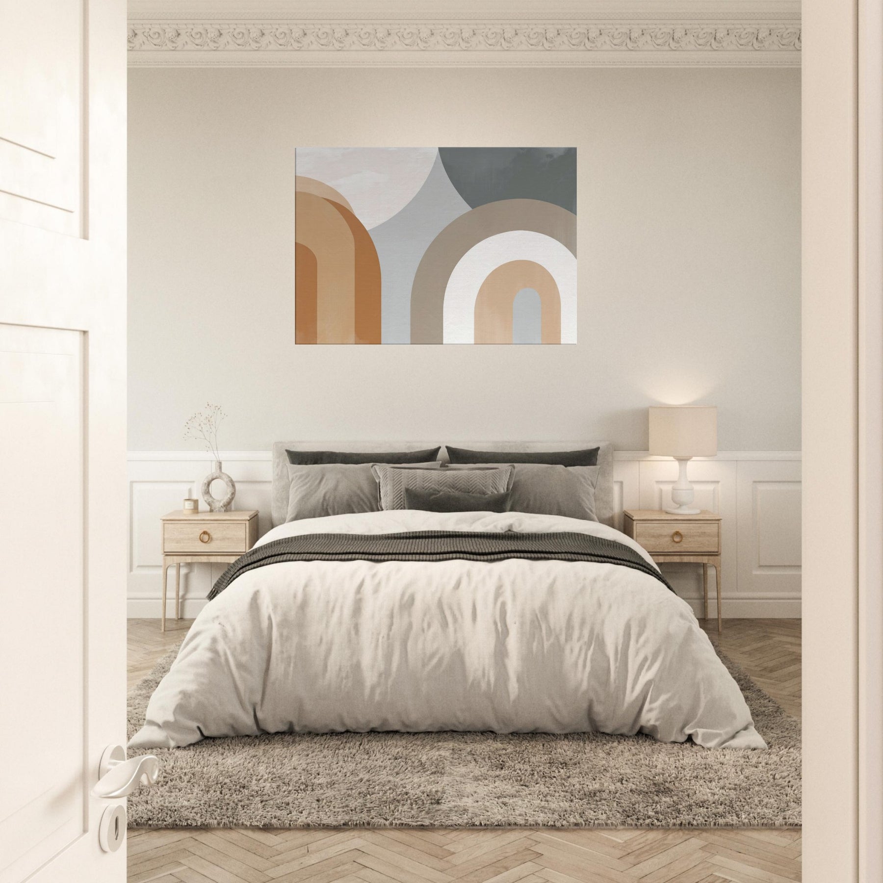 Muse worthy and restrained, Arches Composition exudes quiet confidence. The minimalist arc forms glide in warm creams and earthy taupes, gifting the room a sense of open air and gentle rhythm. The piece suggests faces and bodies dissolving into an abstract , inviting contemplation without shouting. In a living room or bedroom, its serene cadence enhances light and texture, casting soft shadows that shift with the day. A refined focal point that pairs with natural woods, linen, and muted textiles.