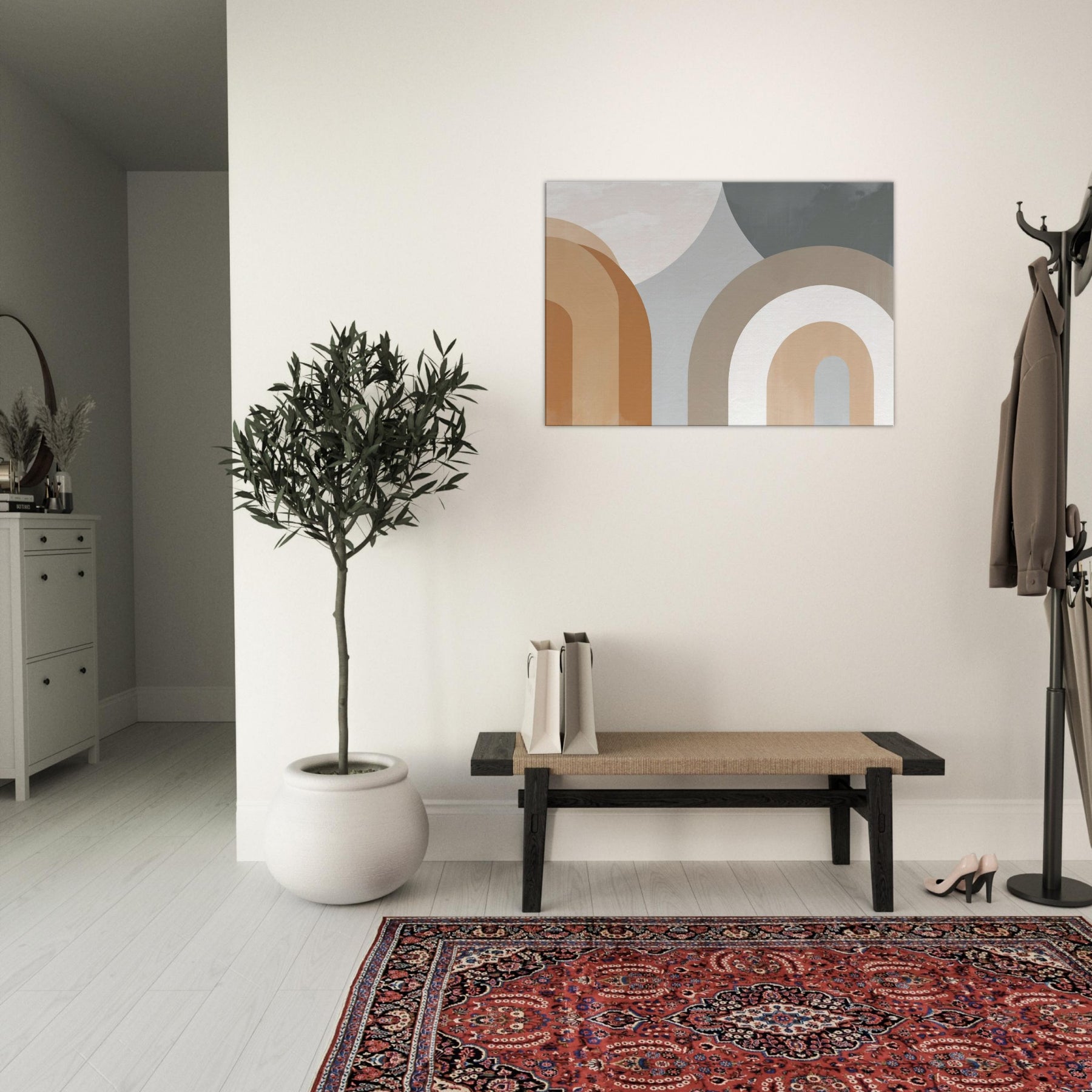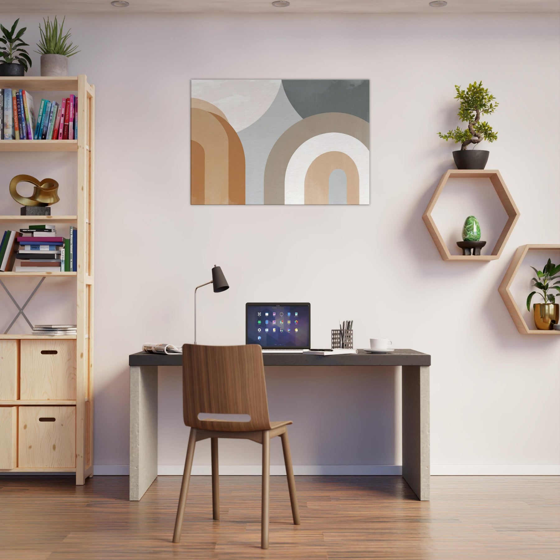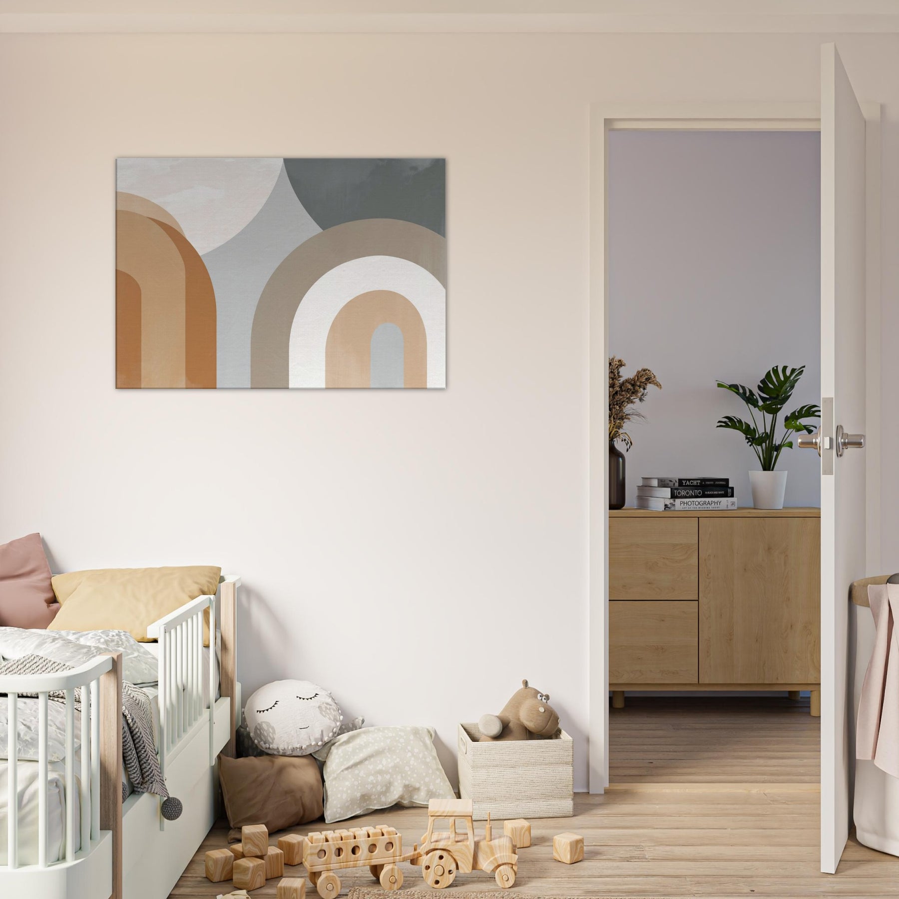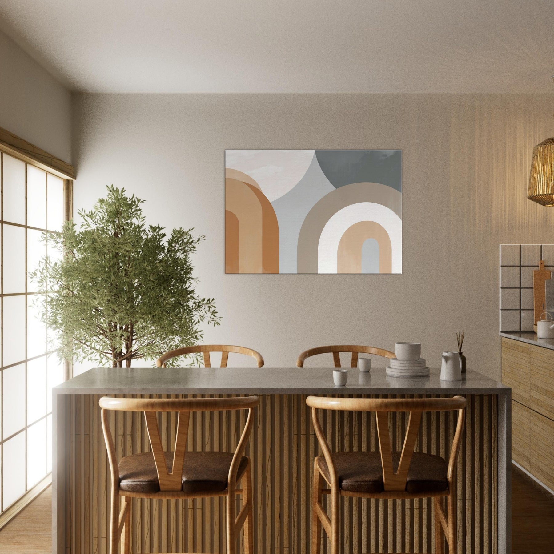 Muse worthy and restrained, Arches Composition exudes quiet confidence. The minimalist arc forms glide in warm creams and earthy taupes, gifting the room a sense of open air and gentle rhythm. The piece suggests faces and bodies dissolving into an abstract , inviting contemplation without shouting. In a living room or bedroom, its serene cadence enhances light and texture, casting soft shadows that shift with the day. A refined focal point that pairs with natural woods, linen, and muted textiles.