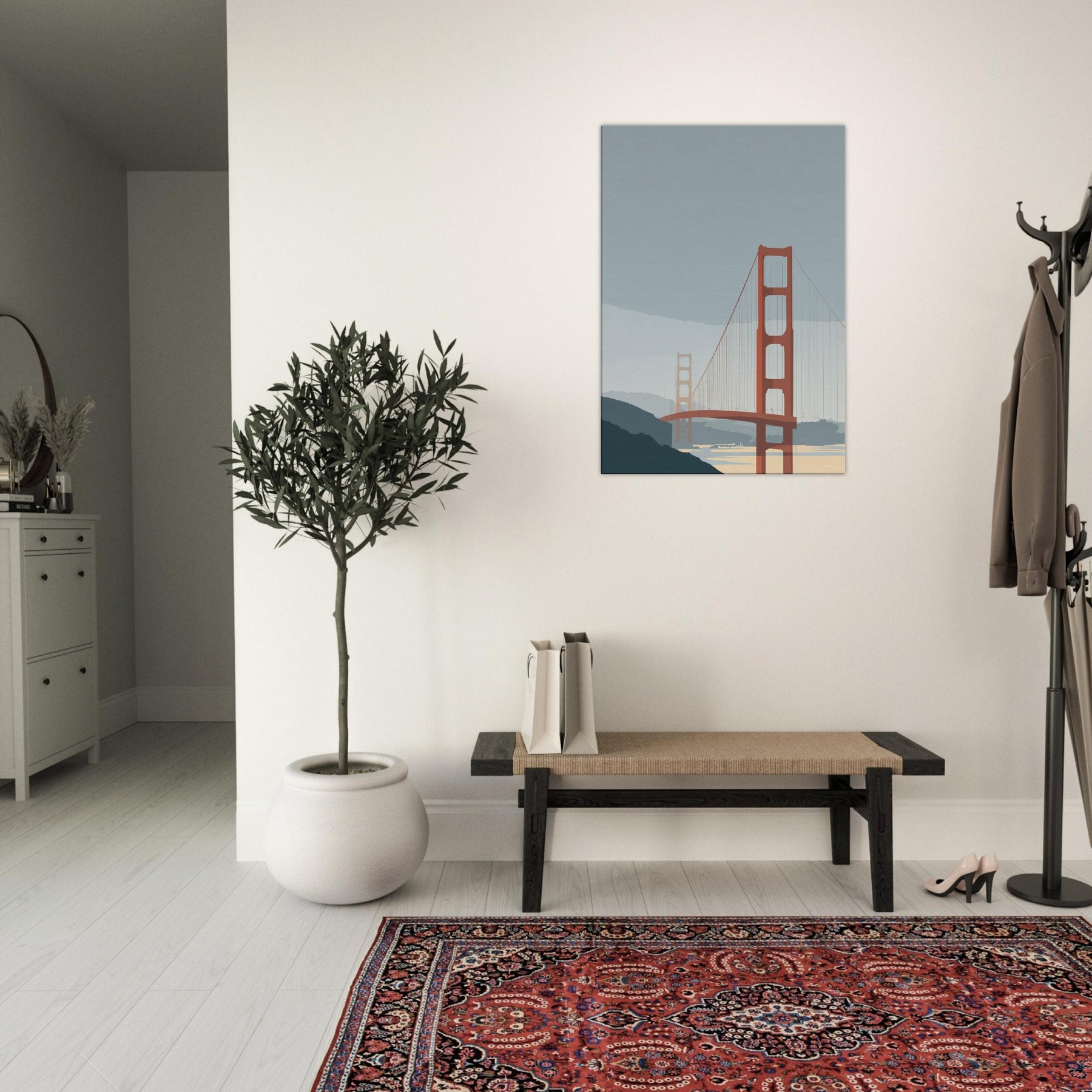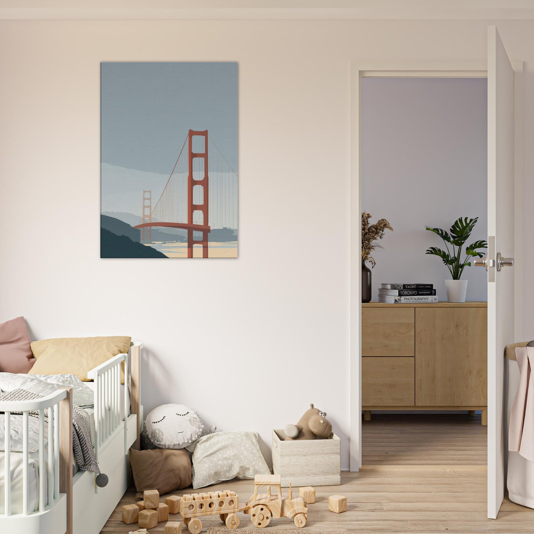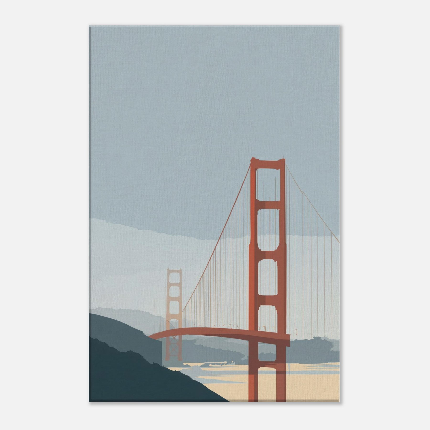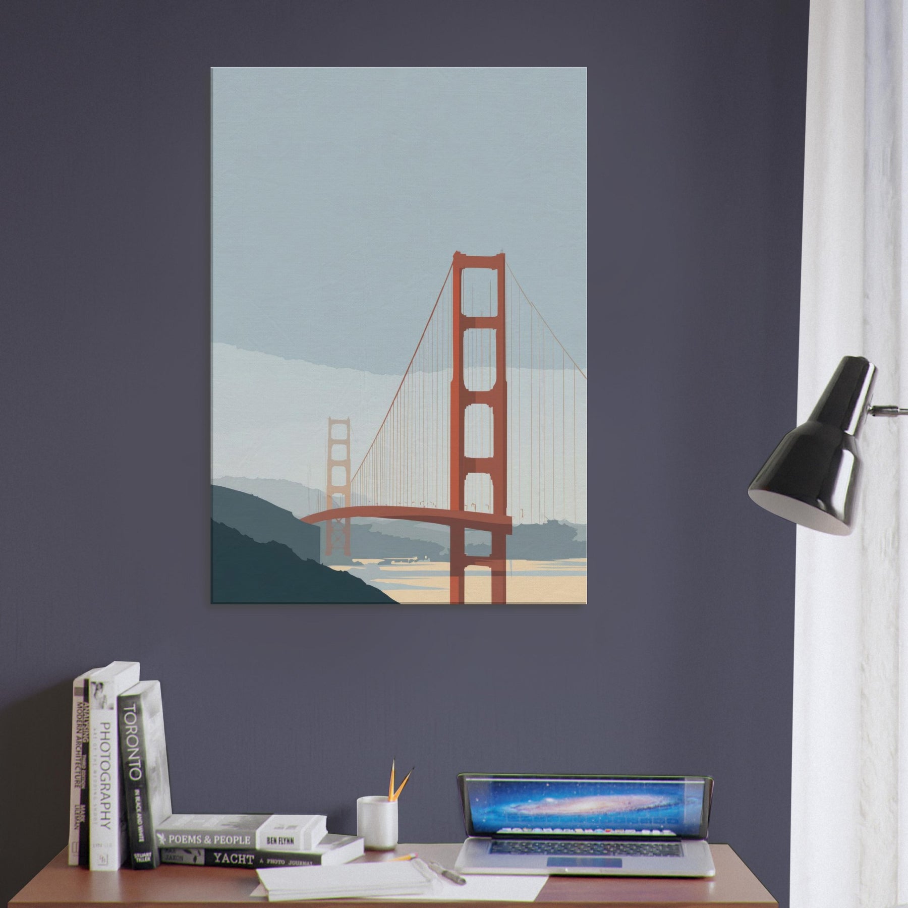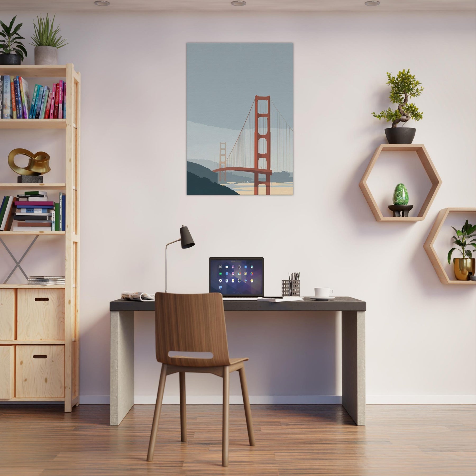 Let the Golden Gate Bridge breathe in your room with a quiet, cinematic presence. This minimalist interpretation invites light and space to mingle with color warm terracotta towers set against soft skies and sea, reduced to essential lines and gentle planes. It creates a calm, contemplative mood, perfect for a living room or study, where every glance reveals a new silhouette. A refined centerpiece that elevates modern interiors without shouting.