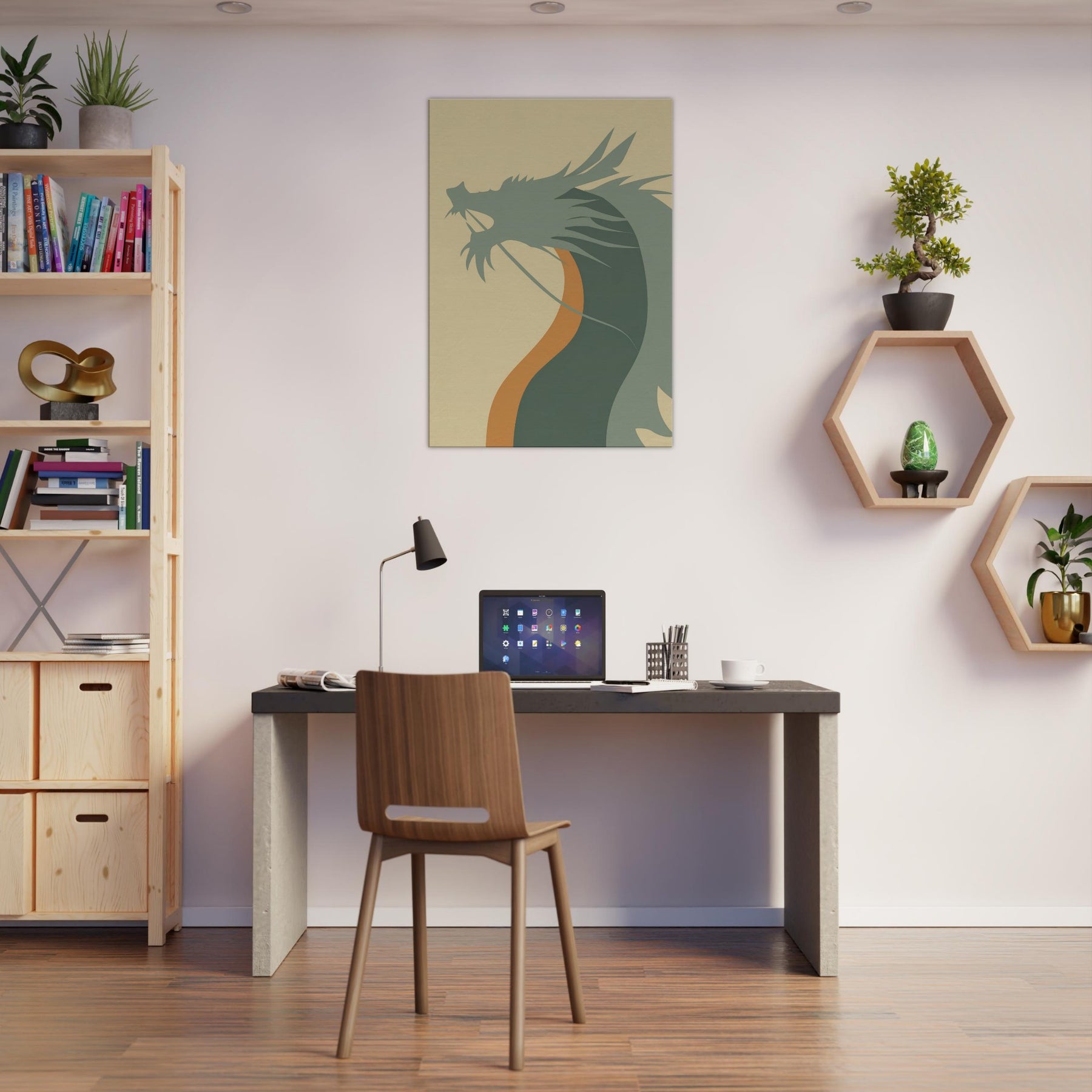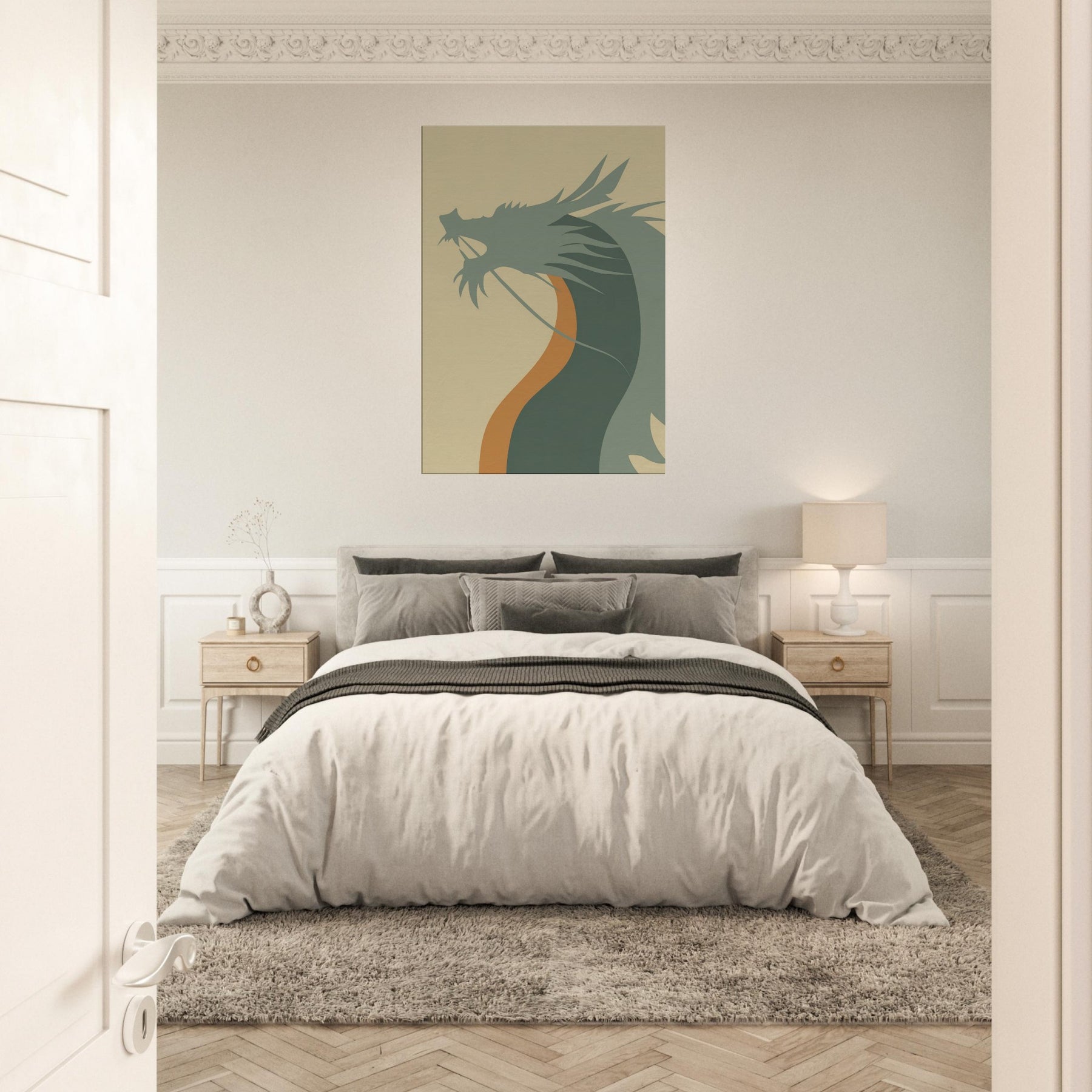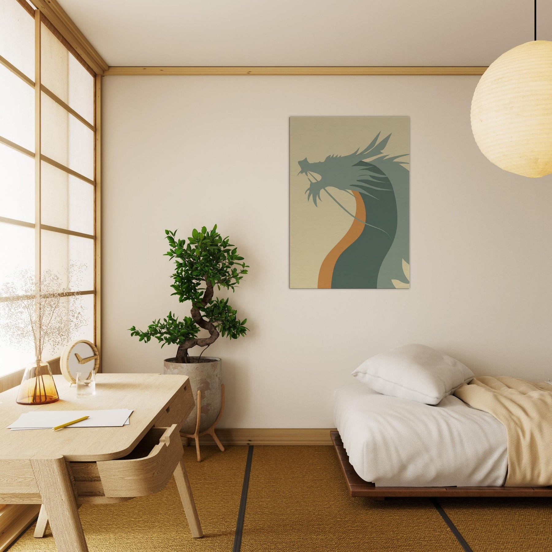 A quiet monument to myth and motion, this minimalist scene captures a Chinese Dragon in a single, sweeping silhouette. The restrained palette, a soft beige background, a teal body, and a warm orange accent, create a sense of ancient fire and wind without shouting. Hang it where the light lingers; the piece invites calm, curiosity, and whispered conversations, turning a wall into a doorway to legend and a sanctuary for contemplative moments.