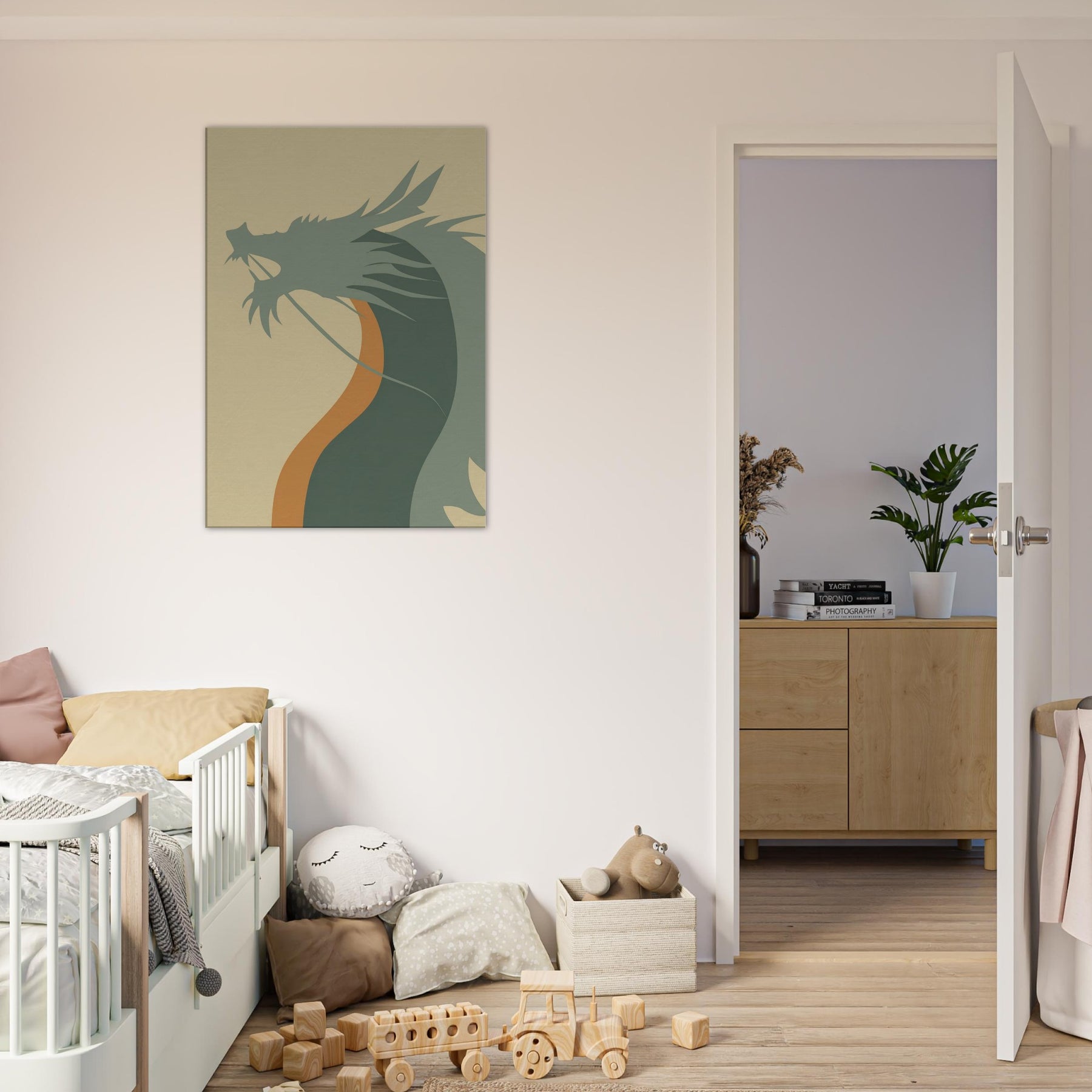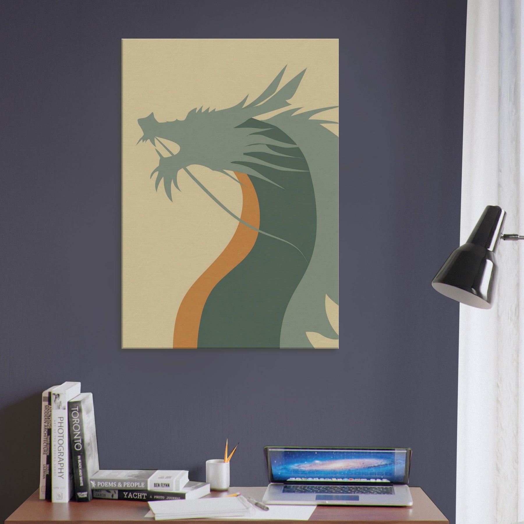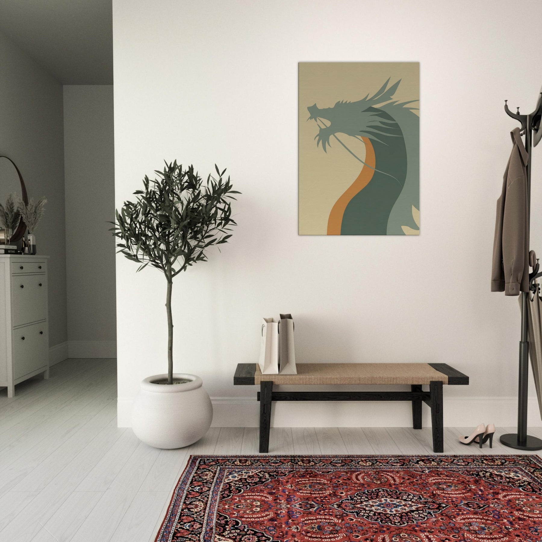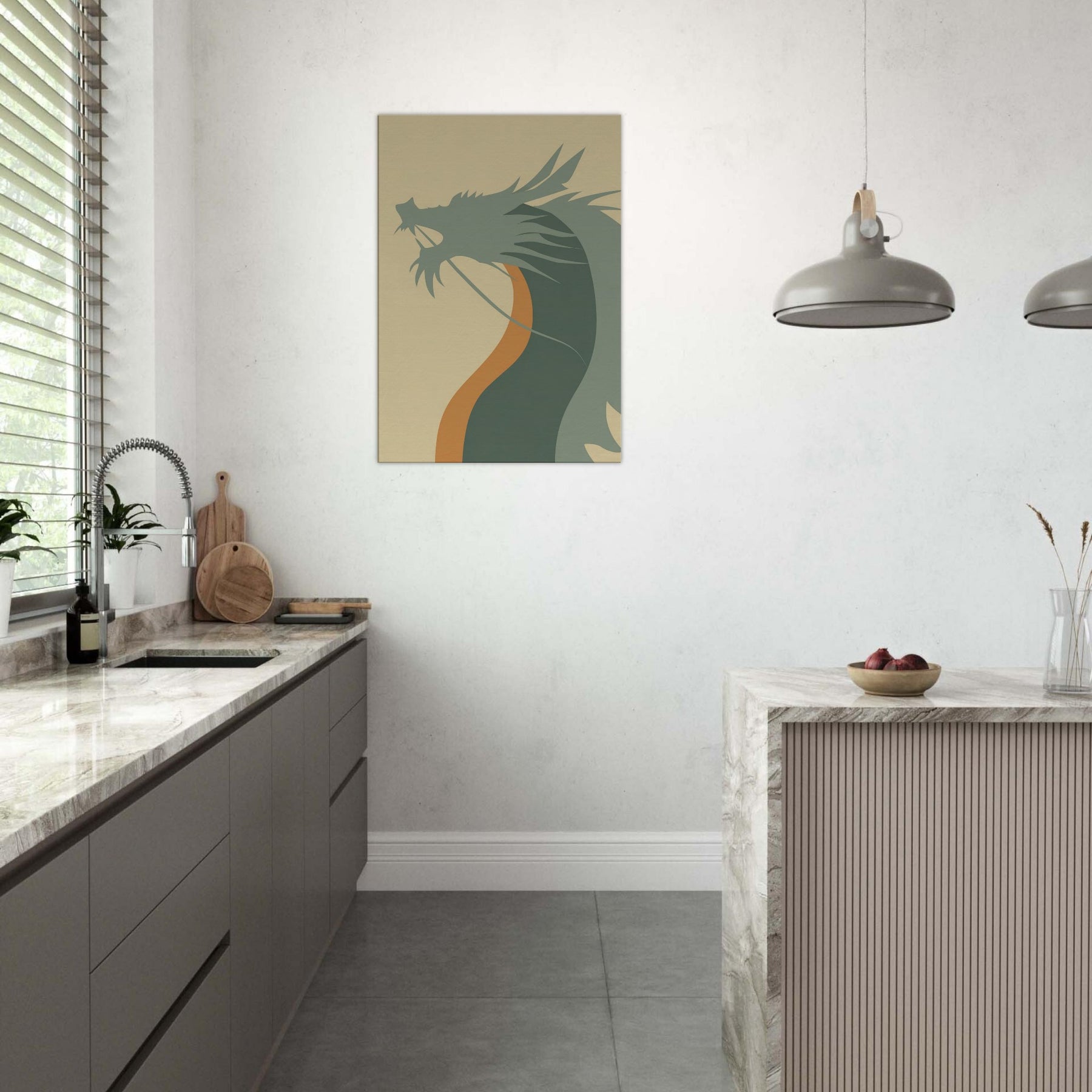 A quiet monument to myth and motion, this minimalist scene captures a Chinese Dragon in a single, sweeping silhouette. The restrained palette, a soft beige background, a teal body, and a warm orange accent, create a sense of ancient fire and wind without shouting. Hang it where the light lingers; the piece invites calm, curiosity, and whispered conversations, turning a wall into a doorway to legend and a sanctuary for contemplative moments.