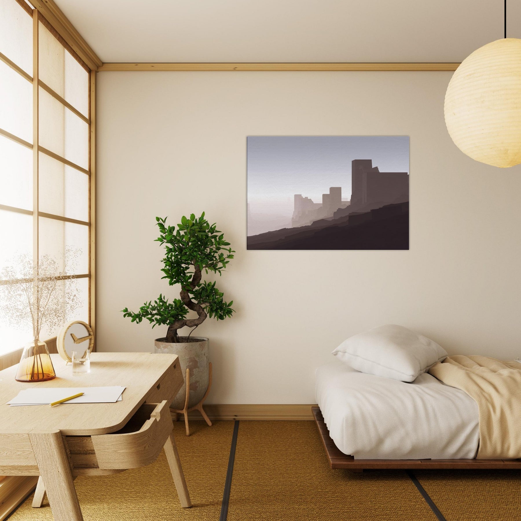 An uncluttered horizon gathers in quiet layers as a distant cityscape dissolves into soft, earthy tones. The Great Wall Silhouette arcs across the frame, a calm reminder of history and place, rendered in minimalist lines that invite contemplation without distraction. The gentle gradient from pale dawn to deep dusk glides across your wall, enhancing a living space with serenity, warmth, and depth. Perfect for a study, entryway, or living room, it pairs softly with wood and metal, elevating atmosphere with elegant restraint.